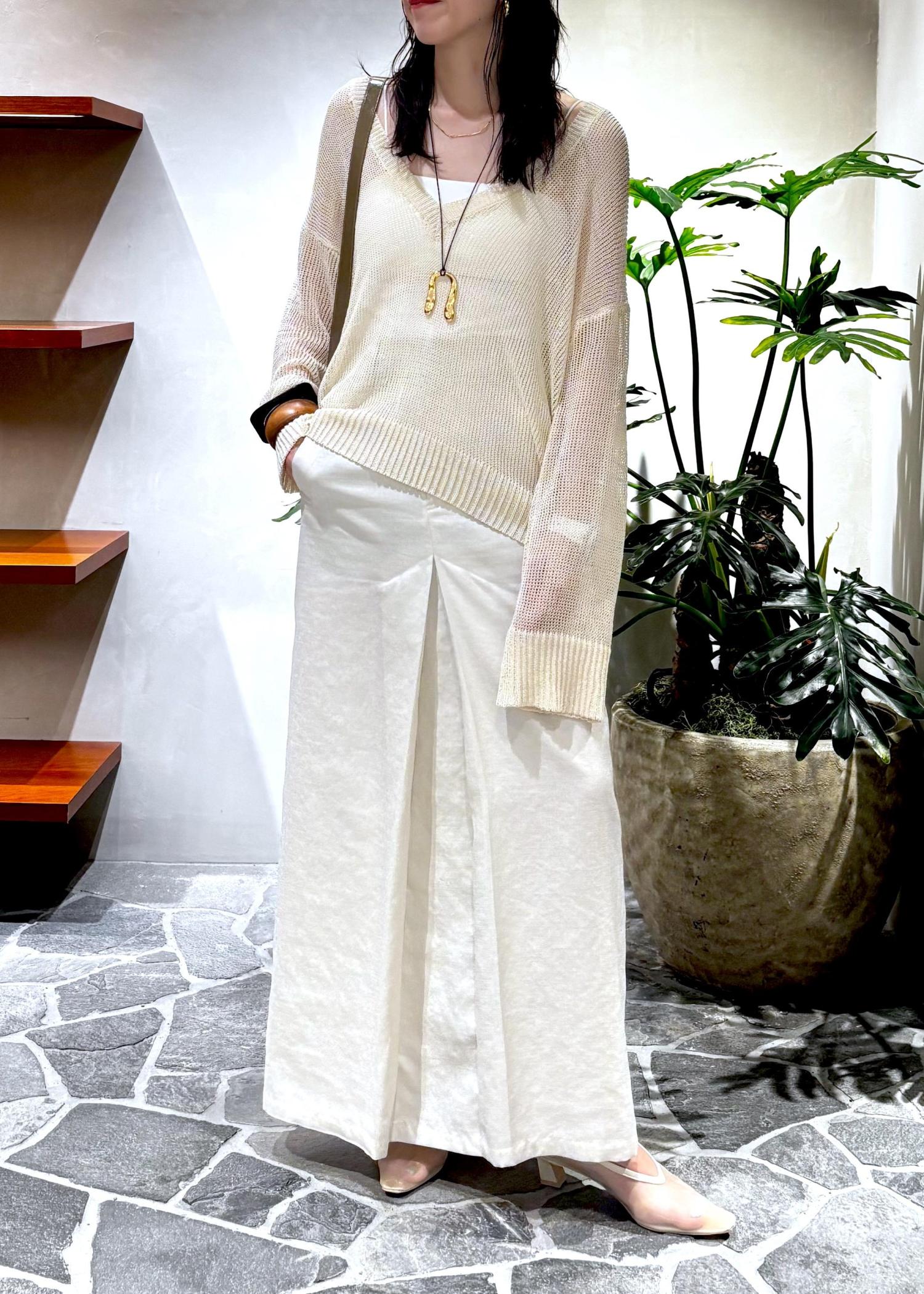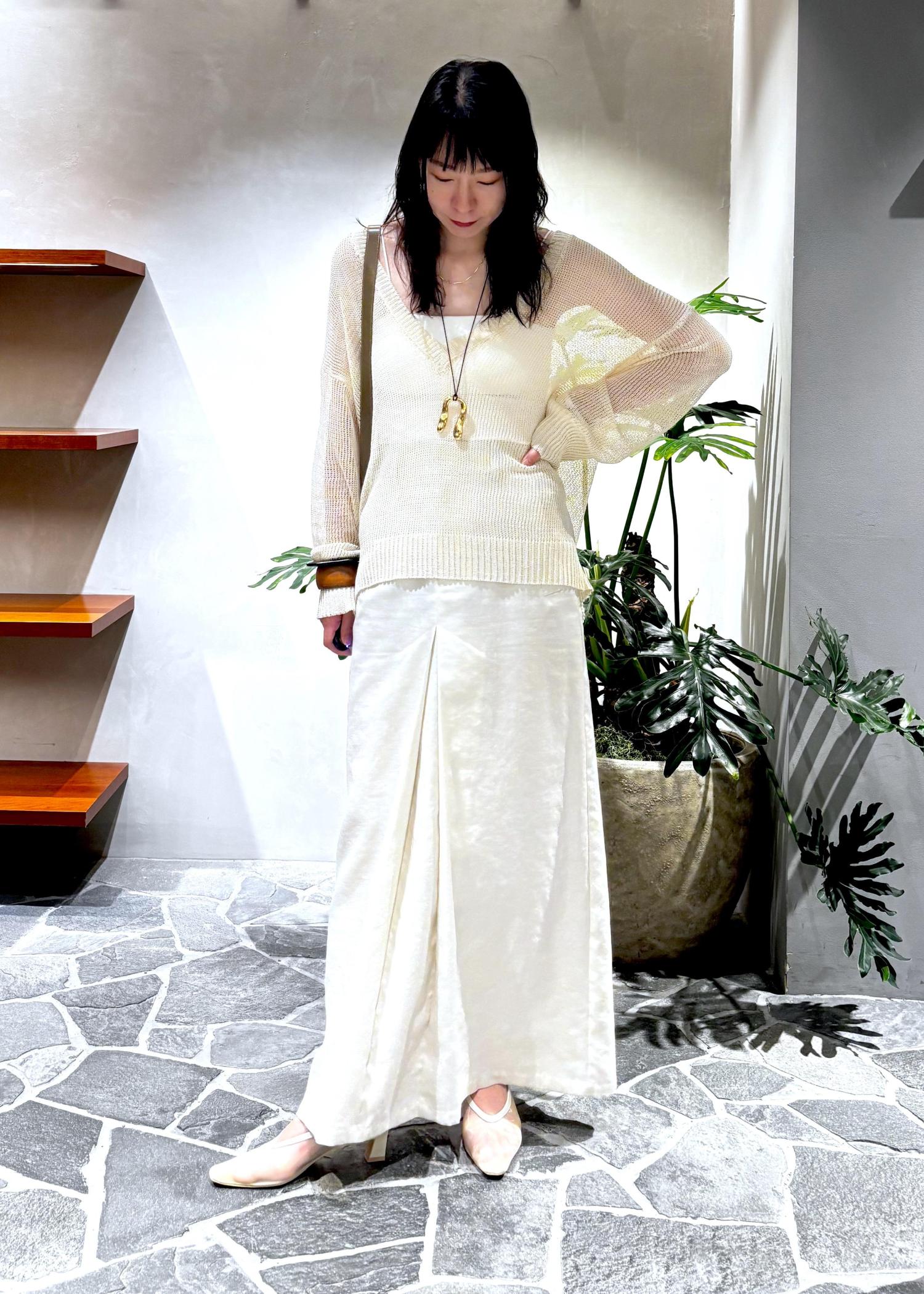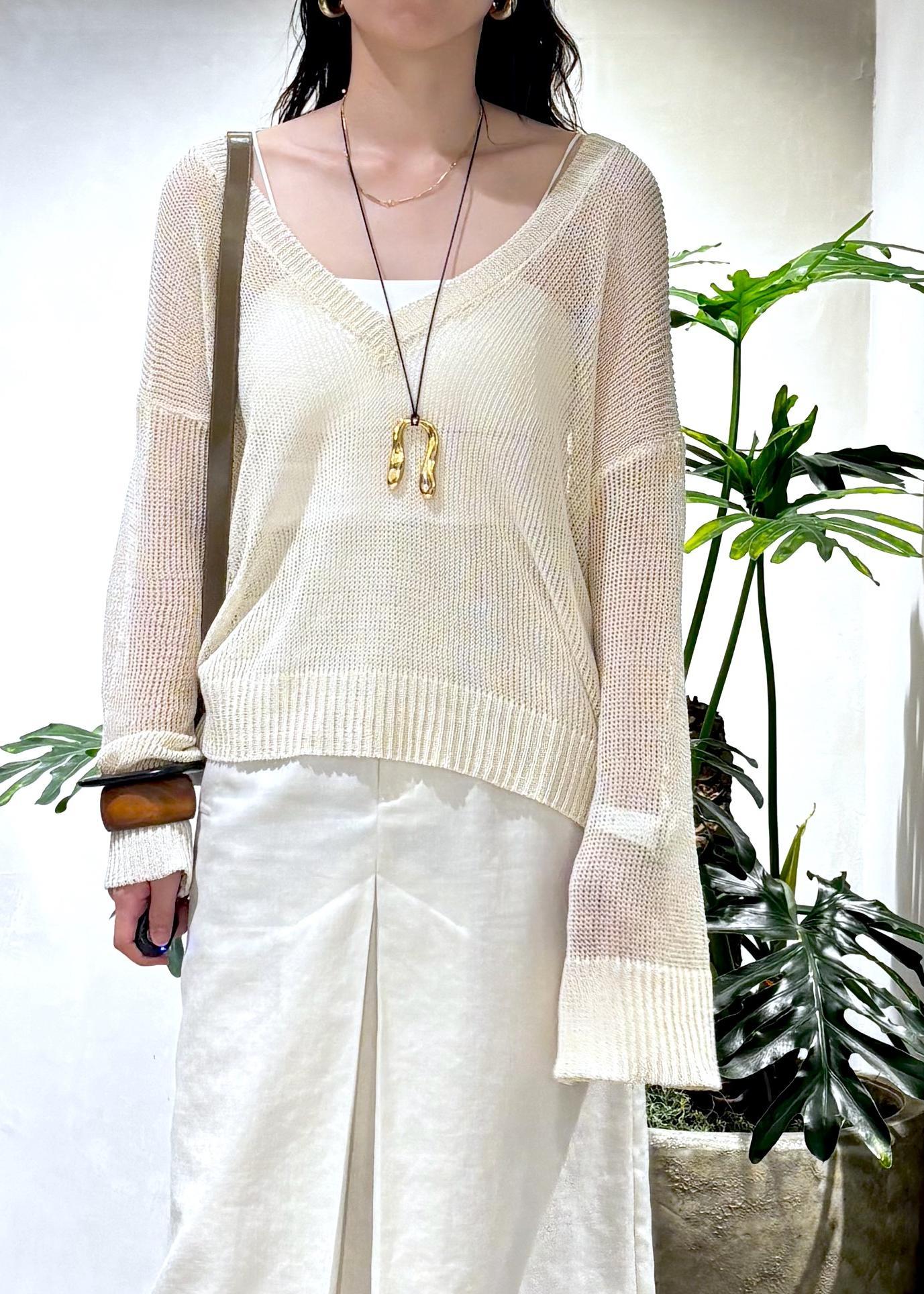 涼しく夏に着やすい糸を使ったサマーニットですが、バッグやアクセサリーの引っ掛けだけ要注意です! -