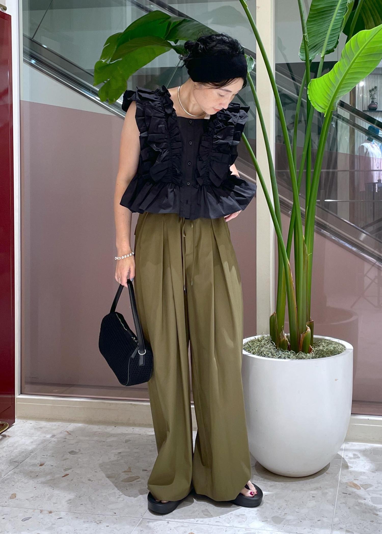 普段甘いデザインは敬遠しがちですが、メンズっぽいドカンパンツと合わせた甘×辛のカジュアルスタイルにしたら意外とアリかも…?と思いました^^