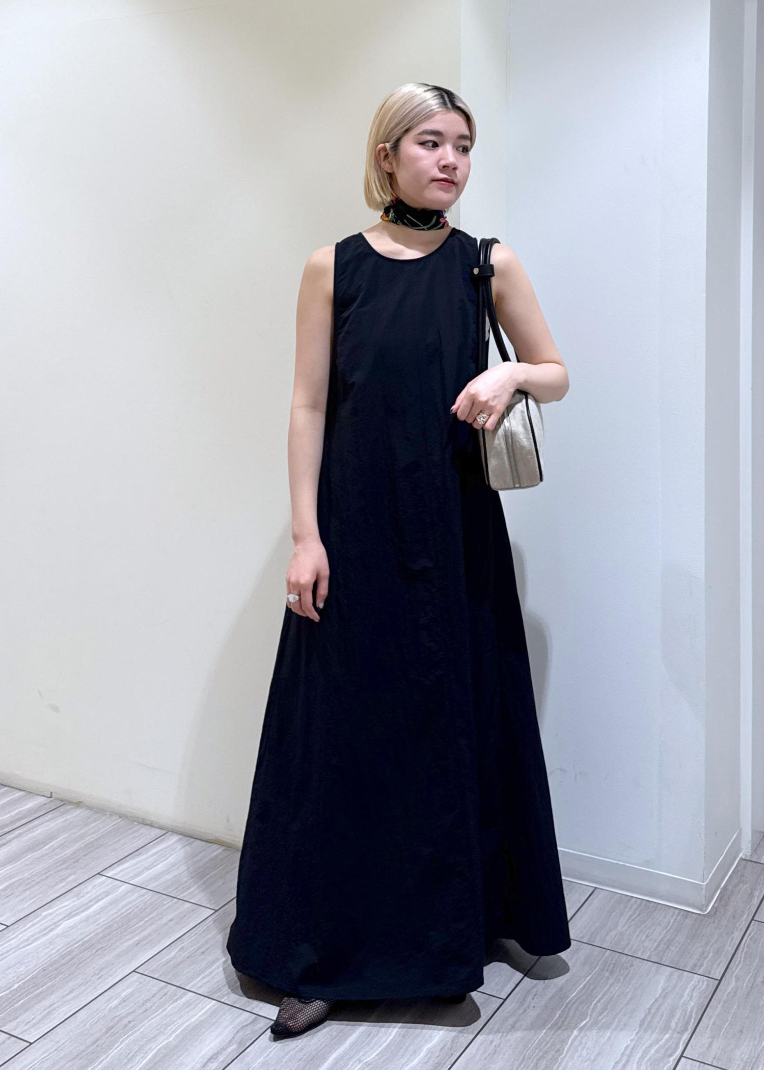 アームホールが広い作りなので熱がこもらず汗も気になりません。ナイロン生地で空気を含み、ふわっとした女性らしくもモードなデザインのワンピースです✦︎*