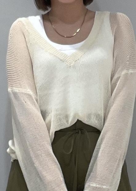 肌触りや風通しも良く、かなり着心地良いです。ただざっくり編みの商品なので引っ掛けだけは注意!! -