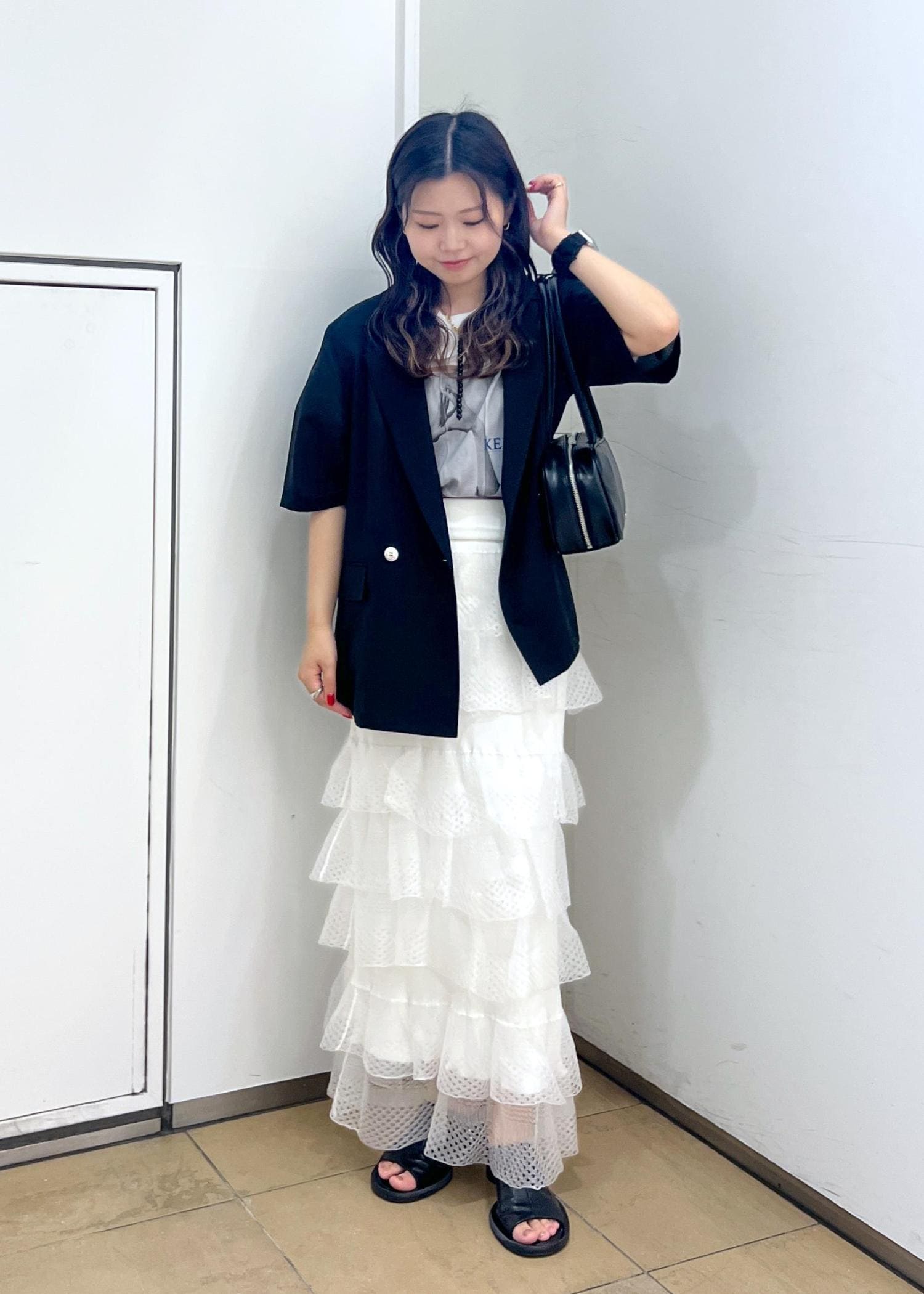 フリルスカートは、私の身長でも履けちゃう丈で、