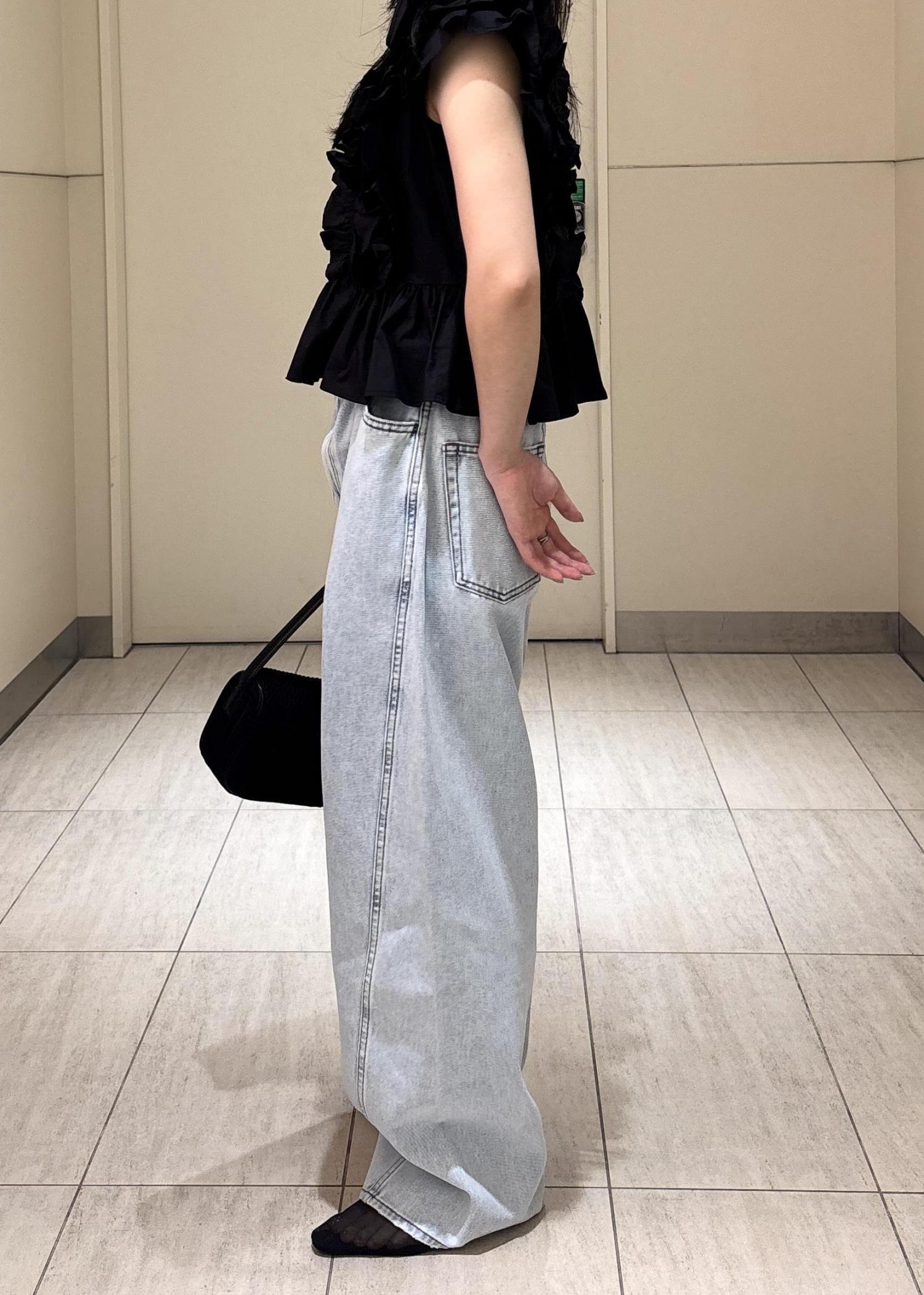 今回はペダルフリルブラウスを着用してコーデを組んでみました!