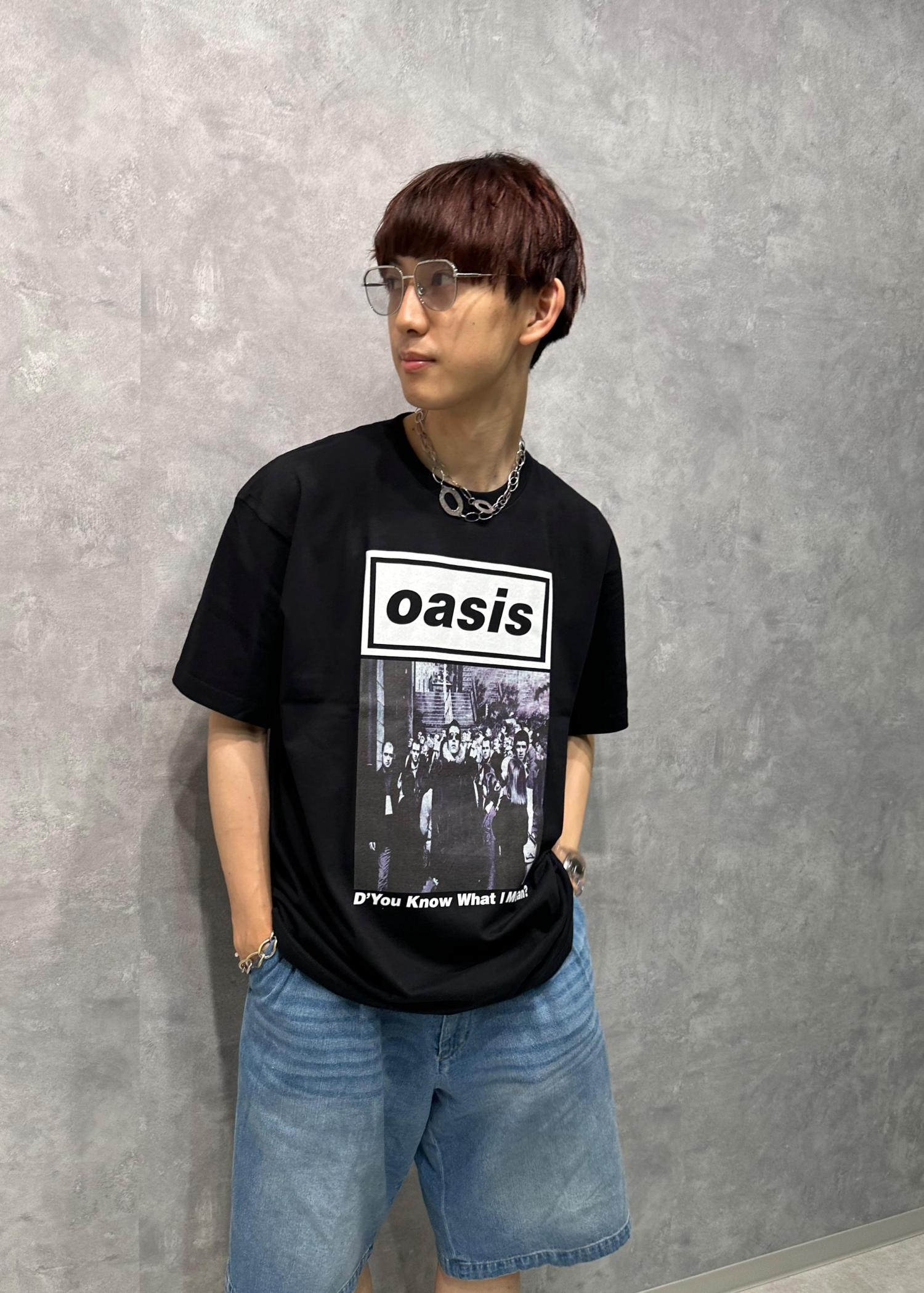 oasisTシャツ。ゆとりのあるサイズ感で丈は長めです。丈長いのが苦手な方はジャストサイズで選ぶのがおすすめです。