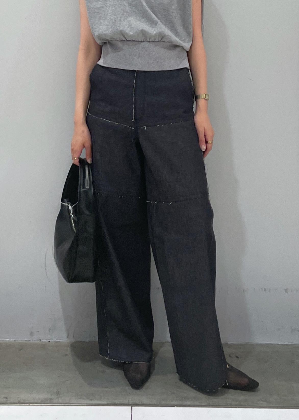 カットオフのデザインが一癖ありながらも、ストレートラインなので綺麗めにもお使い頂けます♪