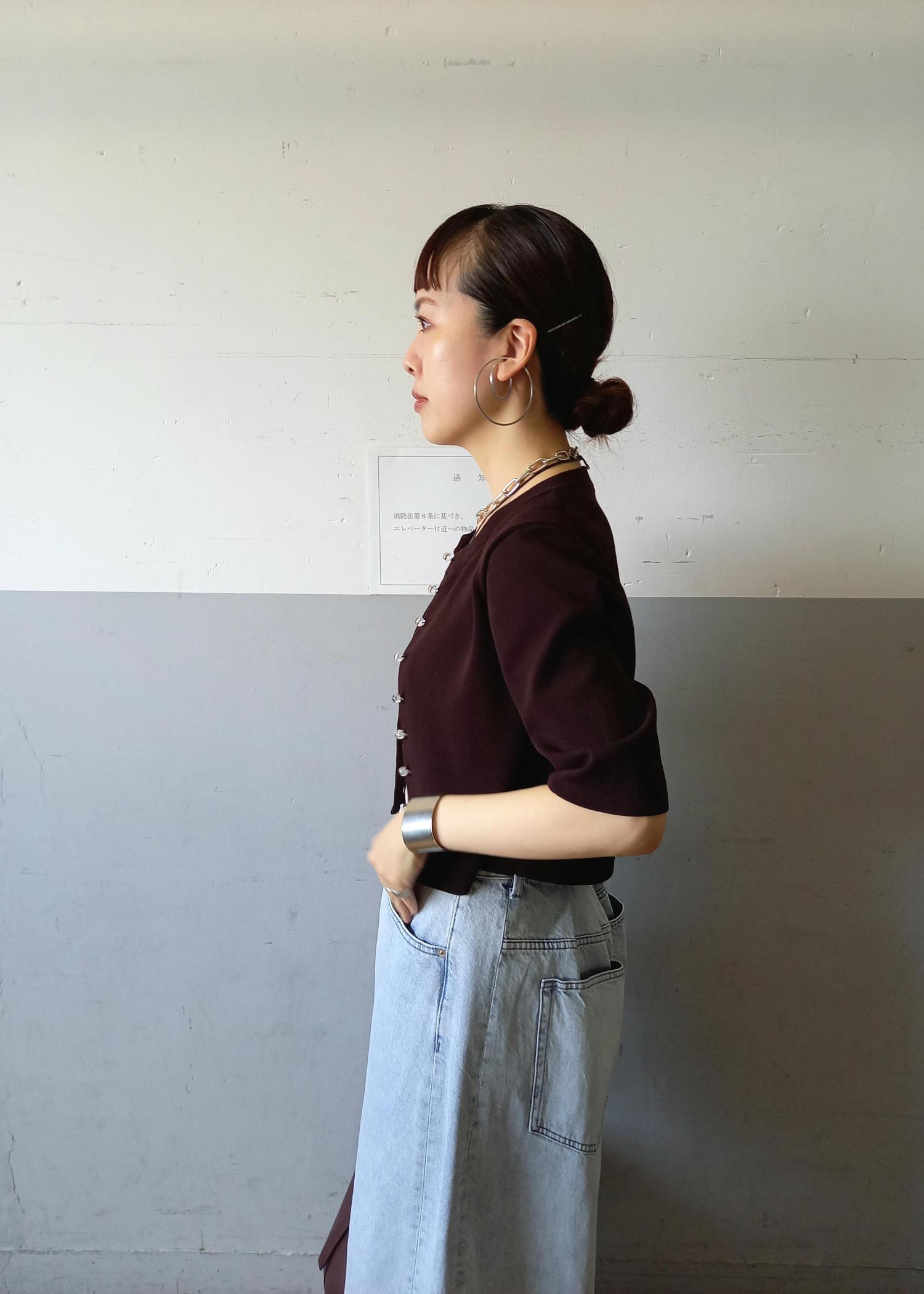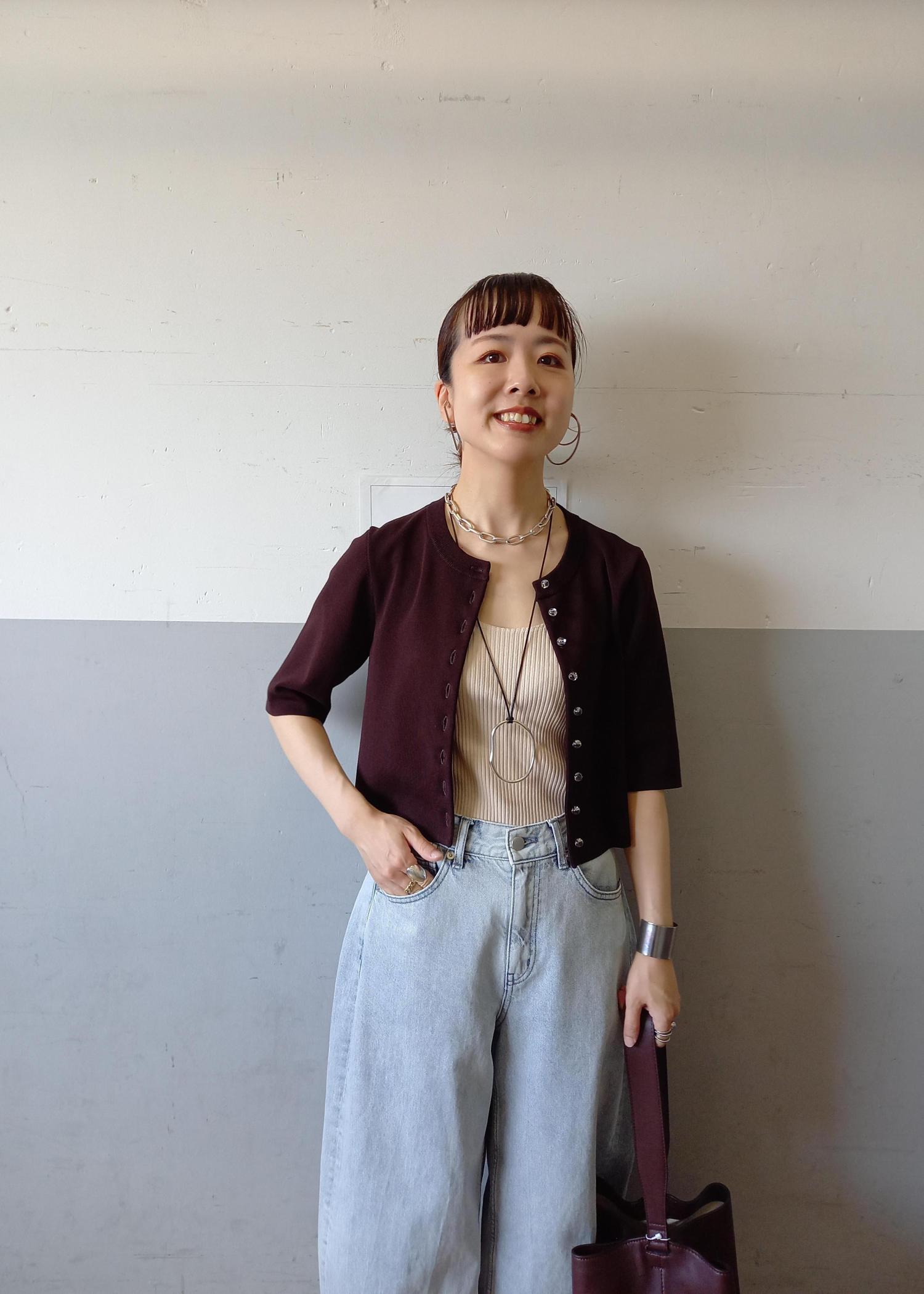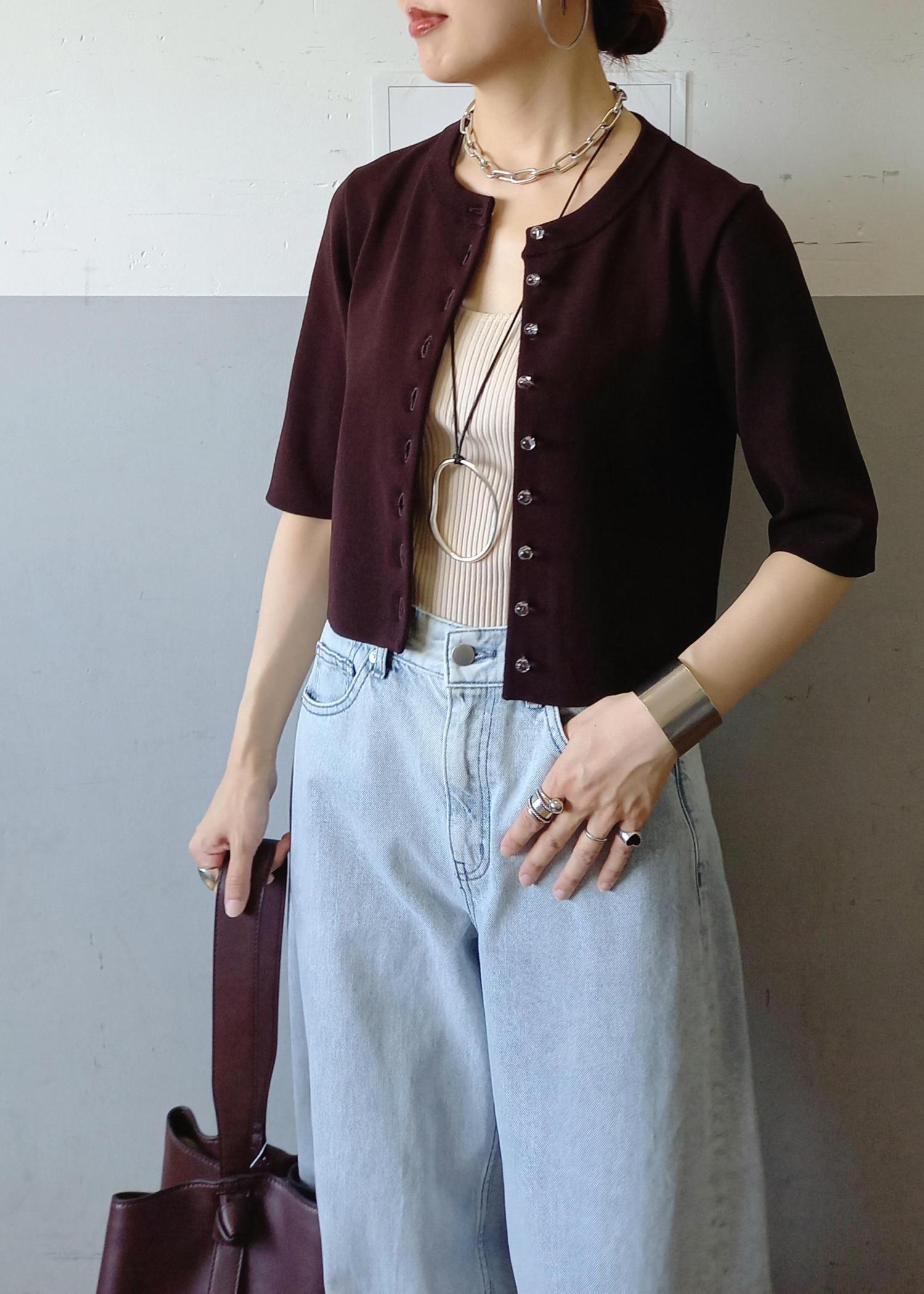 ADAM ET ROPÉ FEMME【サステナブル】クールタッチニットカーディガンダークブラウン / F¥11,000レビューすっきりコンパクトな丈感なのでスタイルアップ効果も☺️