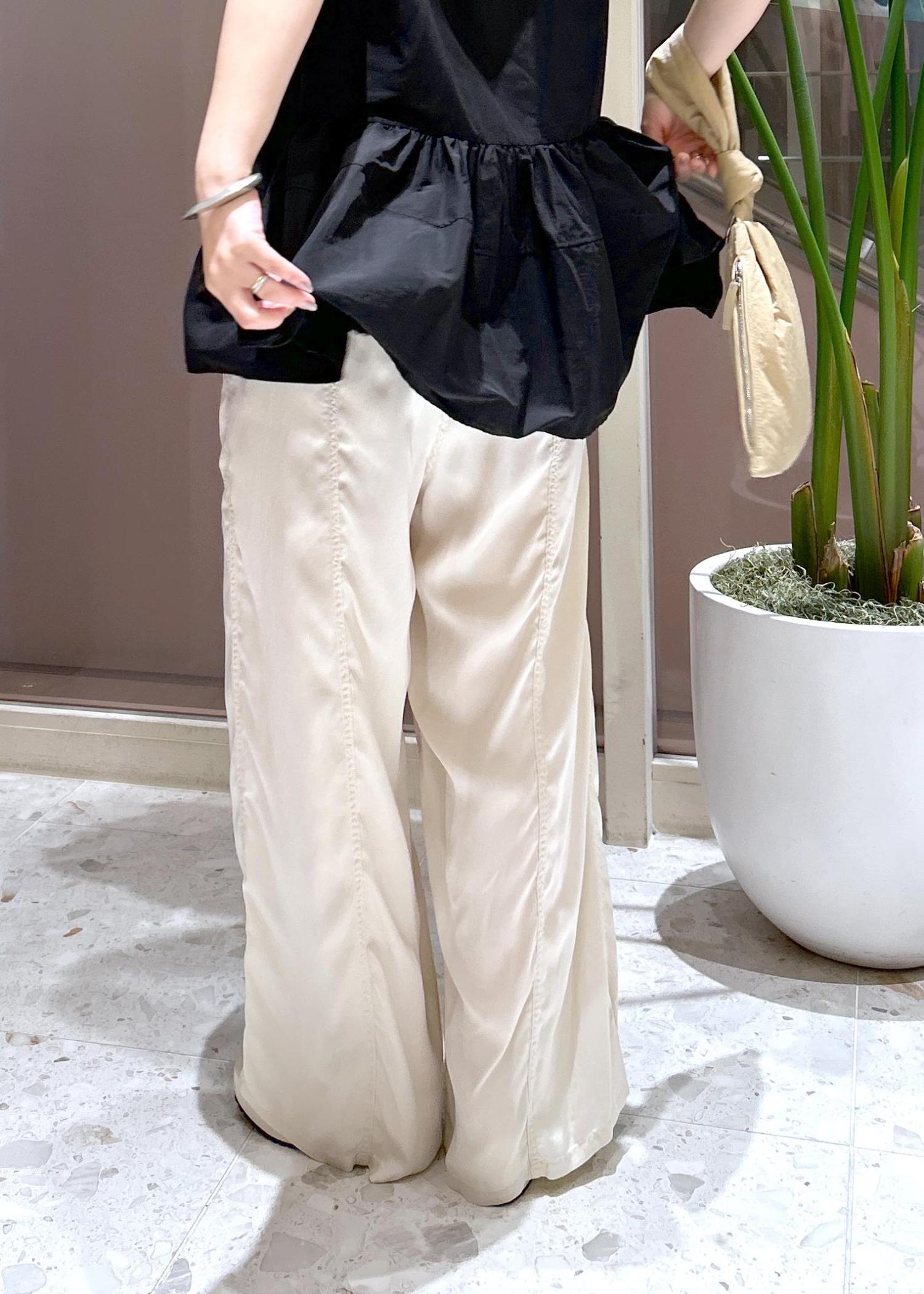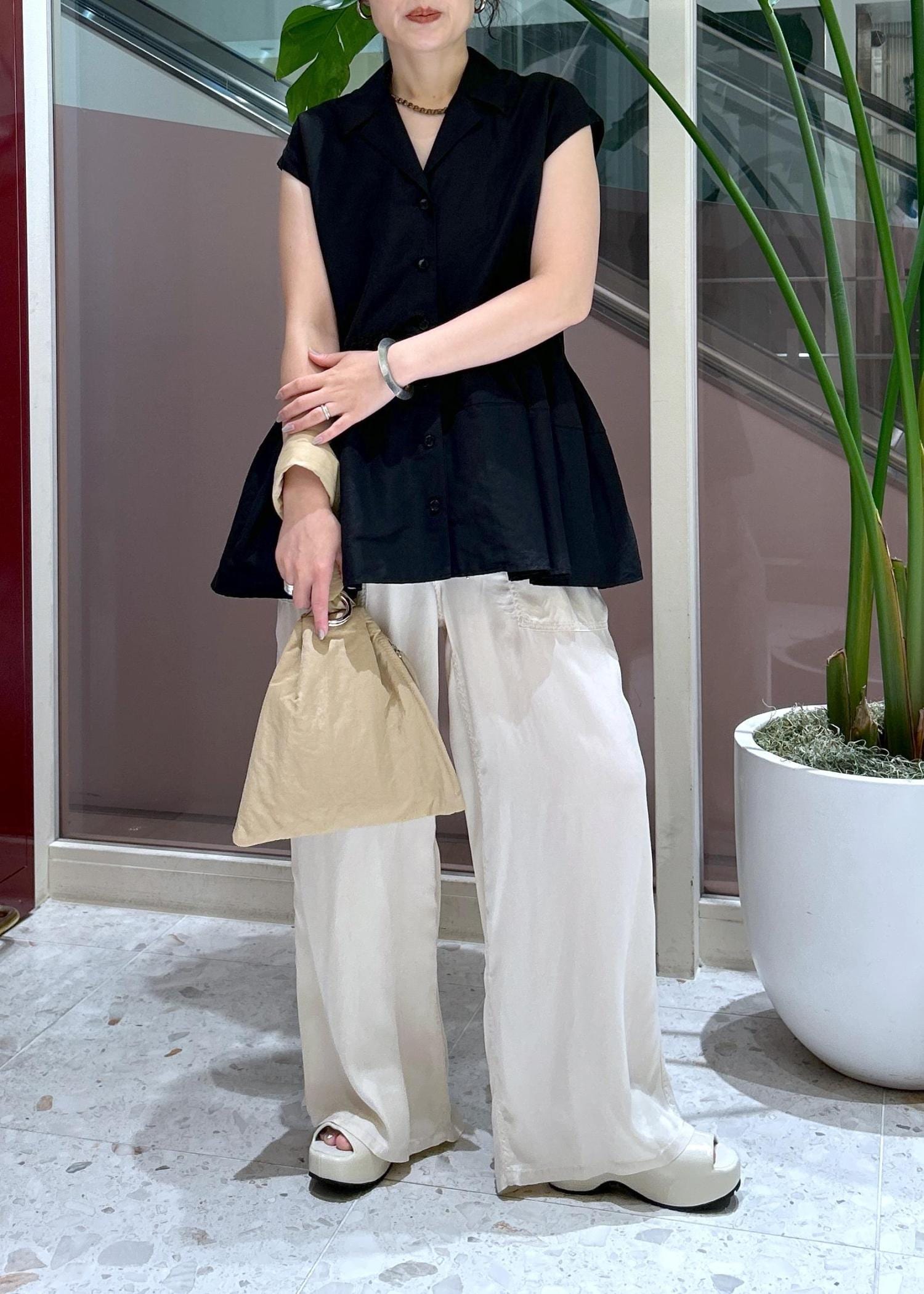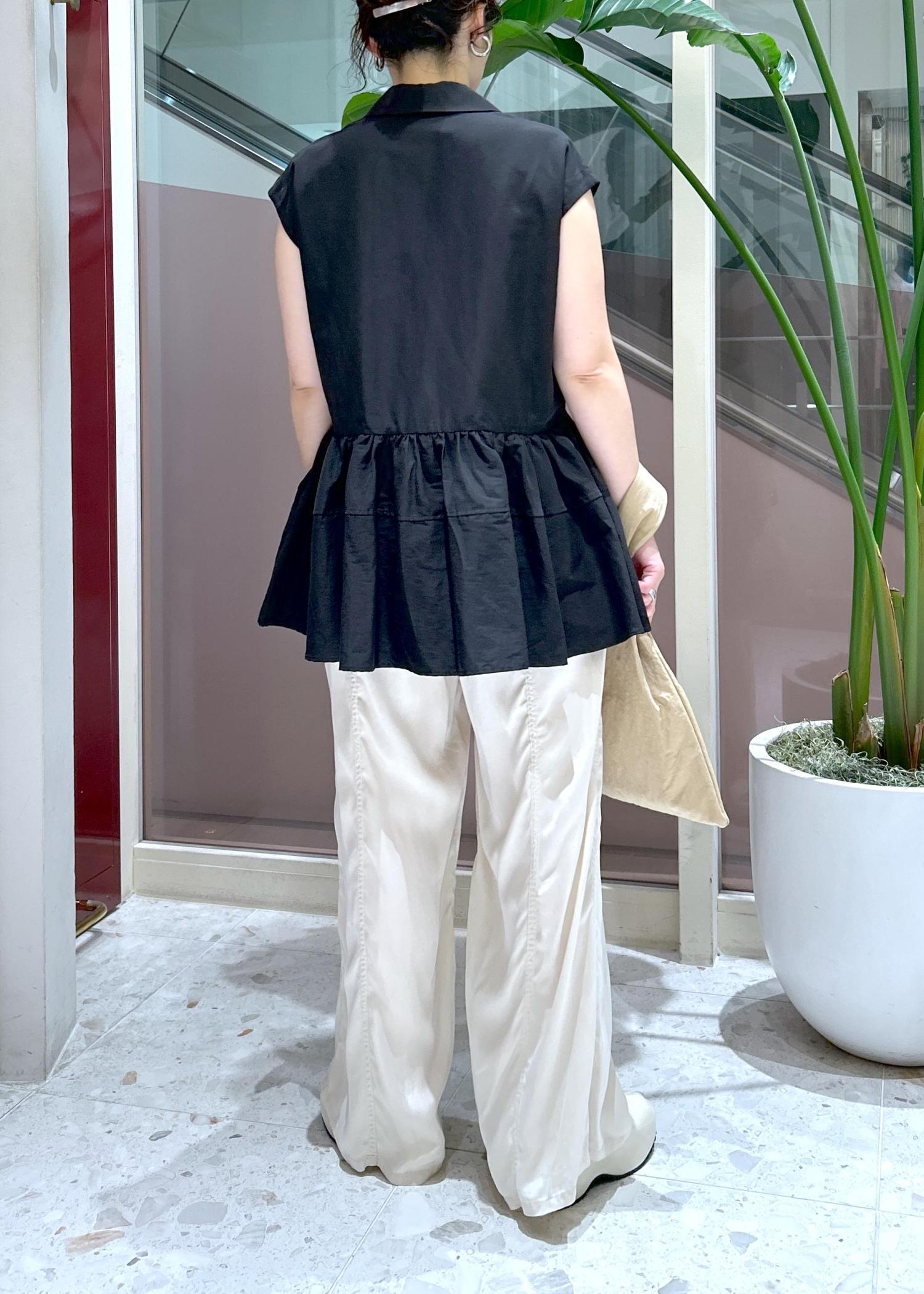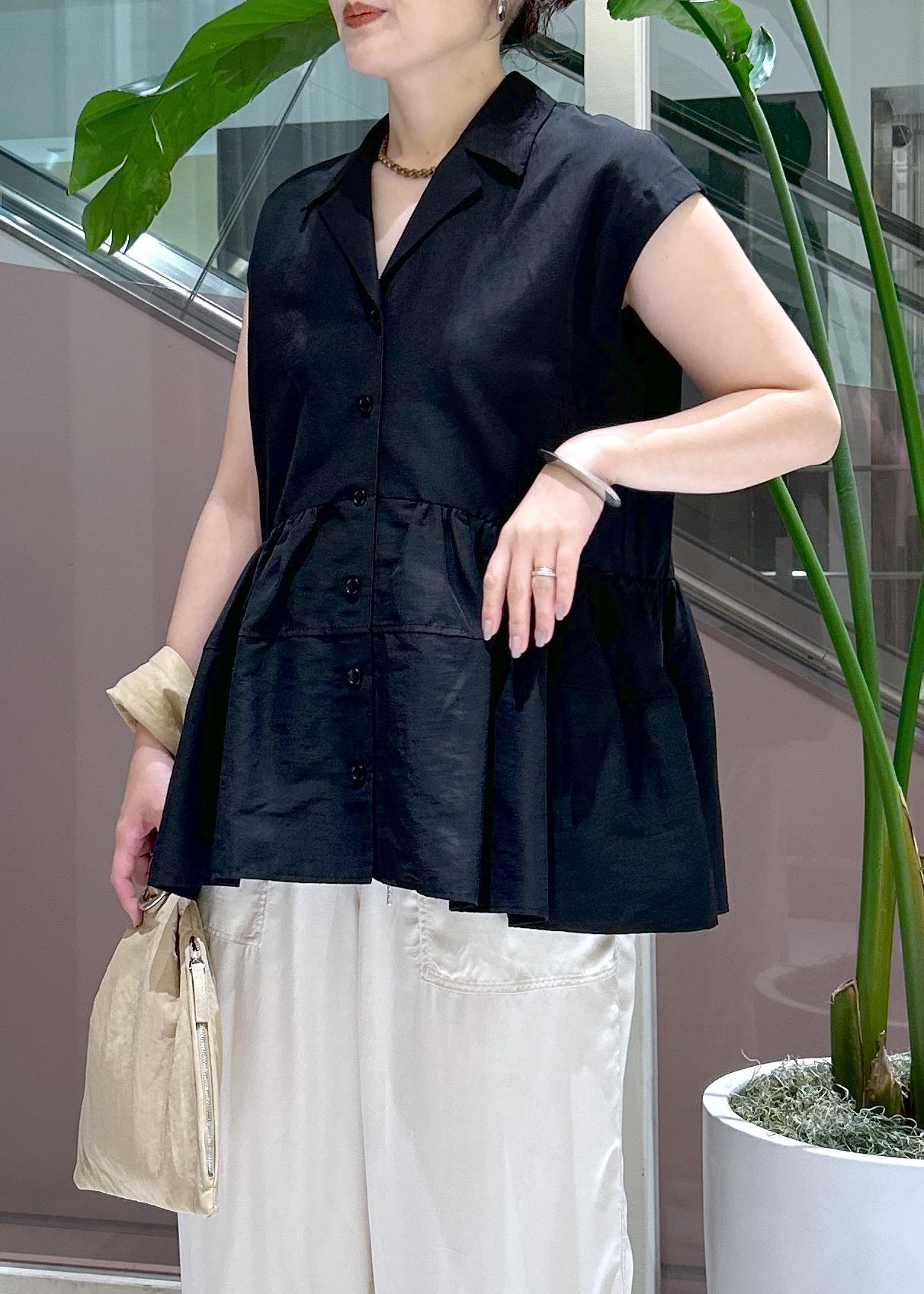 ペプラムのシルエットが可愛いブラウスは肌離れが良くふんわりしていて、涼しく着られます♪