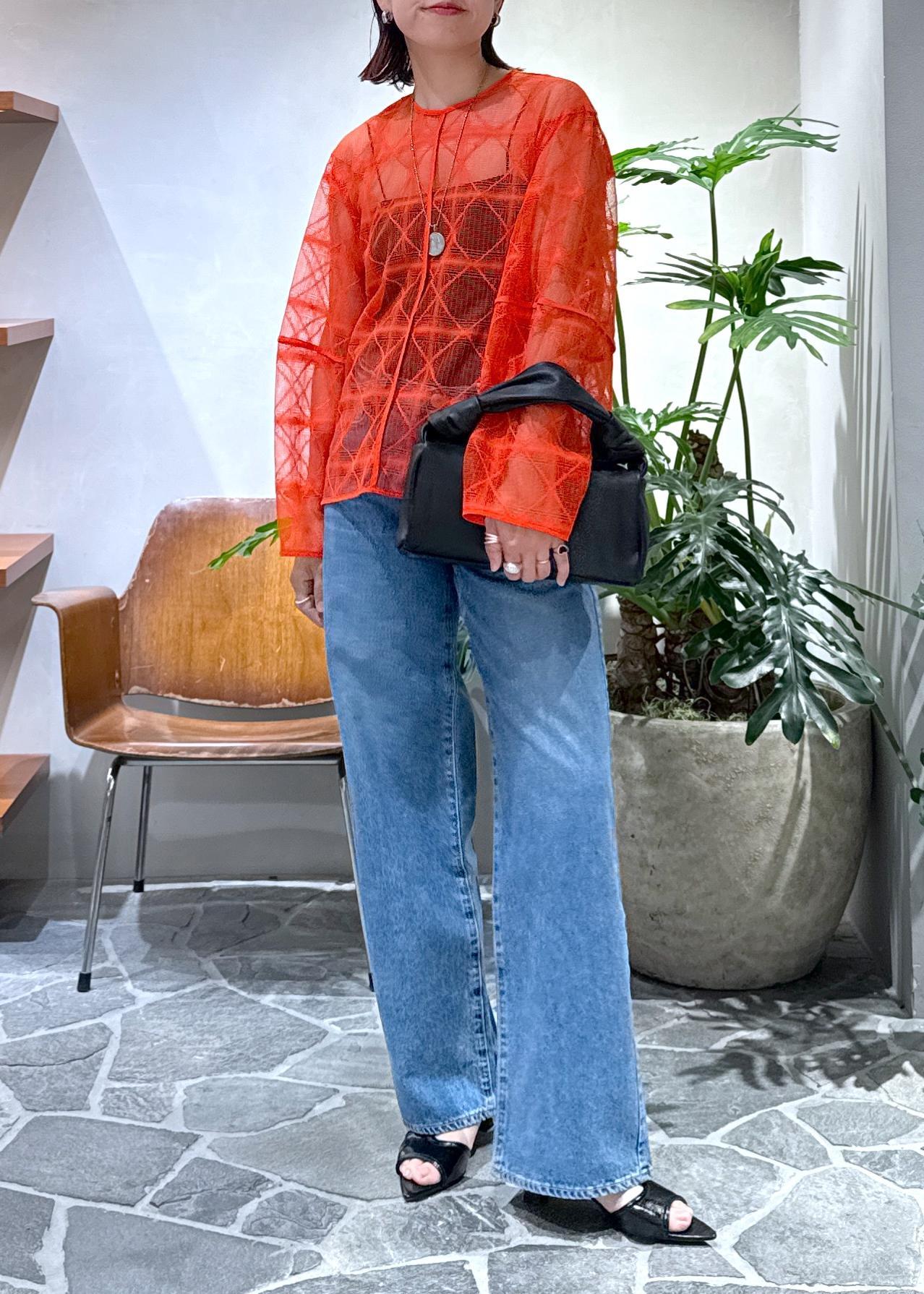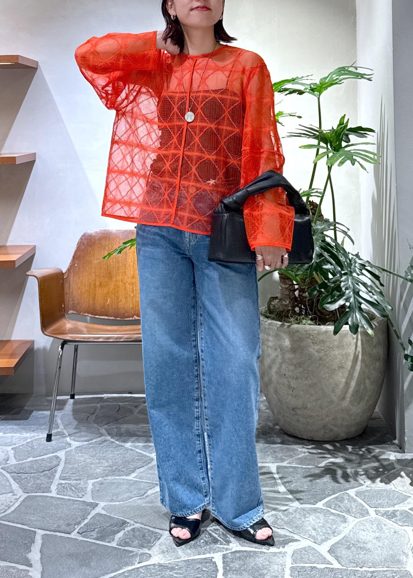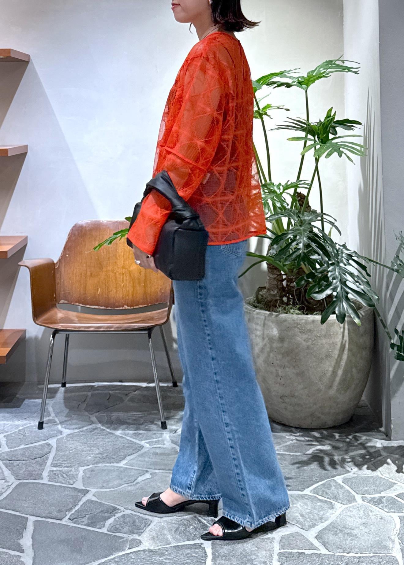 朱赤に近い夏にピッタリの赤をメインに、デニムを合わせました。