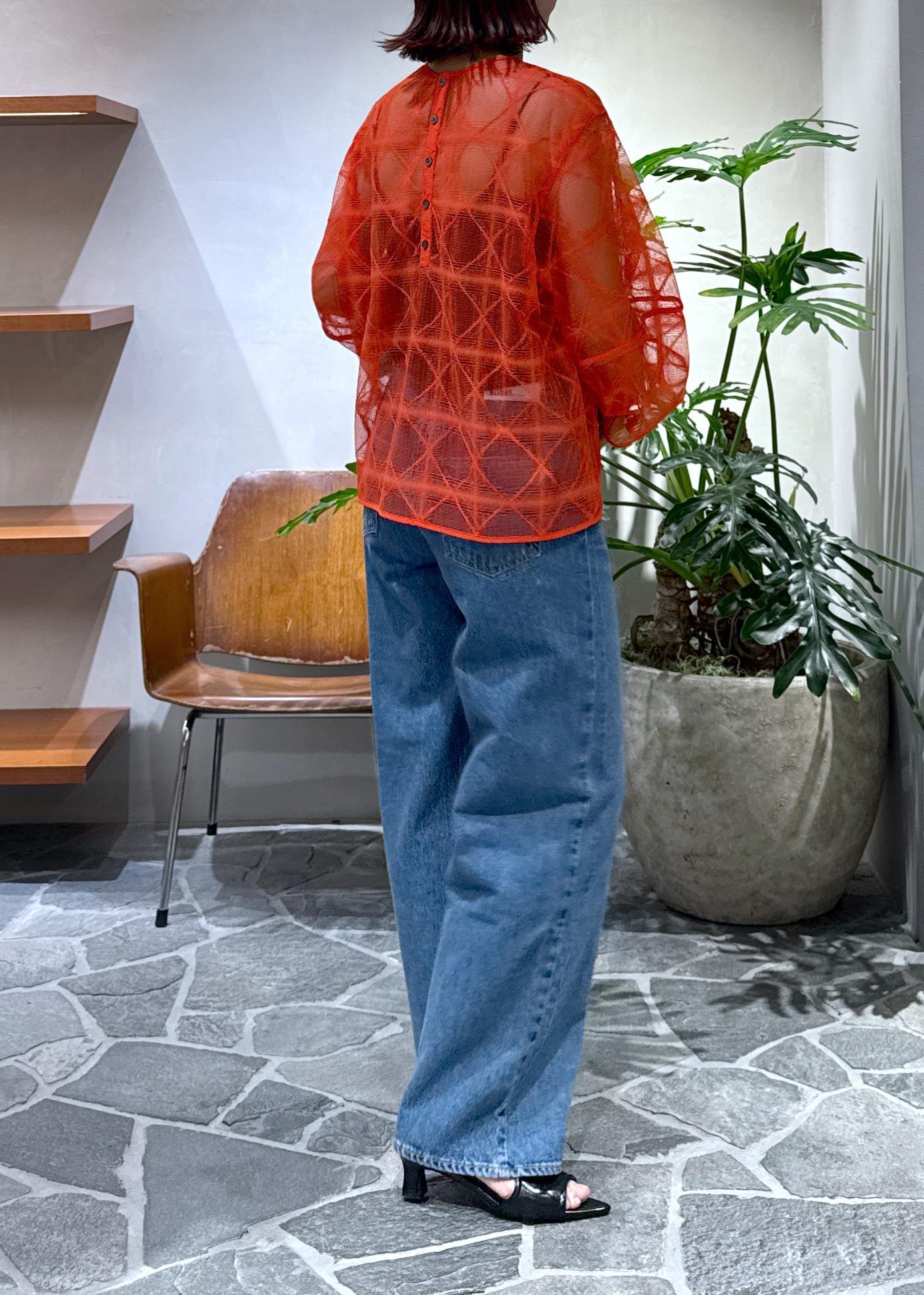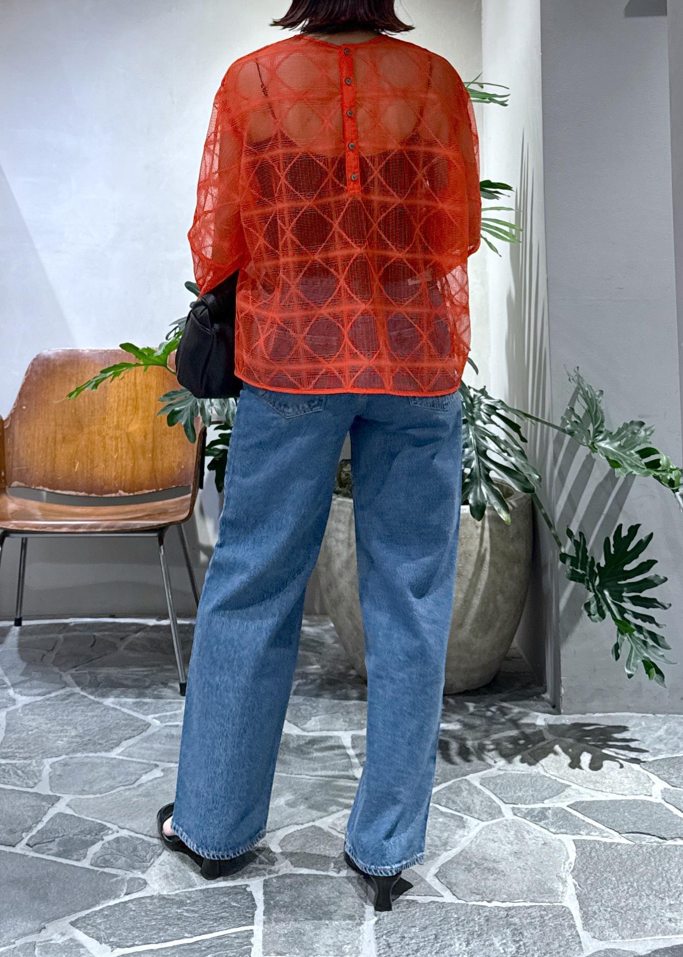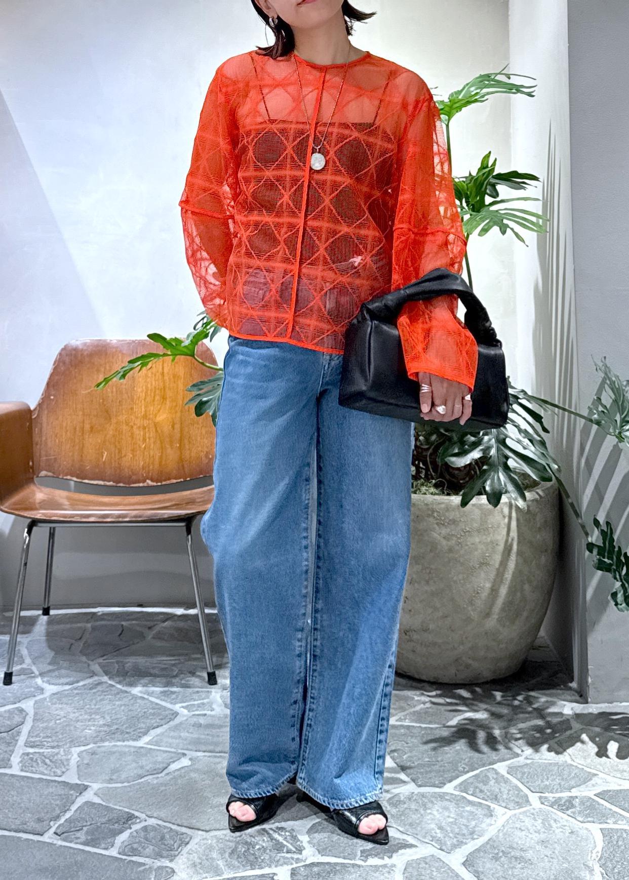 朱赤に近い夏にピッタリの赤をメインに、デニムを合わせました。