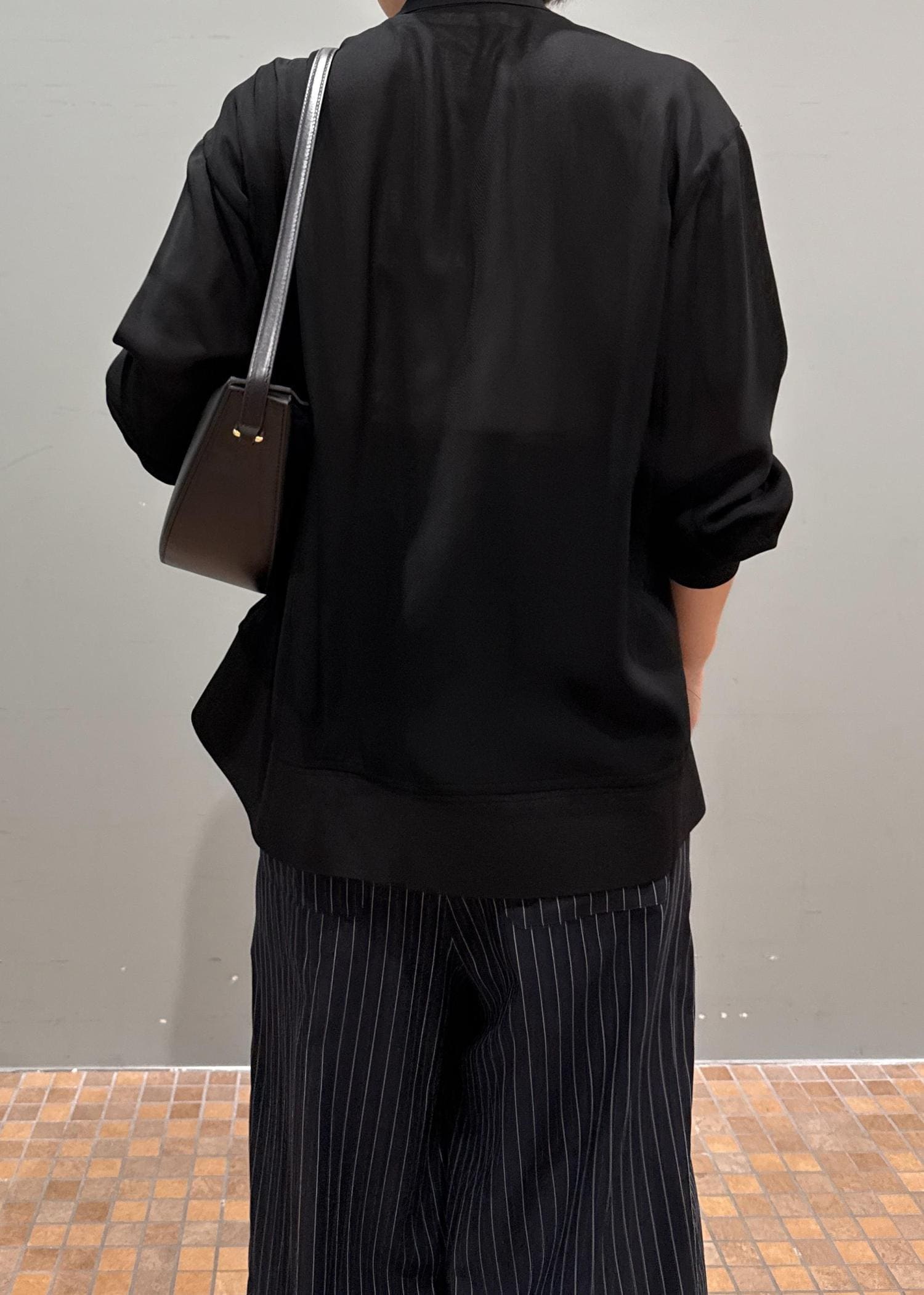 しっかりと丈感があり、安心して着られるのも嬉しいポイント。程よい透け感と落ち感があるので、重たく見えず、夏でも涼しげに着こなせます◎