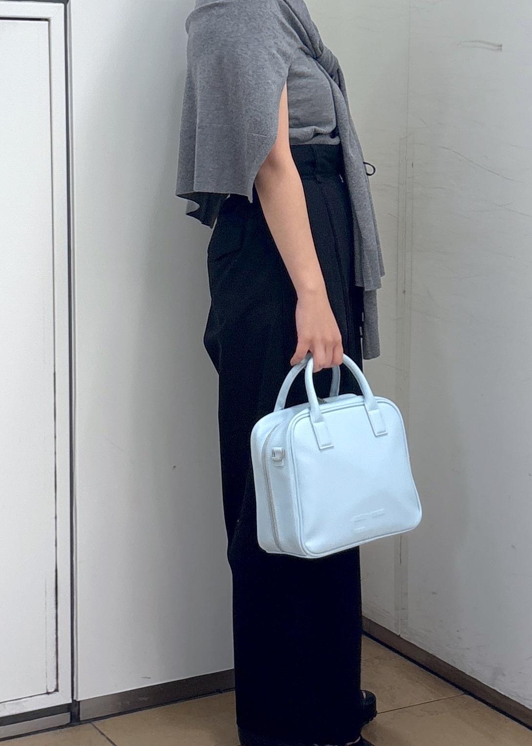 ADAM ET ROPÉ FEMME【サステナブル】・【再入荷】ロゴボストンバッグサックス / F¥9,900レビューコンパクトなサイズ感ですが、マチ幅もしっかりあり、ファスナー部分が広く開くので荷物もたくさん入ります◎