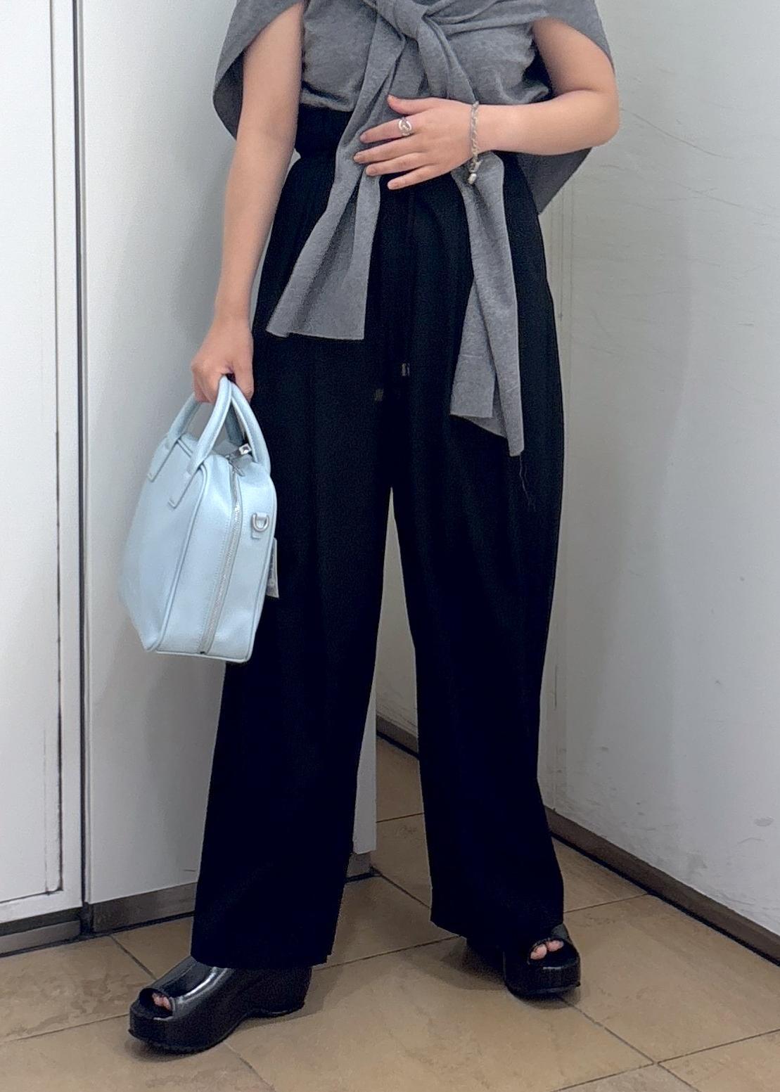 ADAM ET ROPÉ FEMMEドロストドカンパンツブラック / 34¥24,200レビュー普段36サイズを着用することが多いですが、34サイズでもウエスト部分が紐で調節できるため、ゆったりと履くことができました!