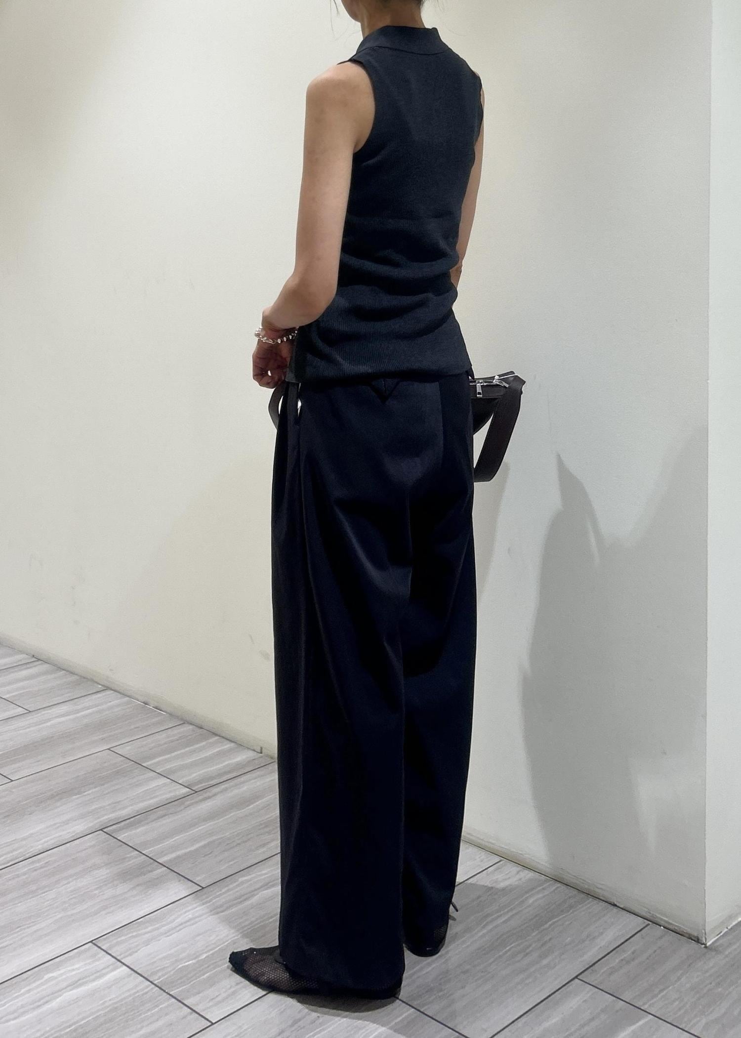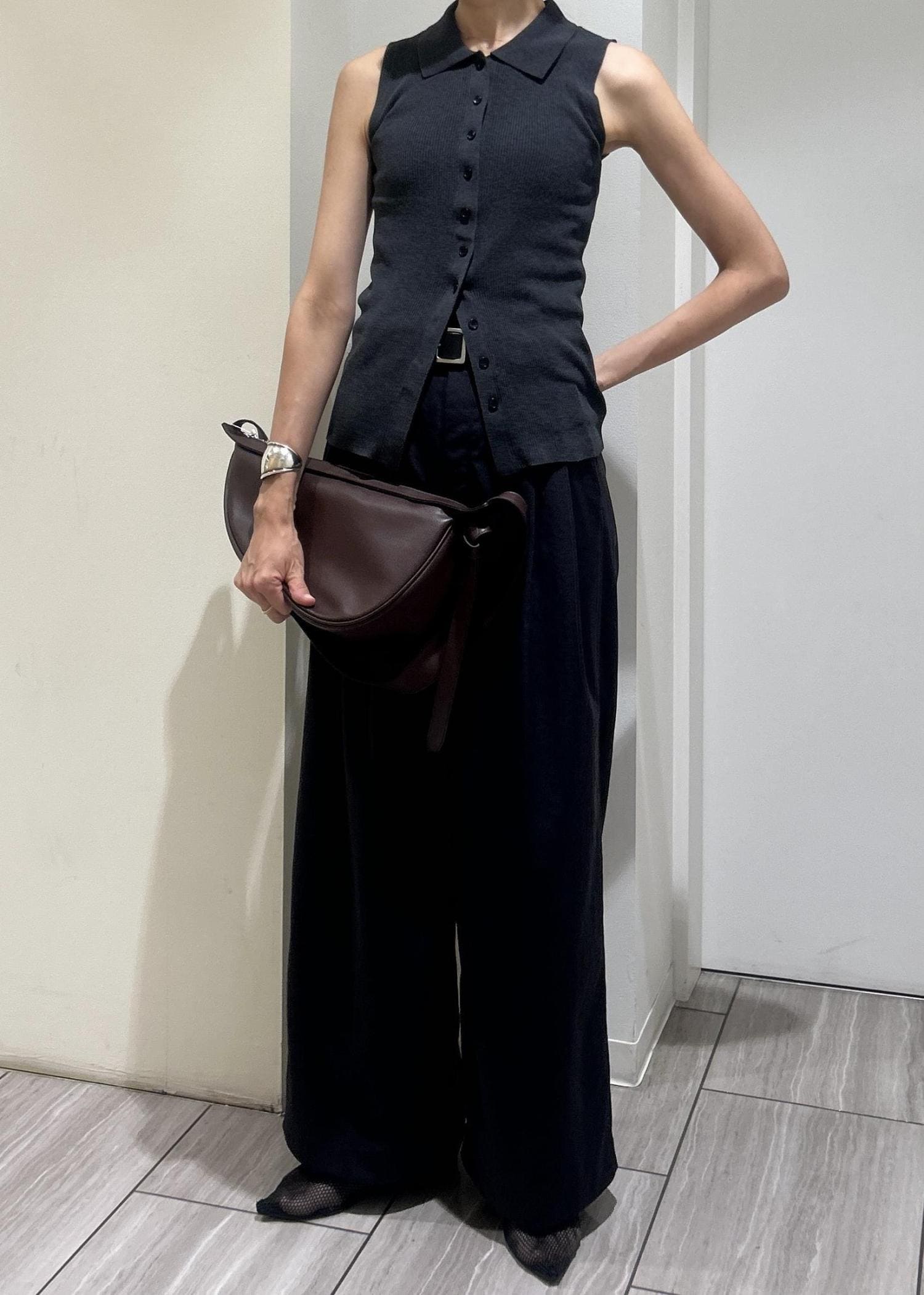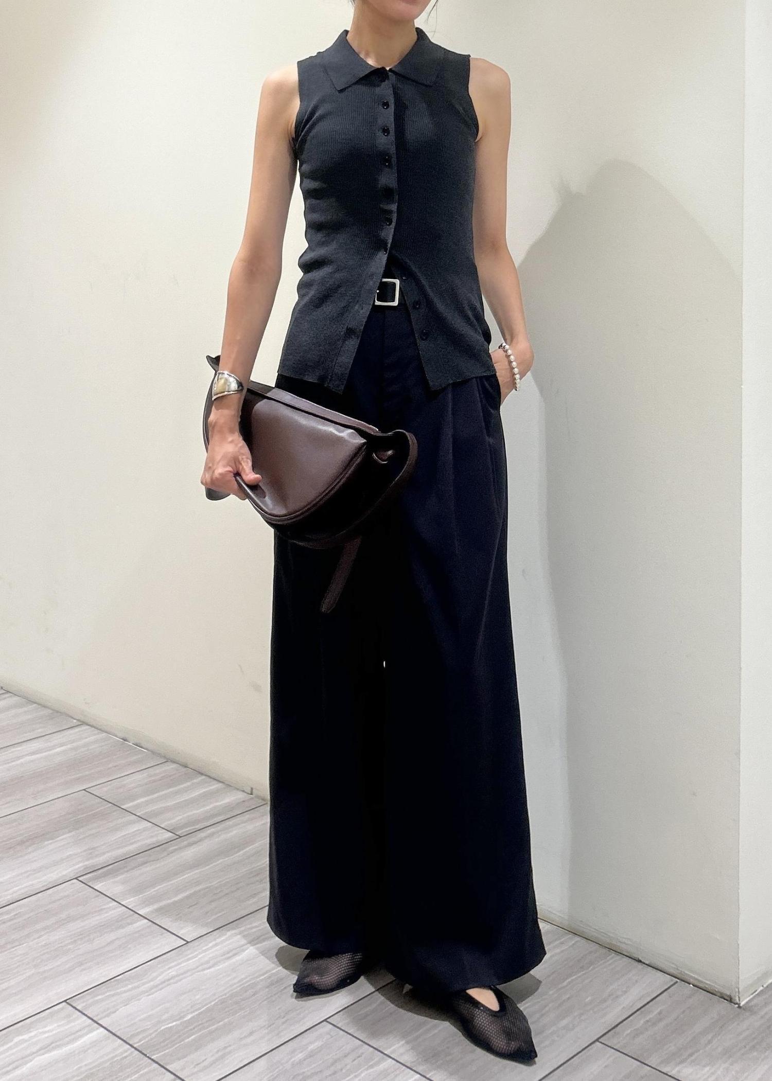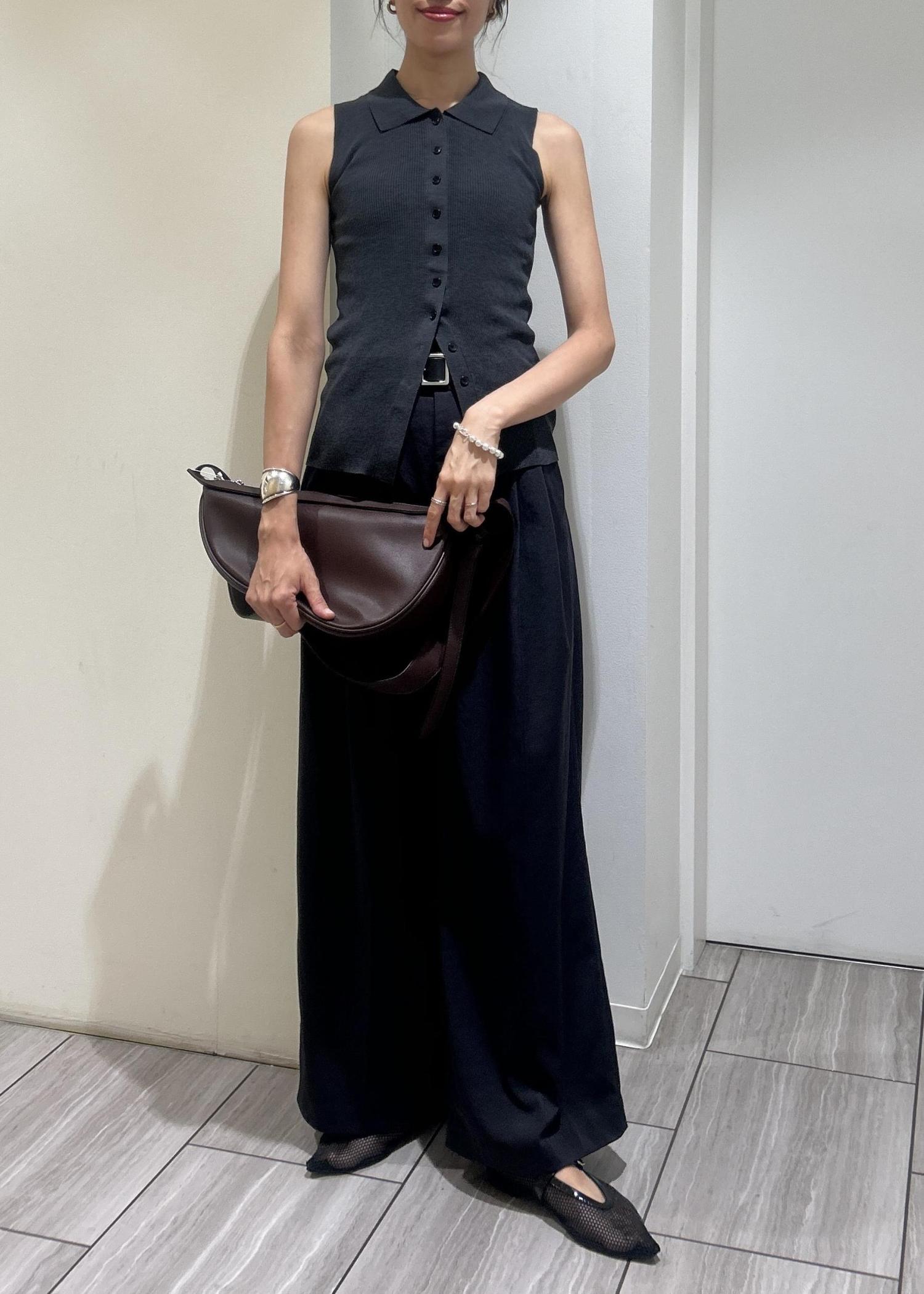 立体的なリブとすっきりとしたシルエットが魅力のノースリーブニット。