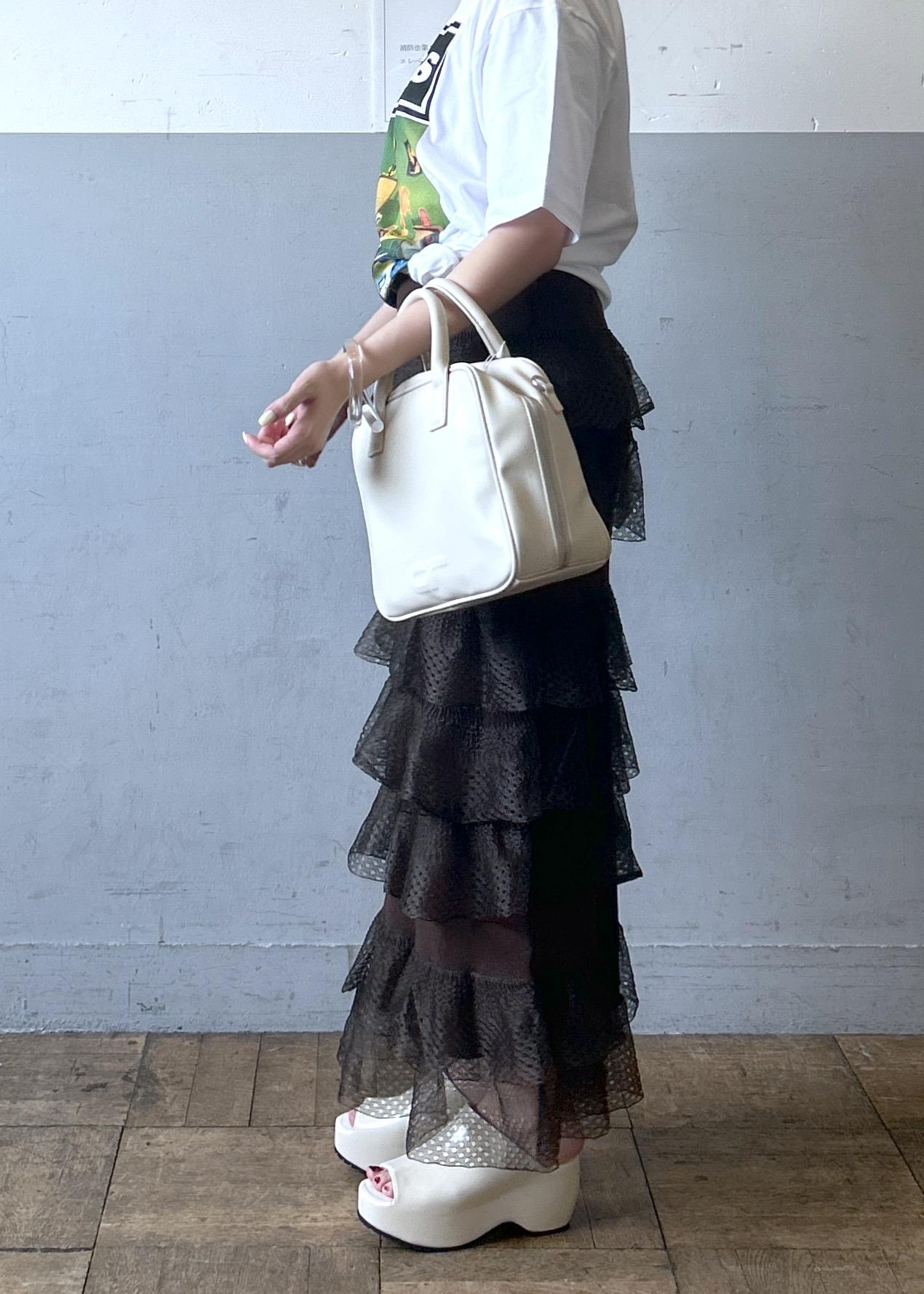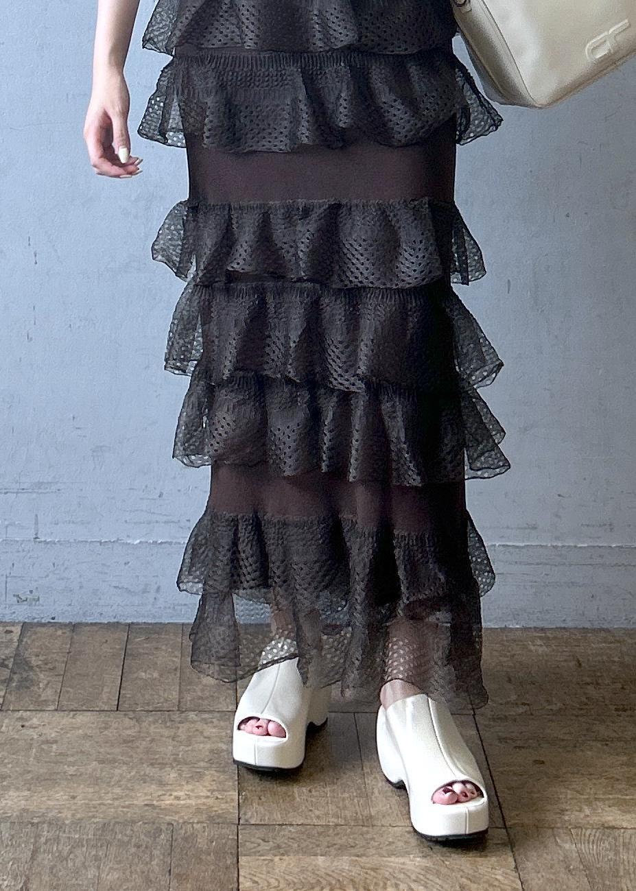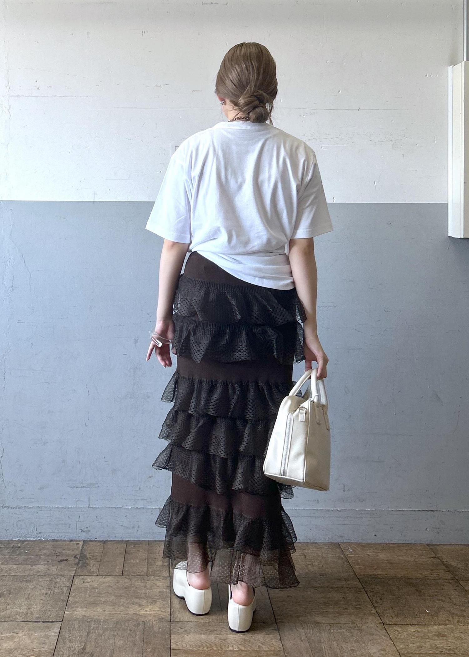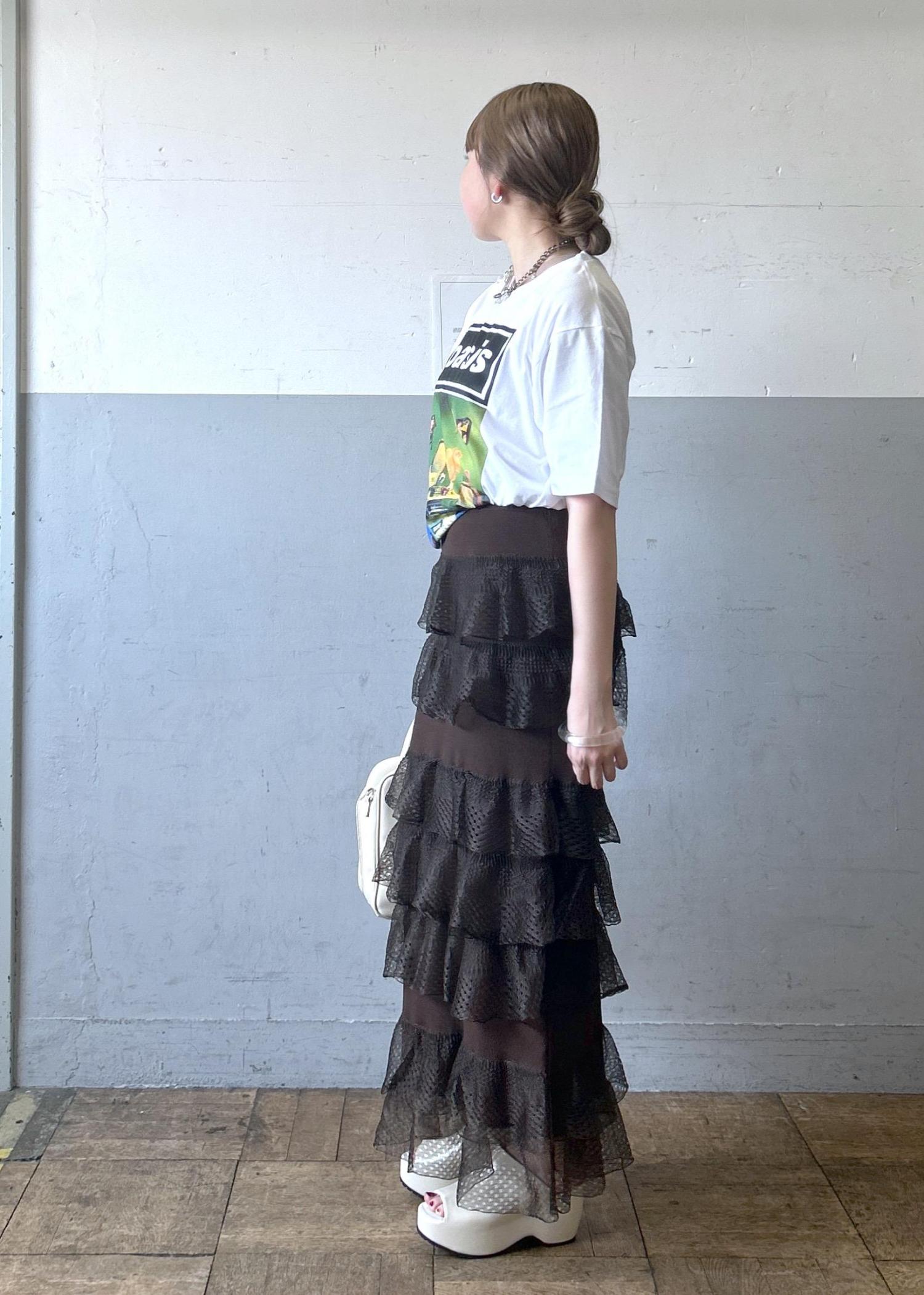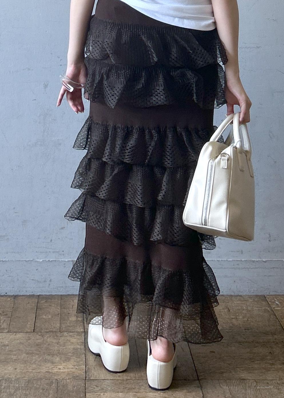 フリルスカートは、今回ブラウンカラーを着用しています。