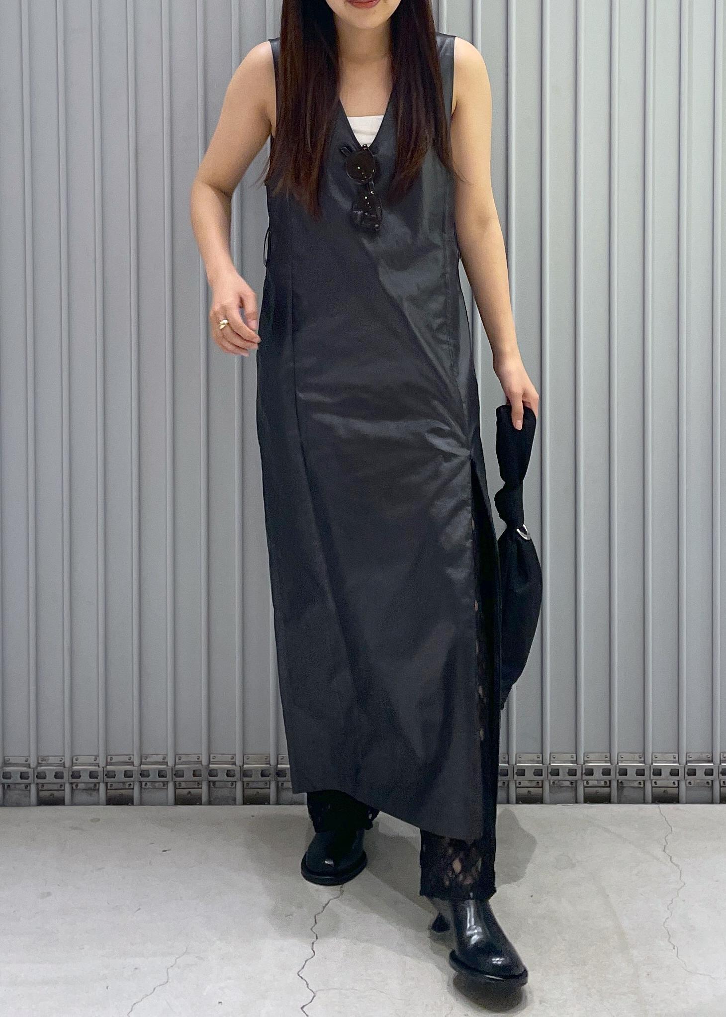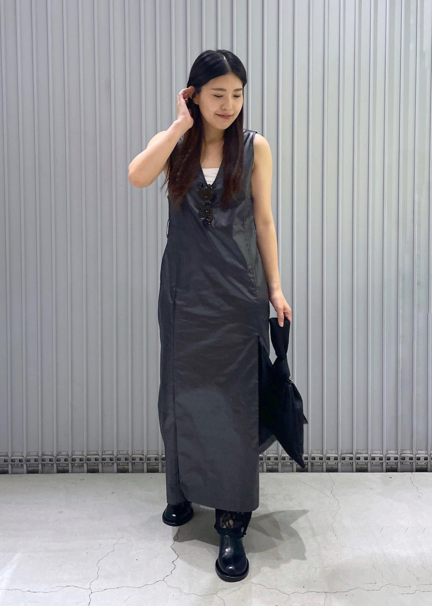 アウトレットADAM ET ROPÉ FEMMEスリットジャンパースカートブラック / F¥18,480レビューウエストベルトは外しています。