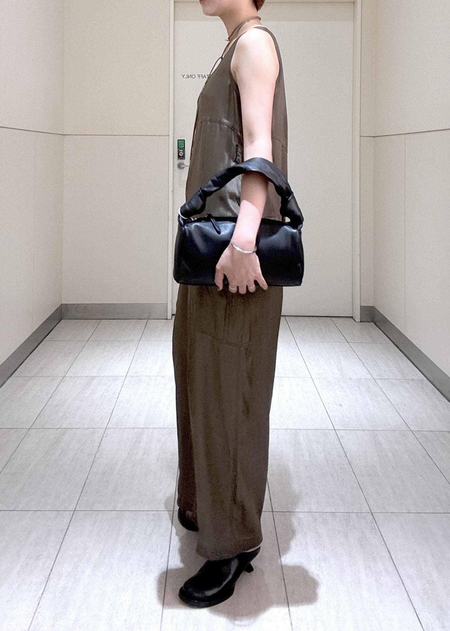 PFT【PFT】Fuka musubi Small バッグブラック / F¥44,000レビューふかふか、柔らかいレザーで気軽に合わせたくなる素材感でした。薄手のトップスでしたら肩掛けも可能です◯