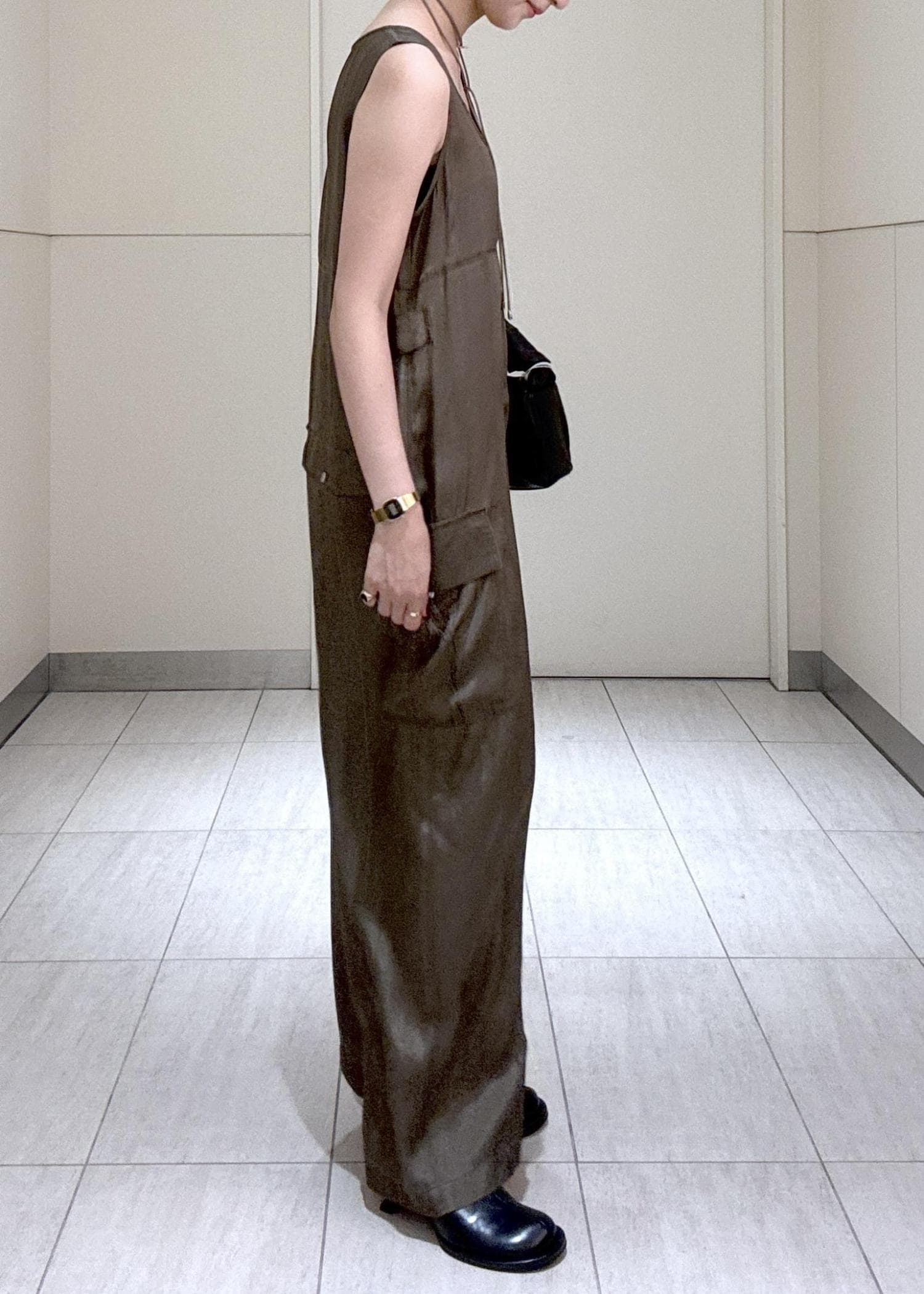 サラッとした素材感。女性らしいマイルドなカーキなのでミリタリー感強すぎず取り入れやすいです。 -