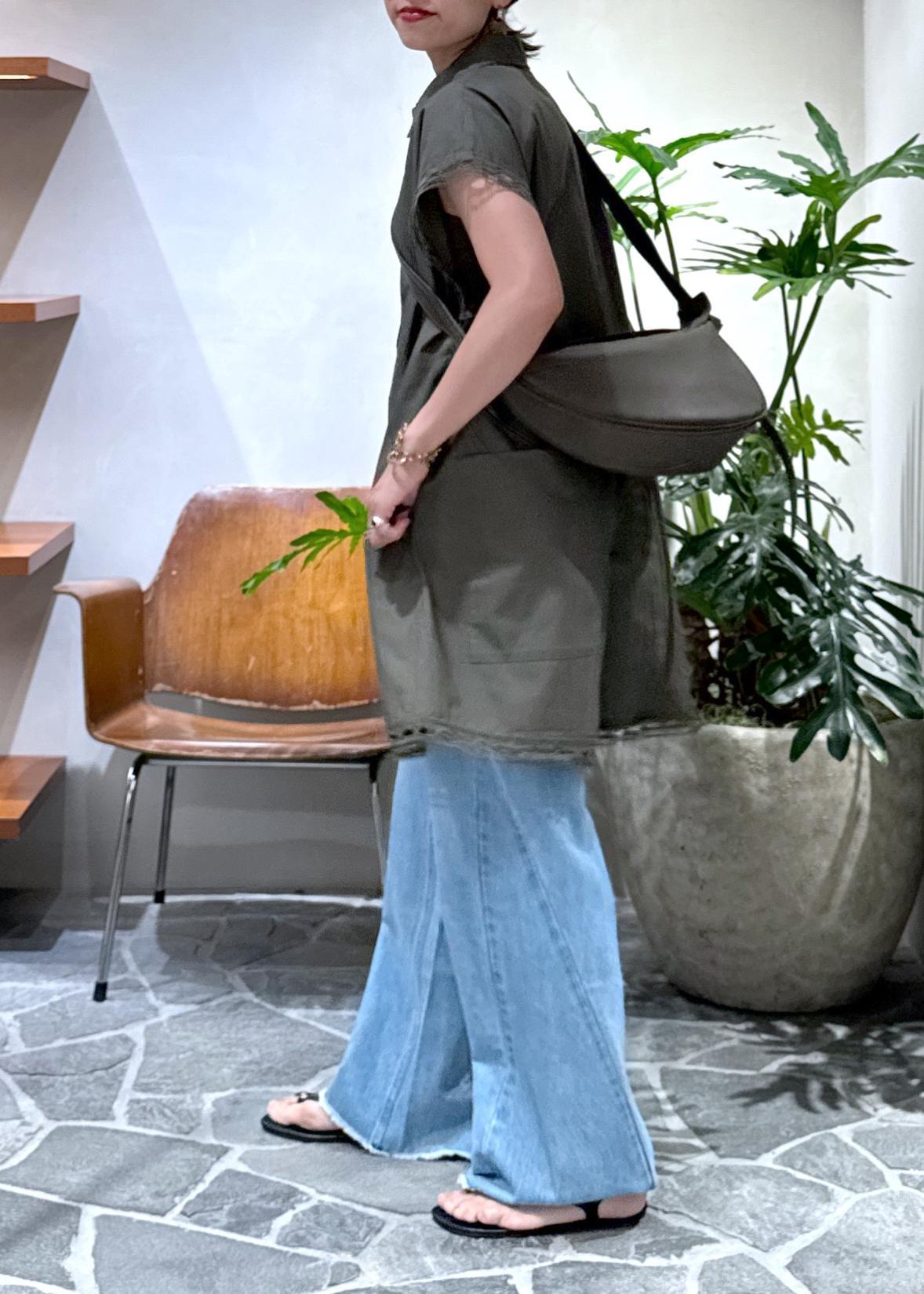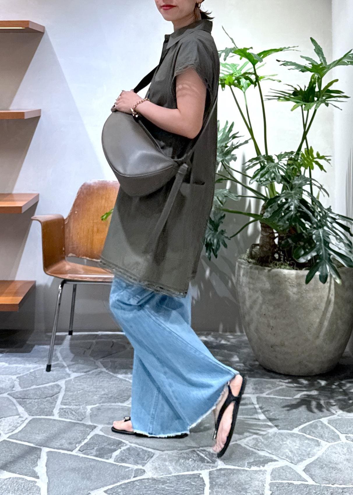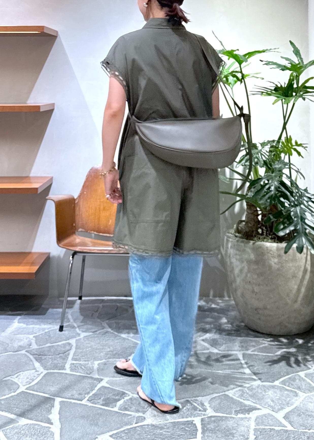 肩紐の調節は出来ませんが、バッグ本体が腰辺りにくるように設計されているので、ちょうどいい長さです。アウターを着る時期でも斜め掛けしやすいと思います。