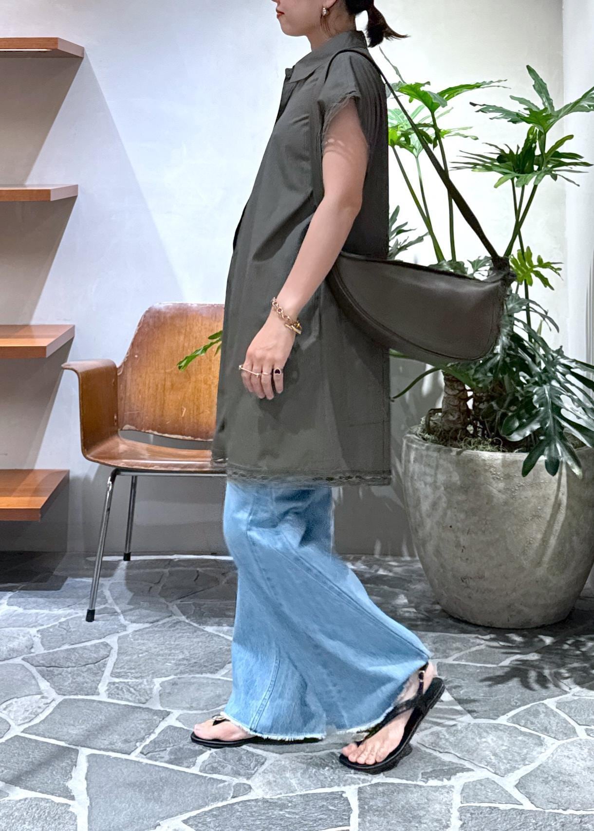 デニムの他に、シアーパンツやリブパンツをレイヤードするのも可愛いですよ!
