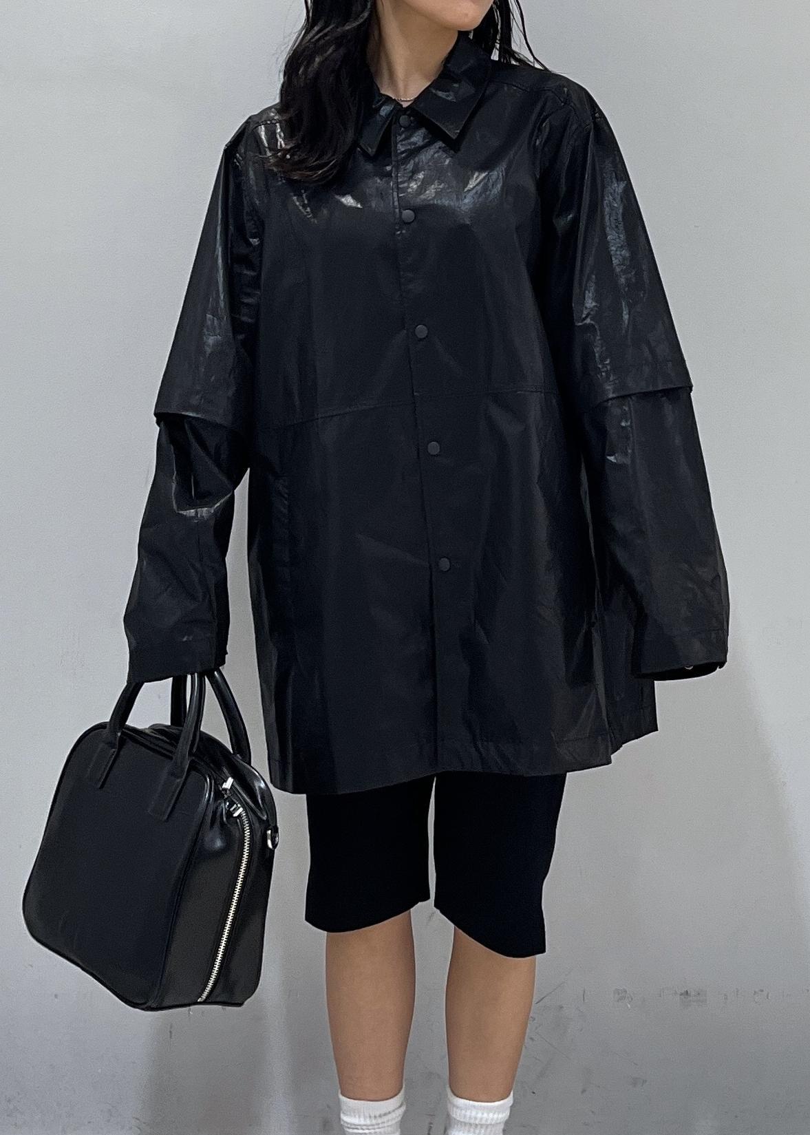 レザーのような光沢感のあるコットン素材を使用しており、お袖部分も取り外し可能なので1着持っていると季節問わず着回しが出来ます!