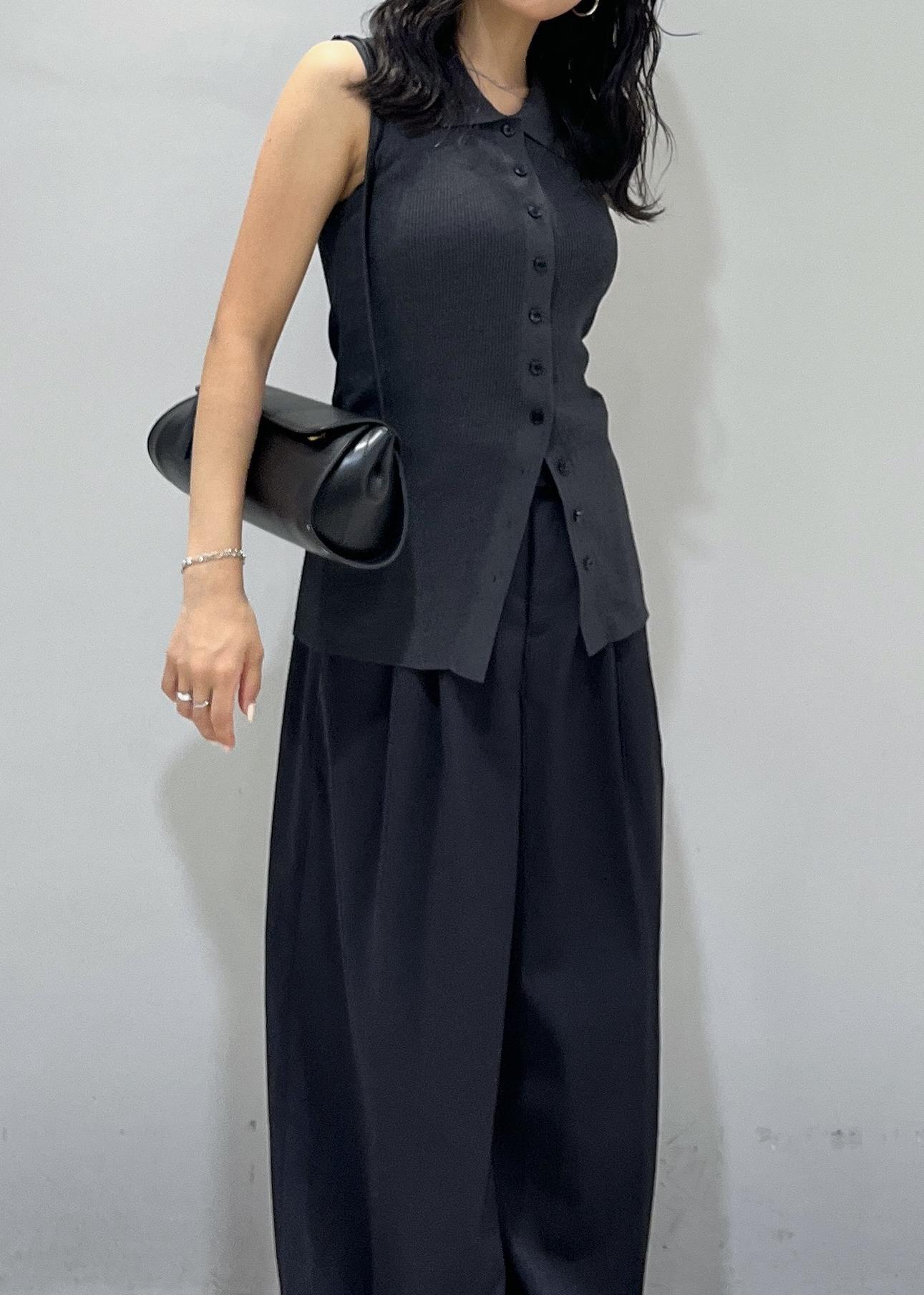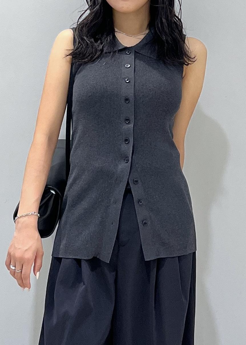 アウトレットADAM ET ROPÉ FEMMEリブノースリーブニットチャコール / F¥9,570レビュータイトなシルエットなのでスタイルをキレイに見せてくれます◎