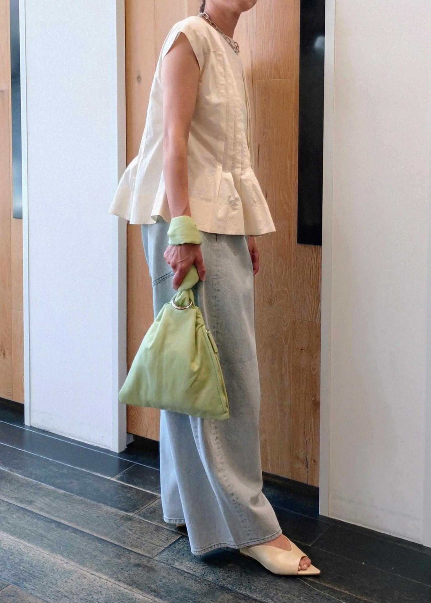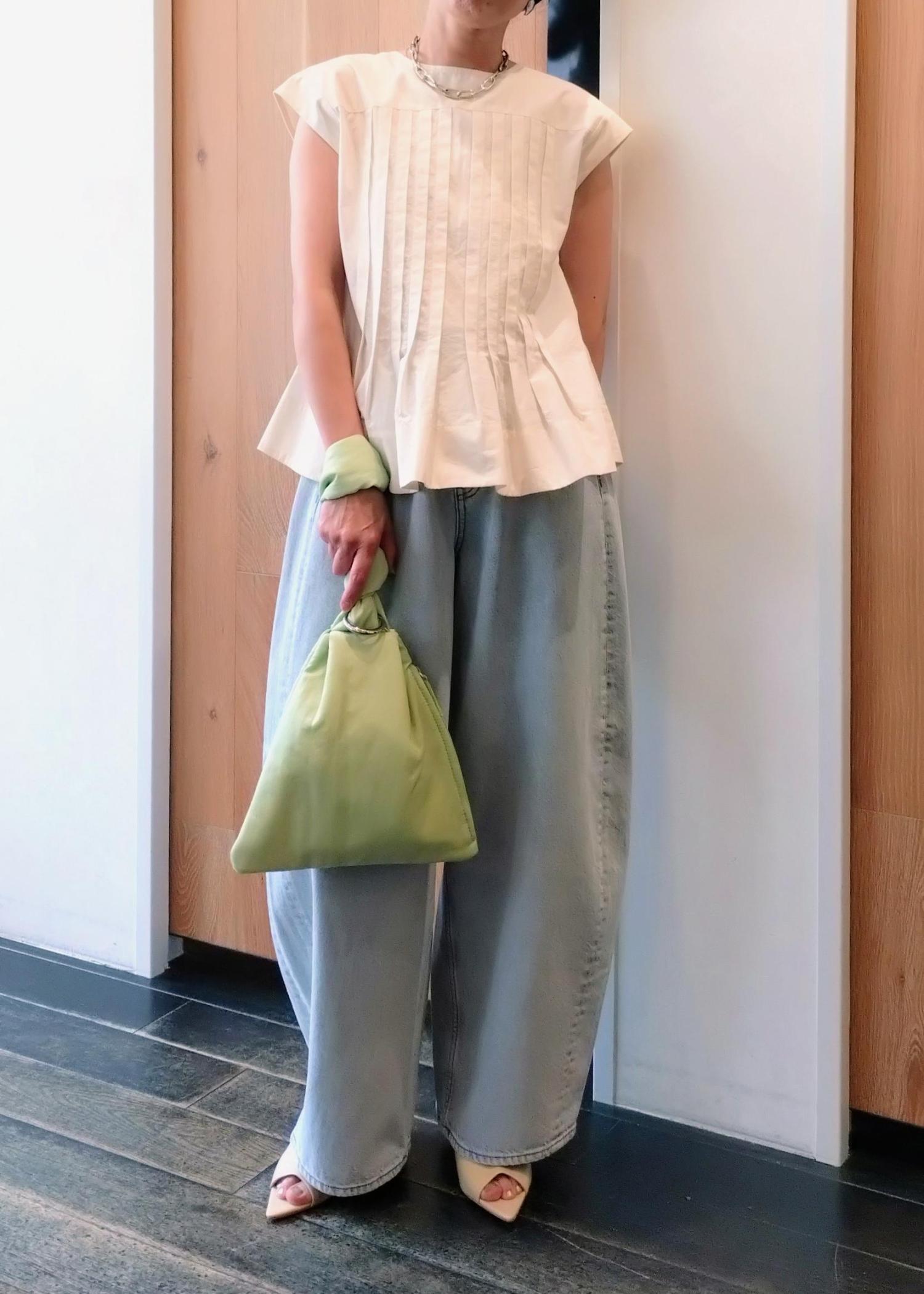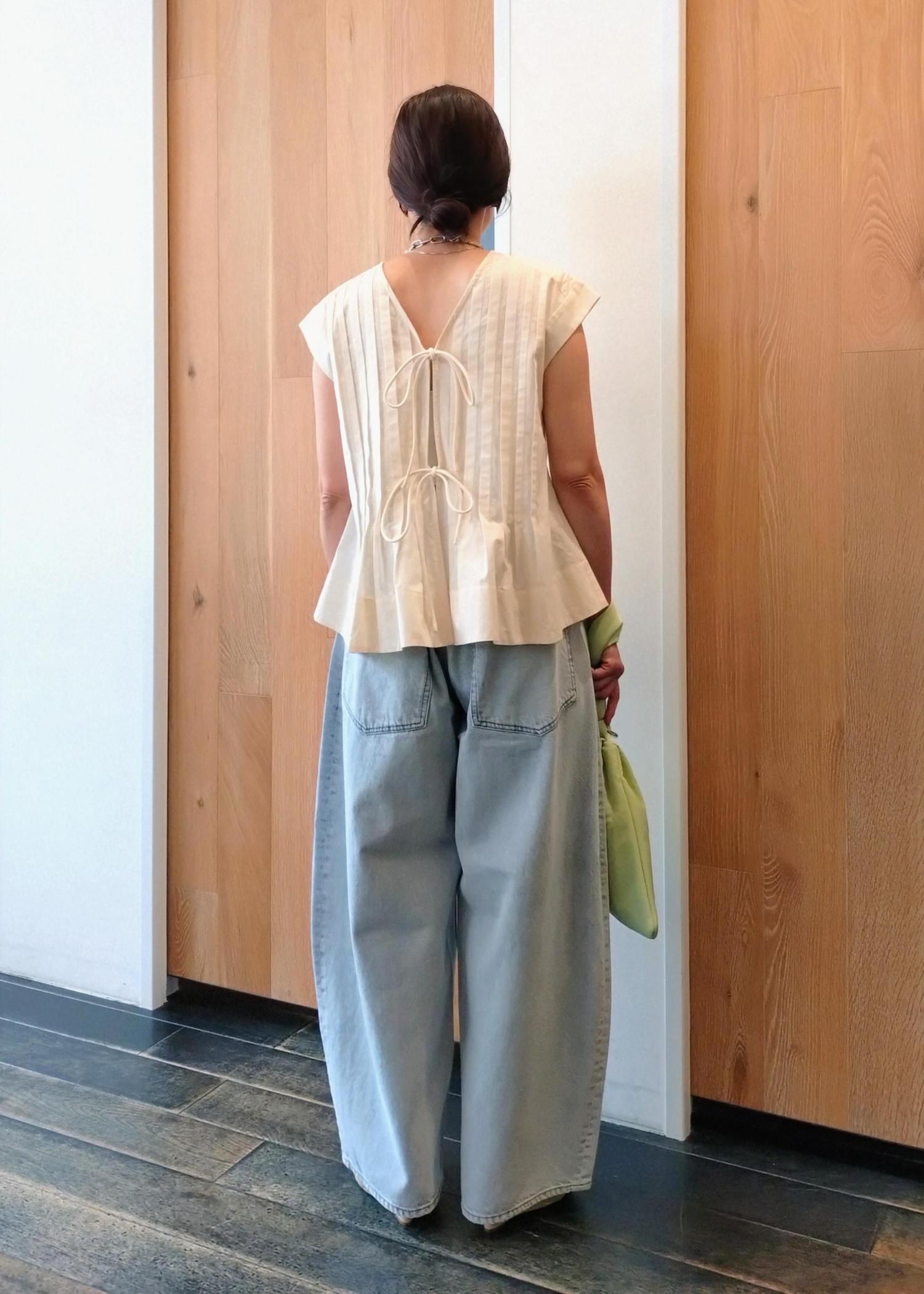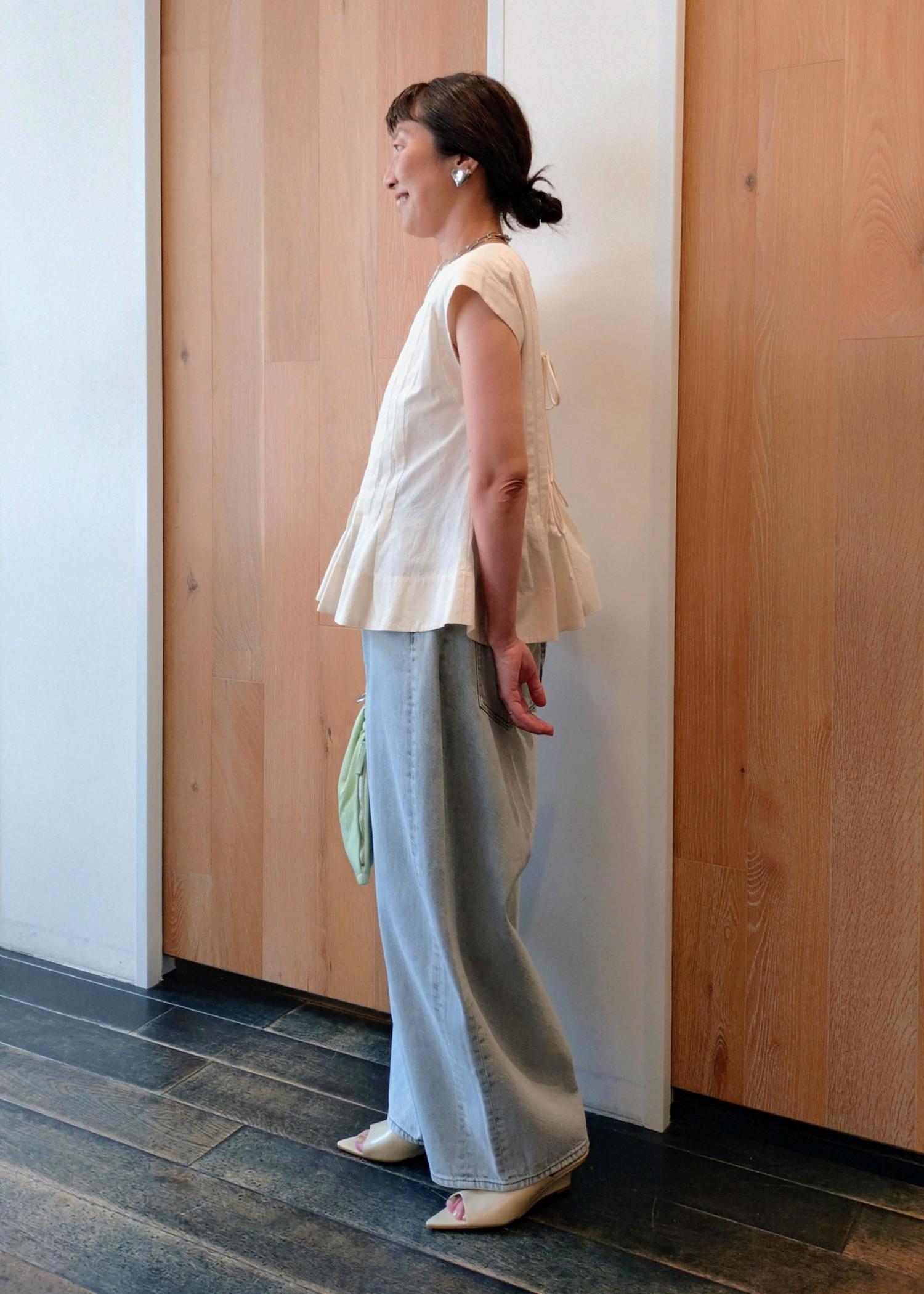 本日は新作のタックフレアジレブラウスのご紹介です。