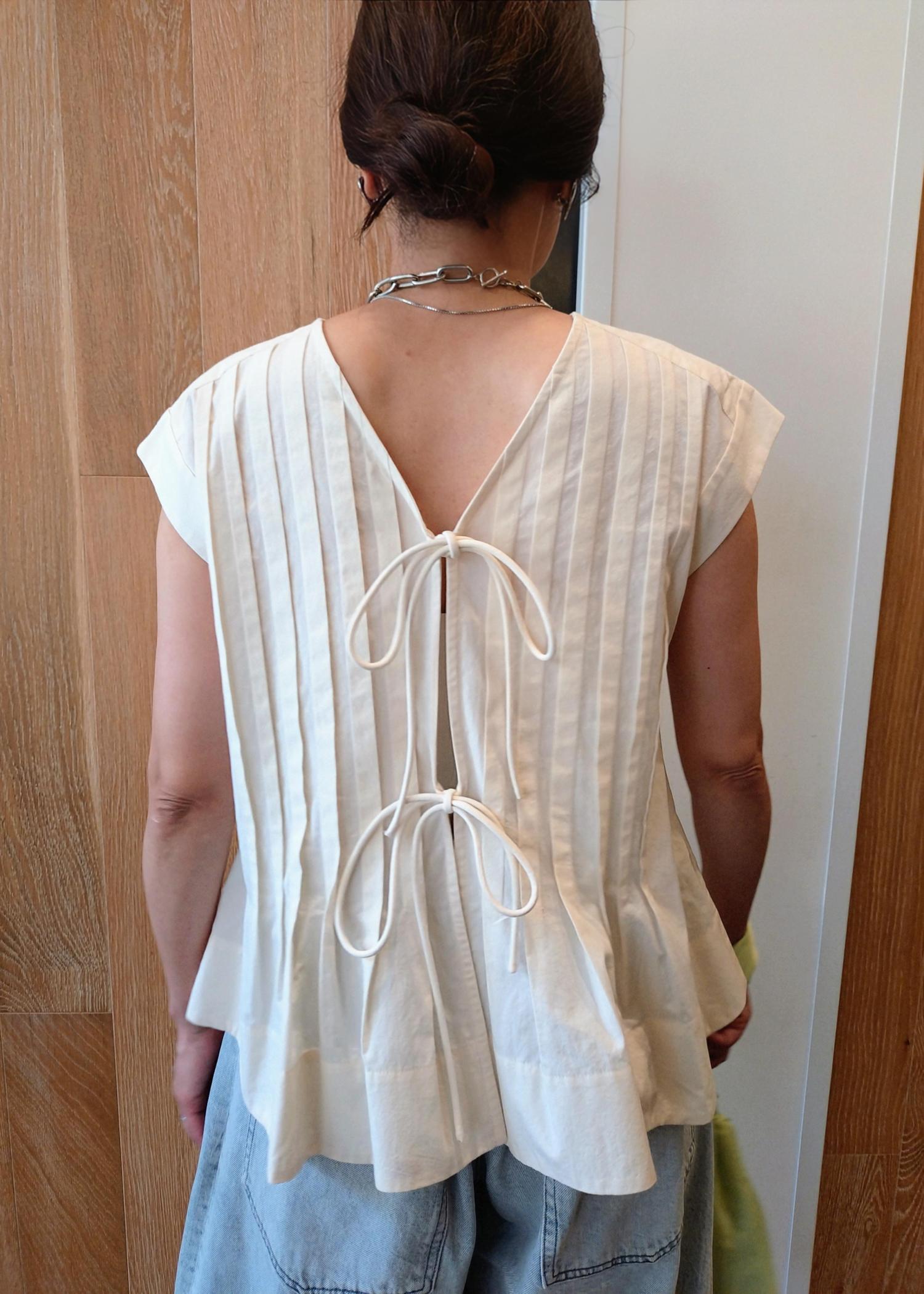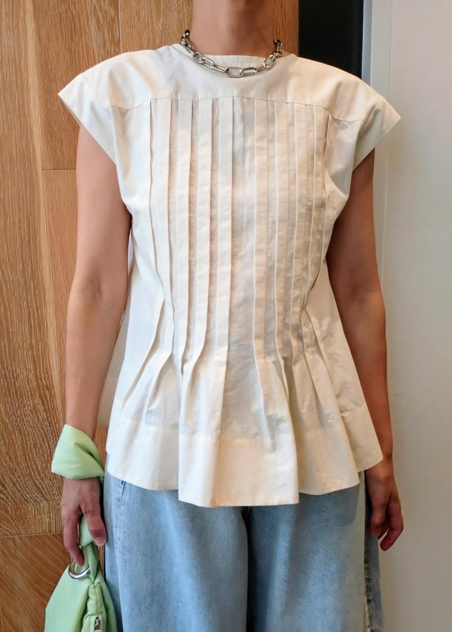 ADAM ET ROPÉ FEMME【サステナブル】タックフレアジレブラウスキナリ / F¥15,950レビューコットン100%素材なので今からすぐ着ていただけます。