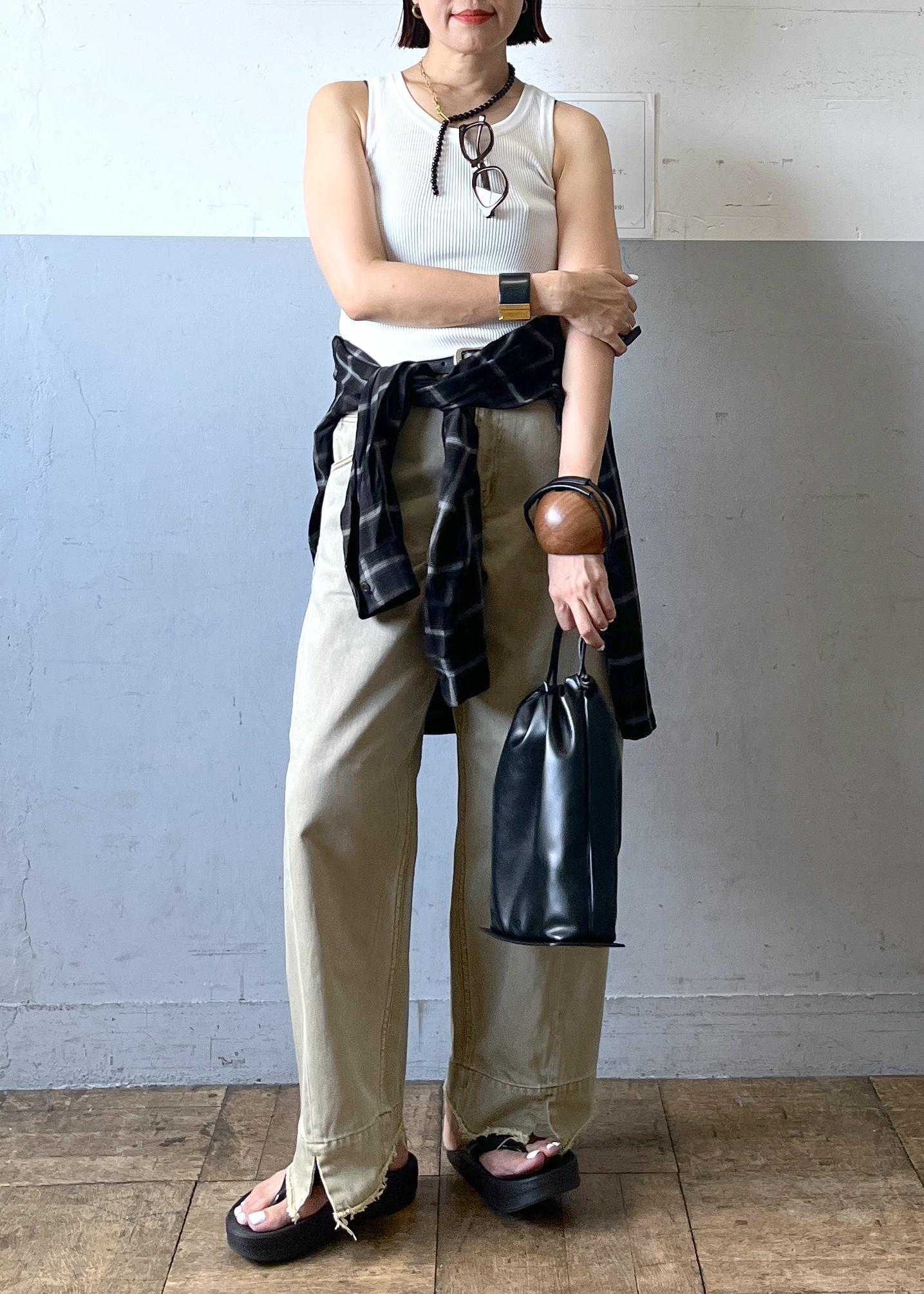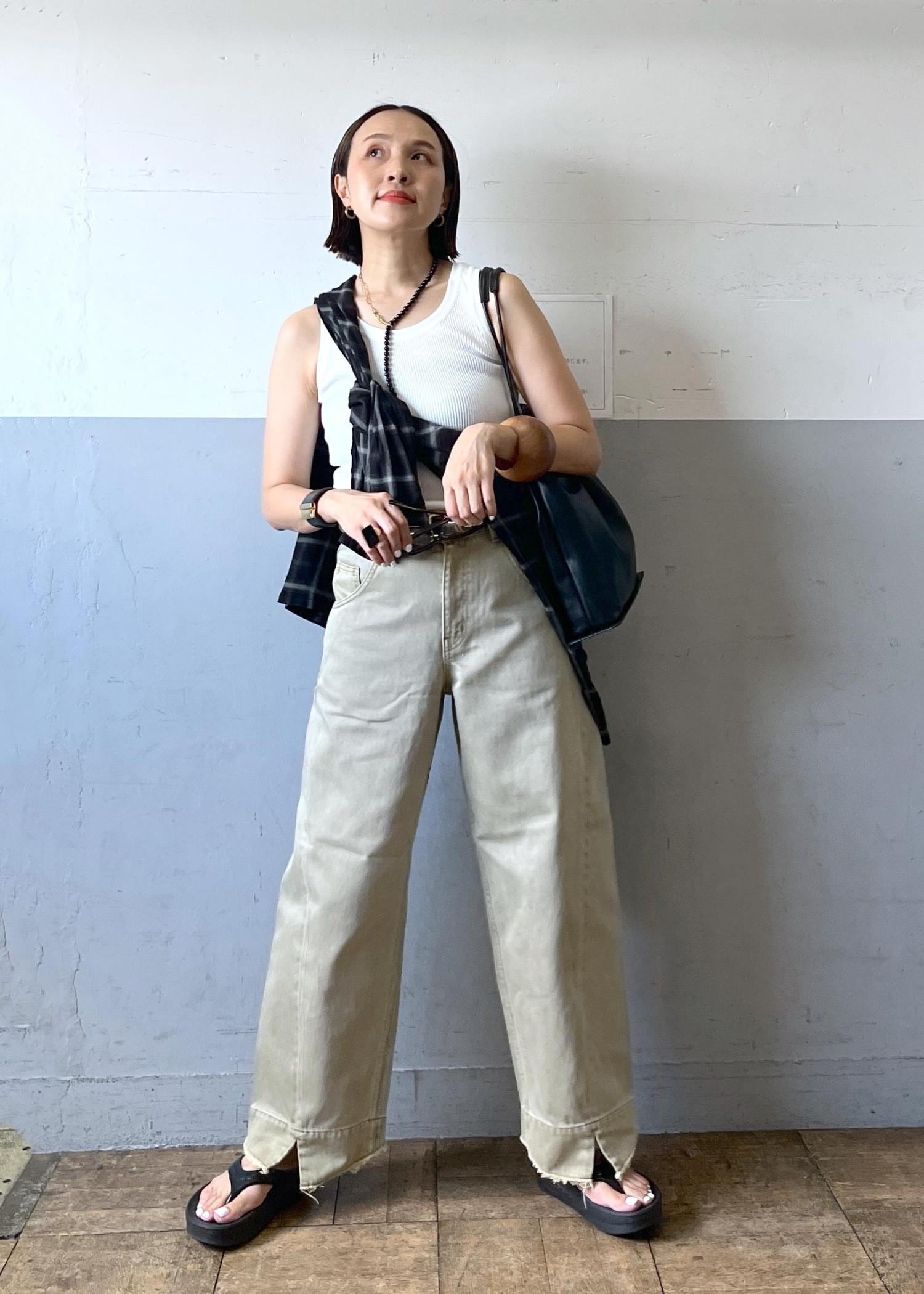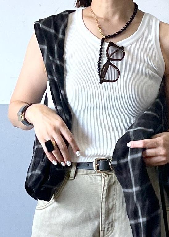 夏のデニムとちょっと違う?タンクトップ合わせもめっちゃ夏!っぽくならないしチェックのシャツをポイントにしたら