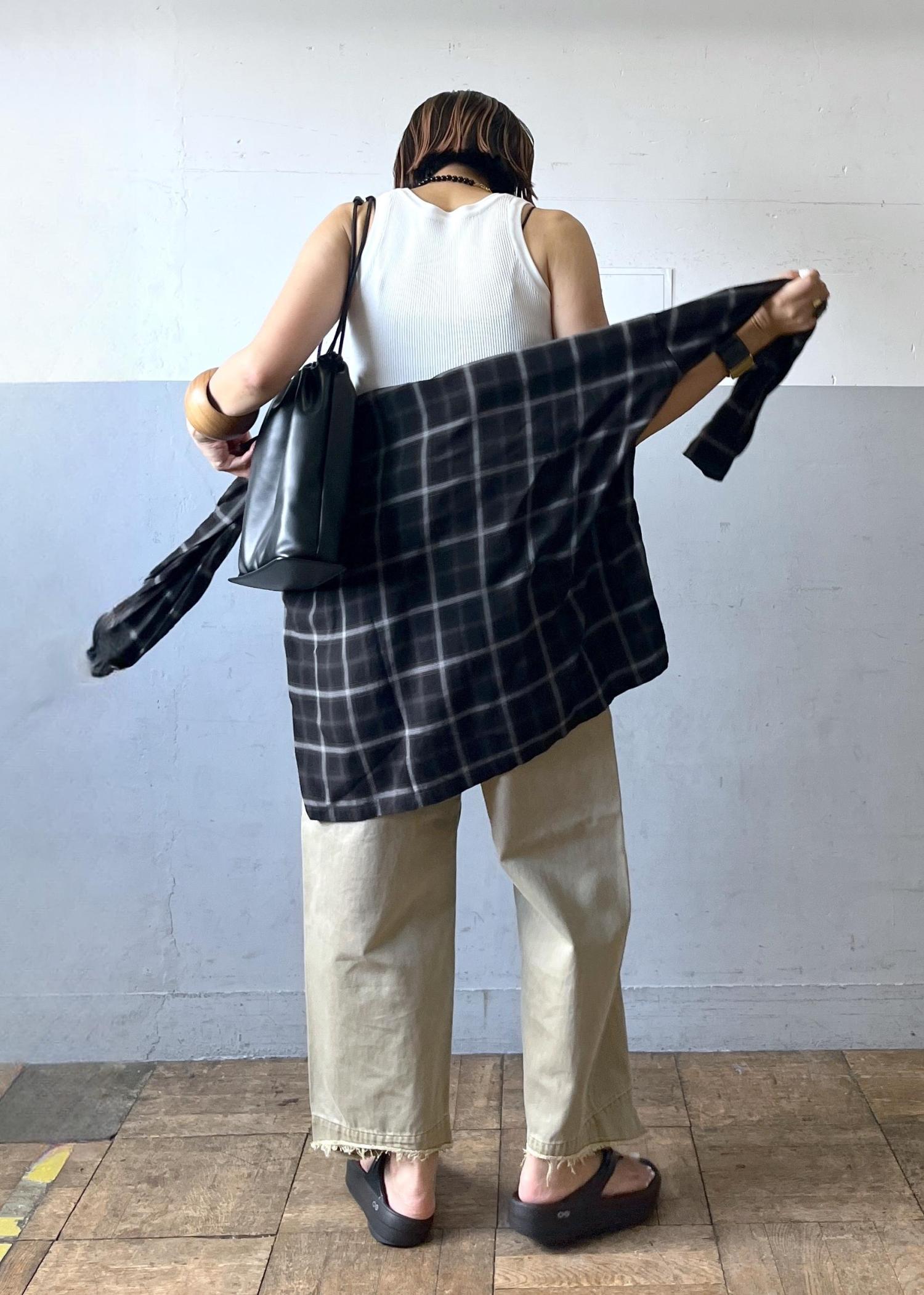 チェック柄がスタイリングのアクセントになるので、着る以外にも巻いたりしても◎ くたっとした素材感が巻きやすいです^ ^ -