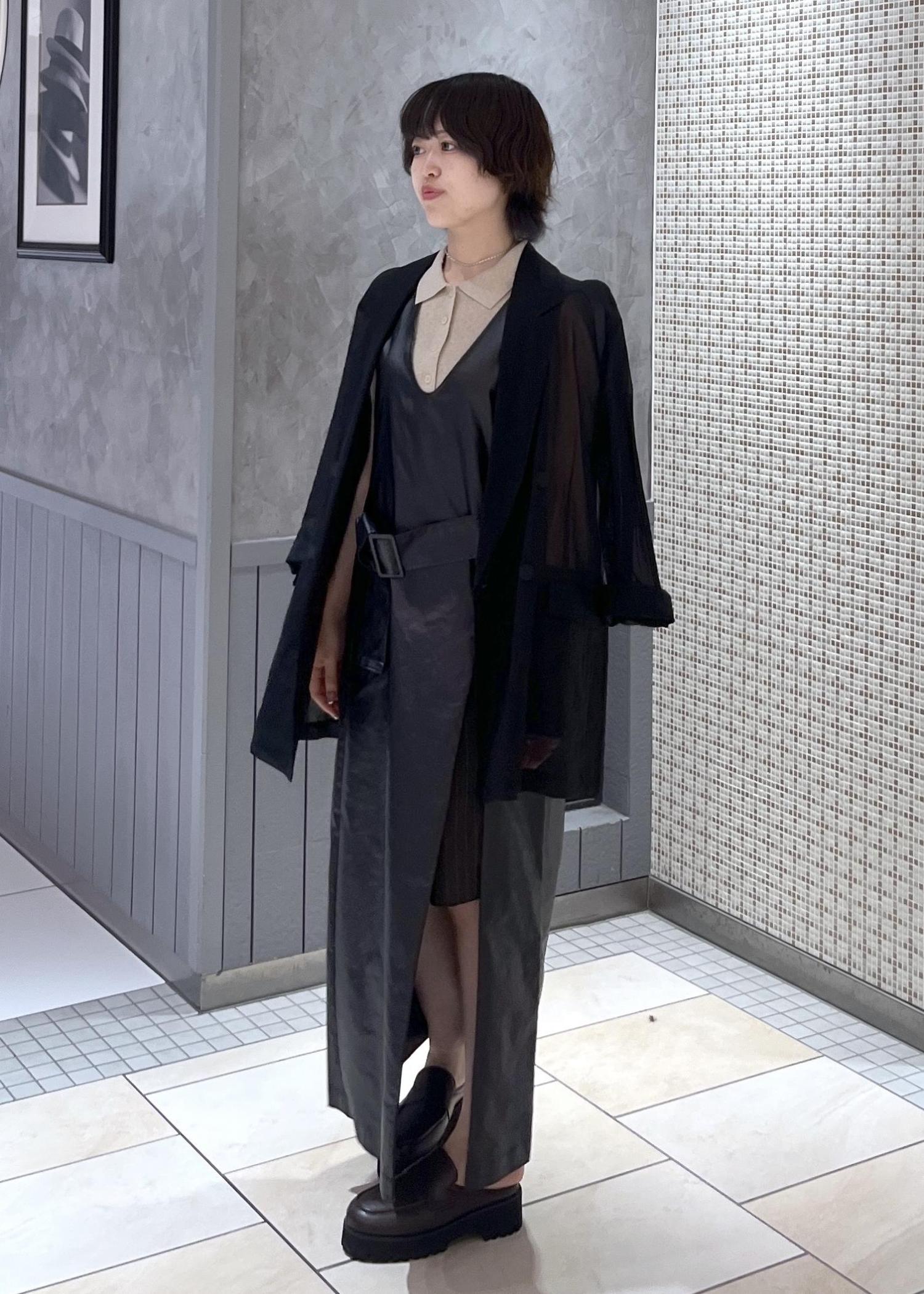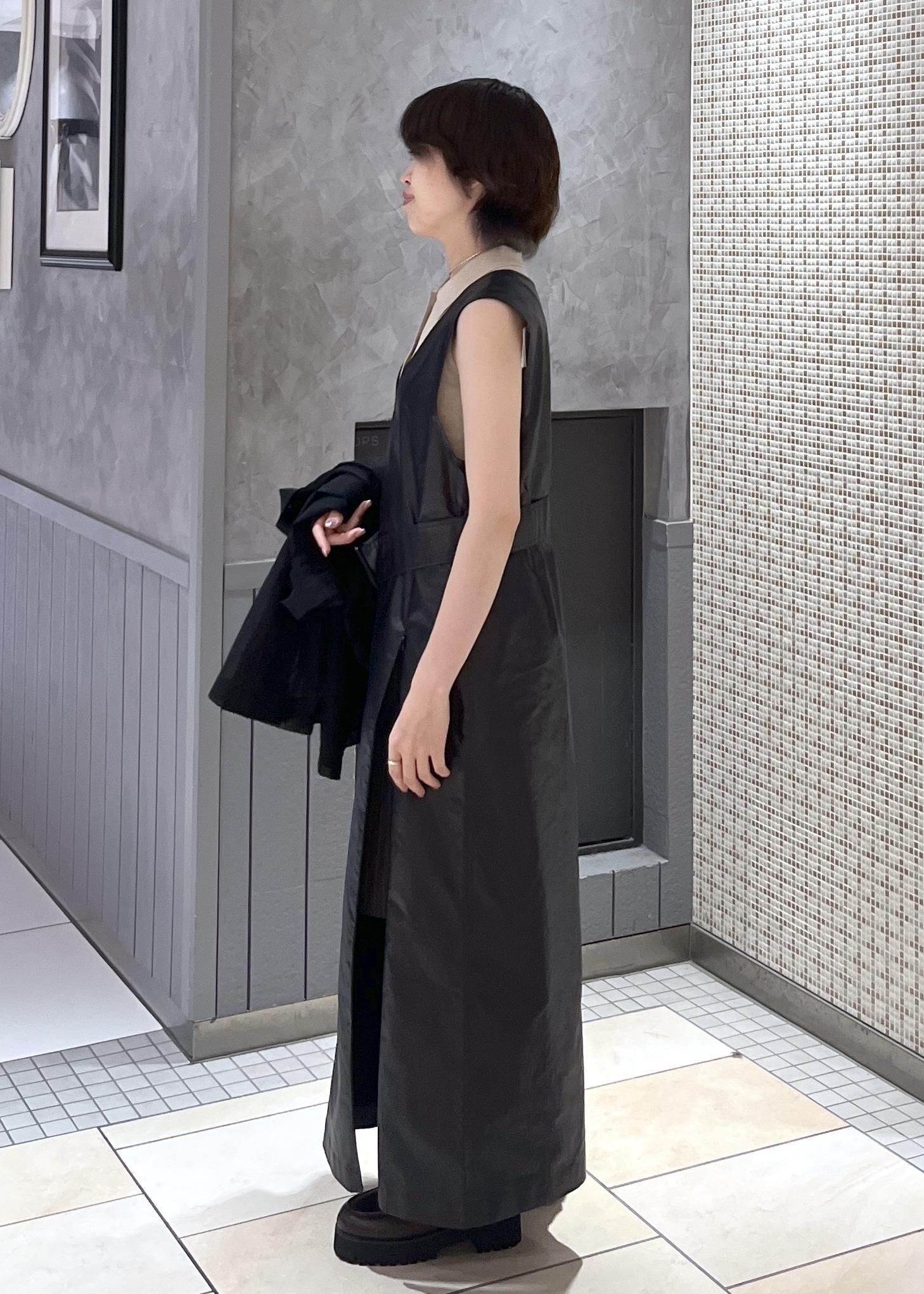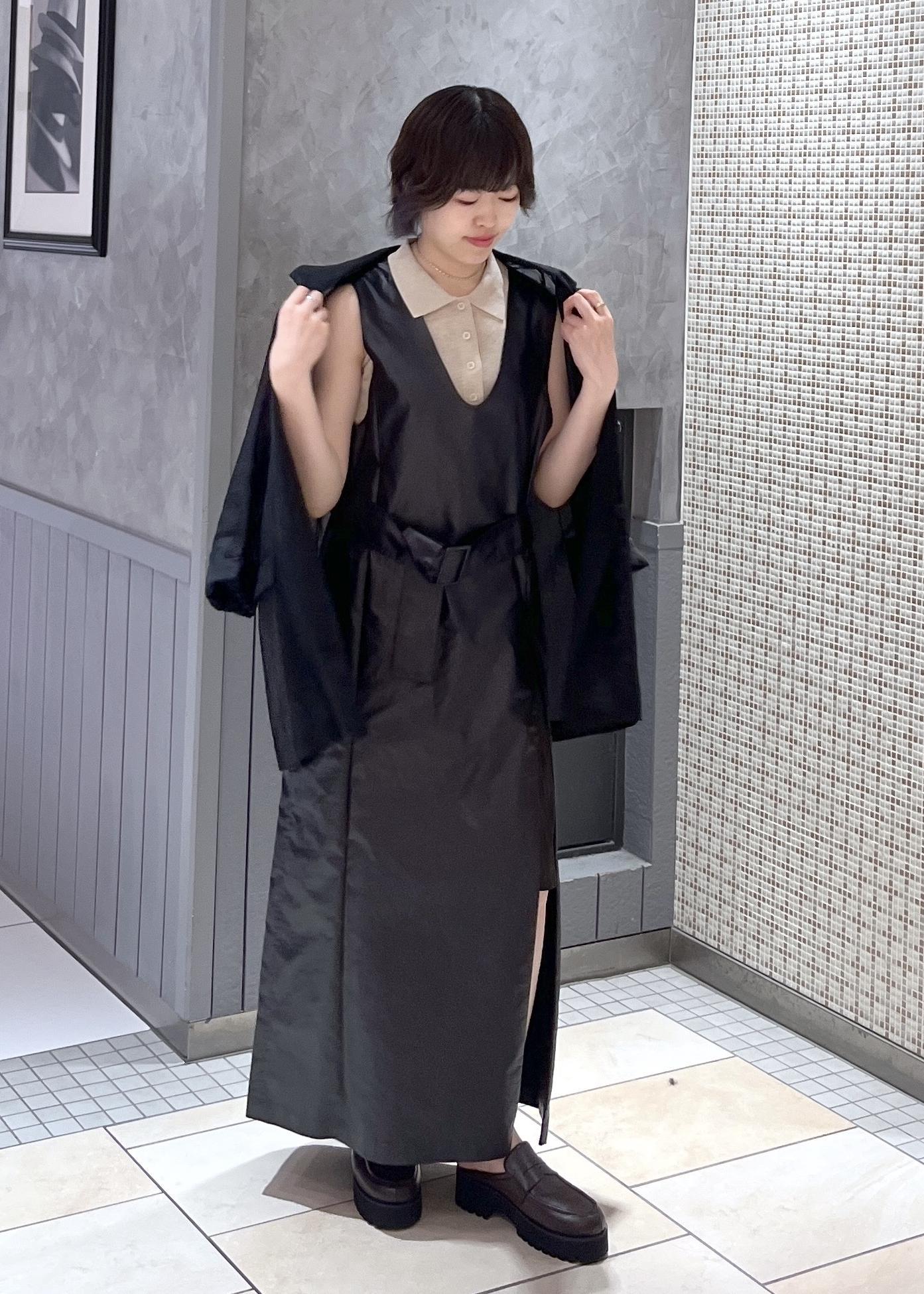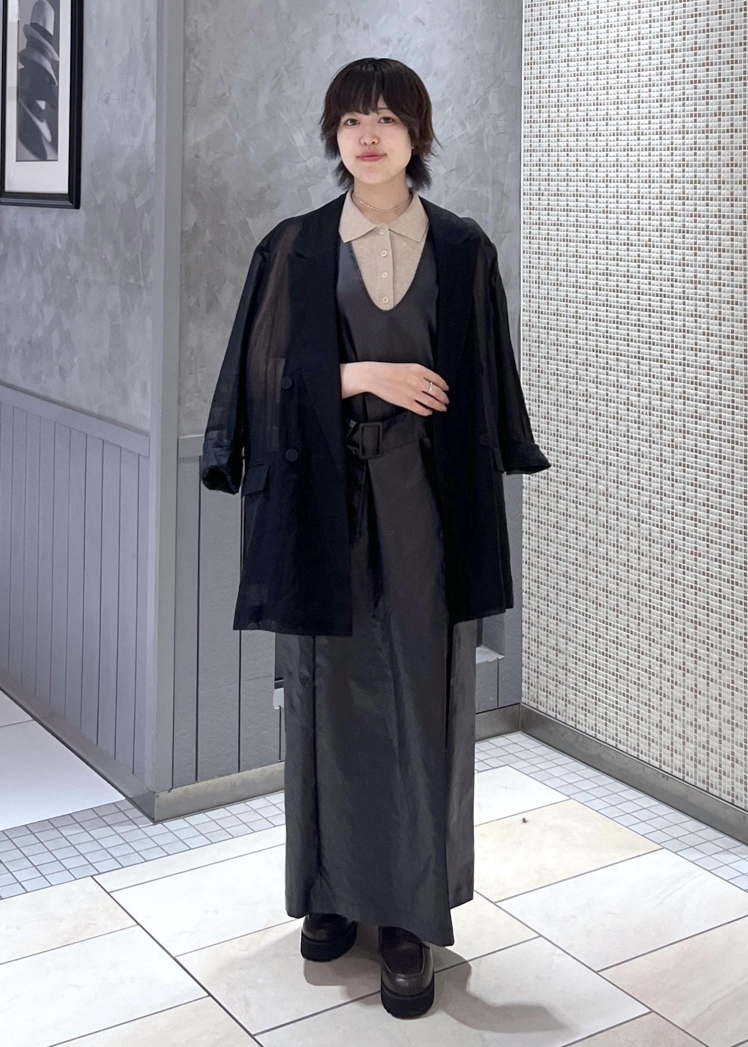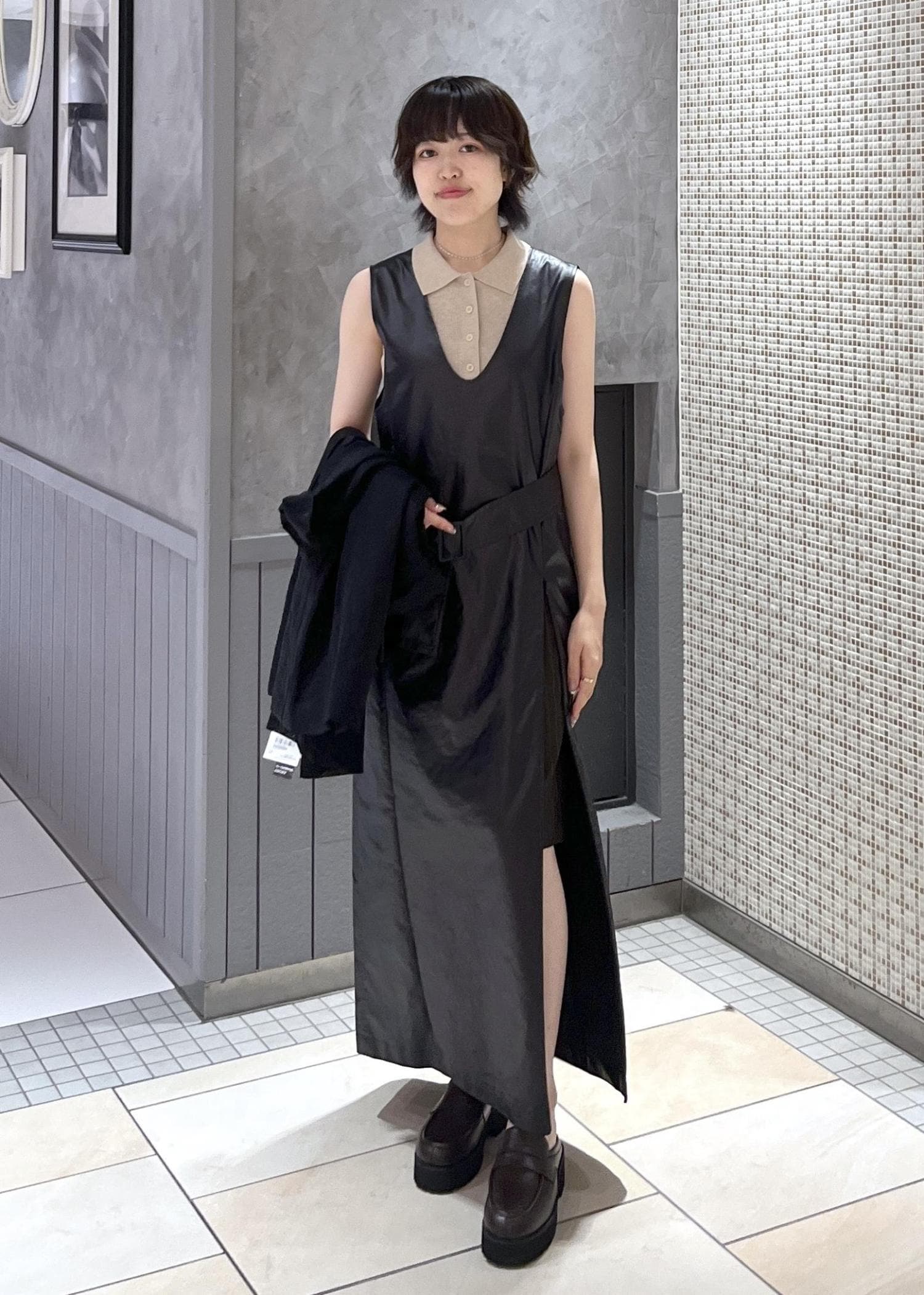 今回はスリットジャンパースカートをつかったレイヤードスタイルに挑戦しました。腰あたりまでスリットを開けることができます◎ そのまま着たり、デニムを合わせたり、今回のようにハーフパンツを合わせたり、、1枚で印象を変えられるのでおすすめです!