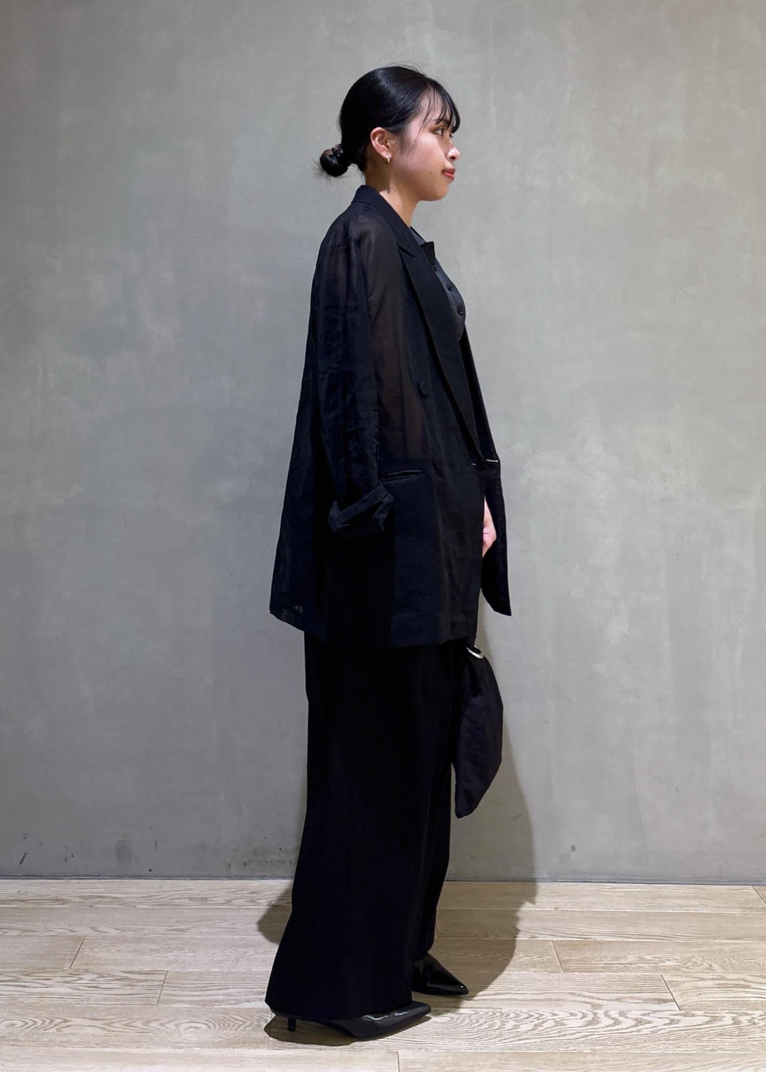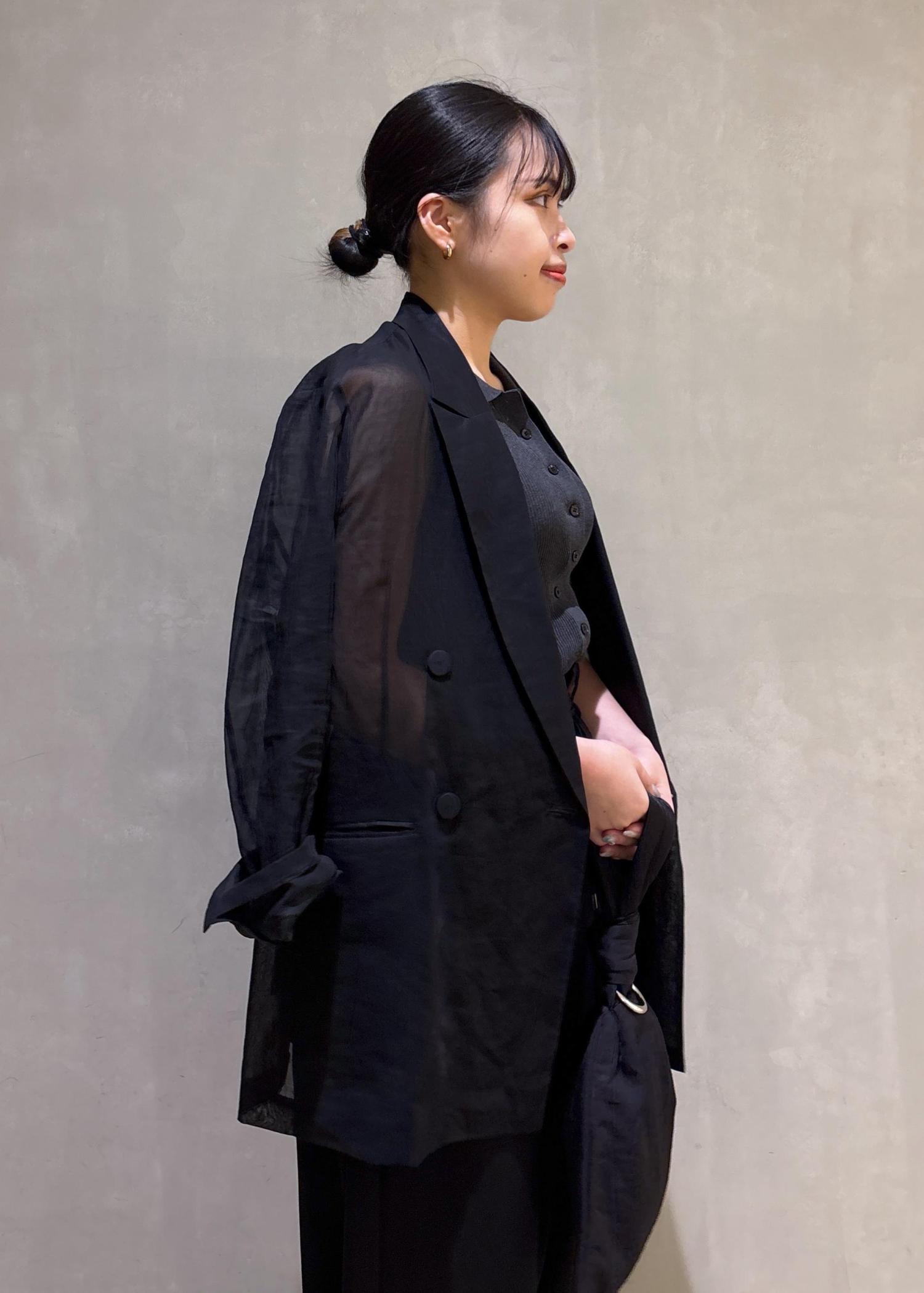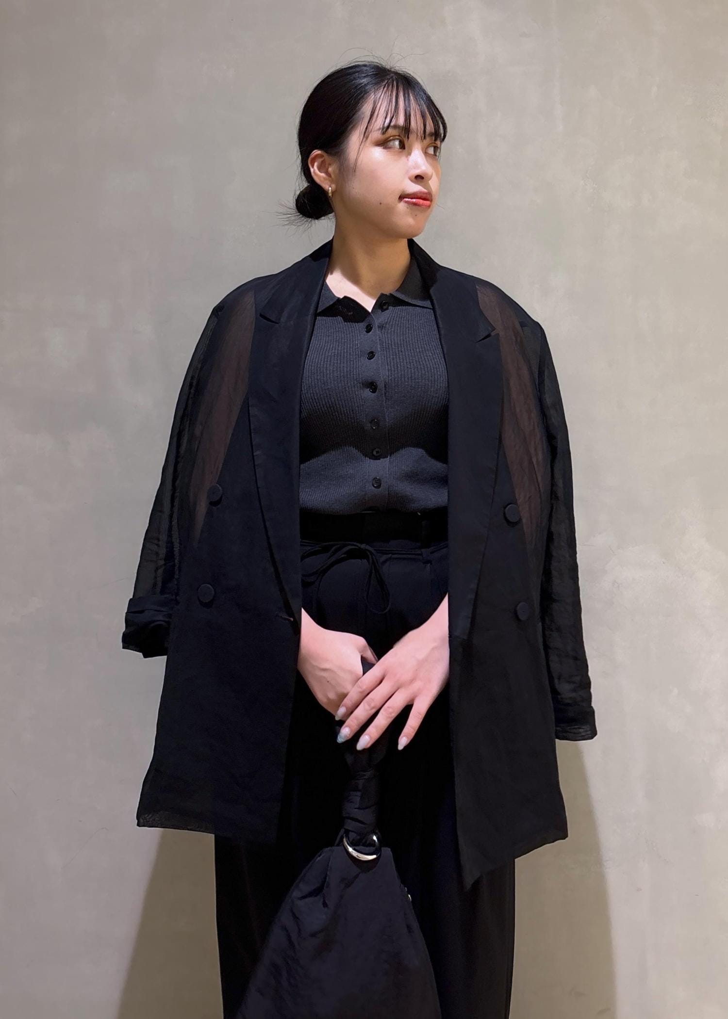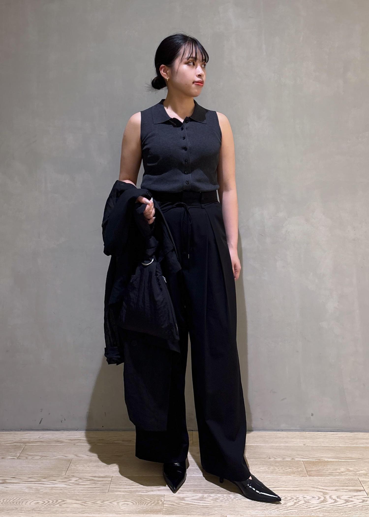 私は腕周りが気になるのでジャケットを羽織り全体的にモノトーンにしてみました。