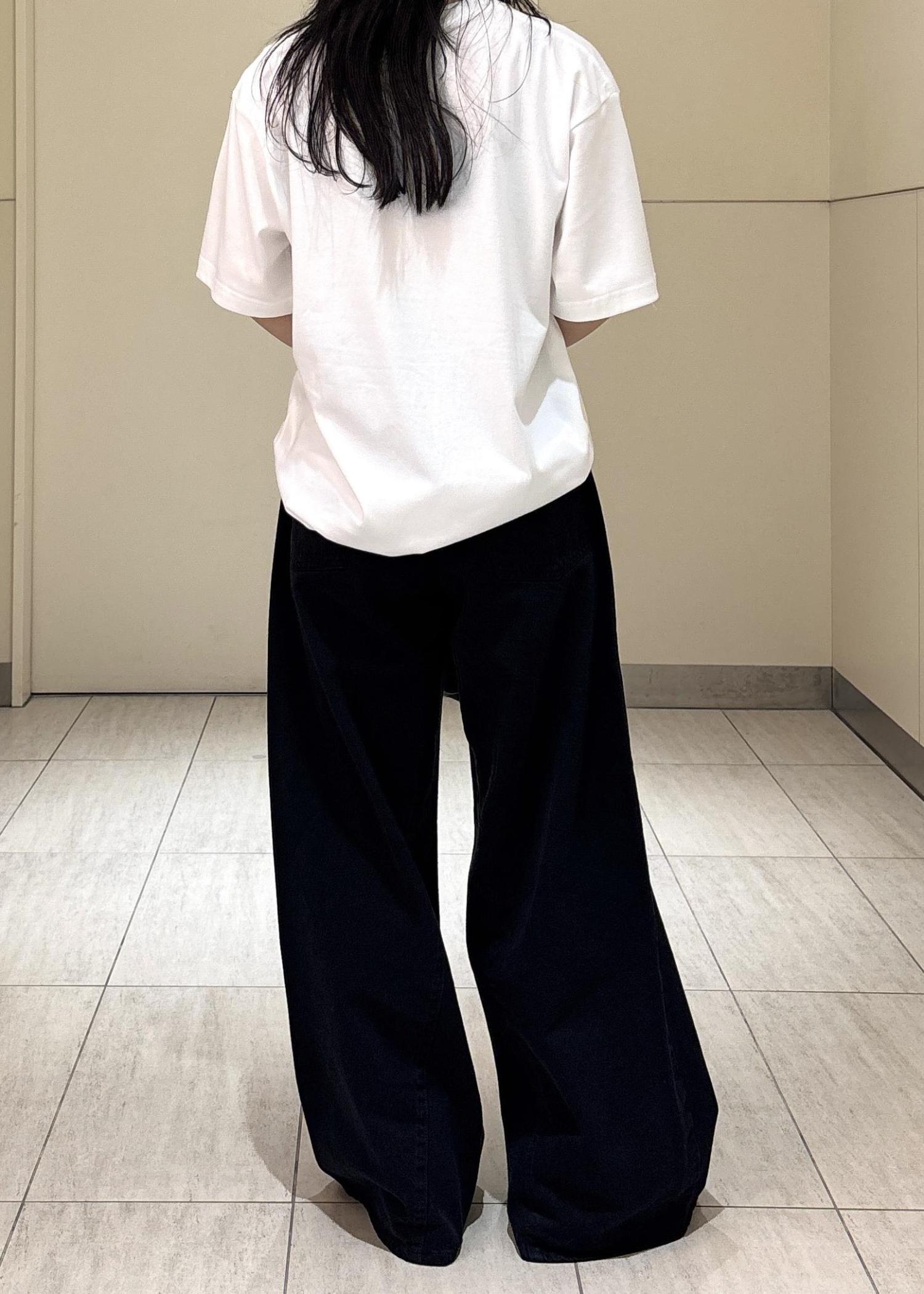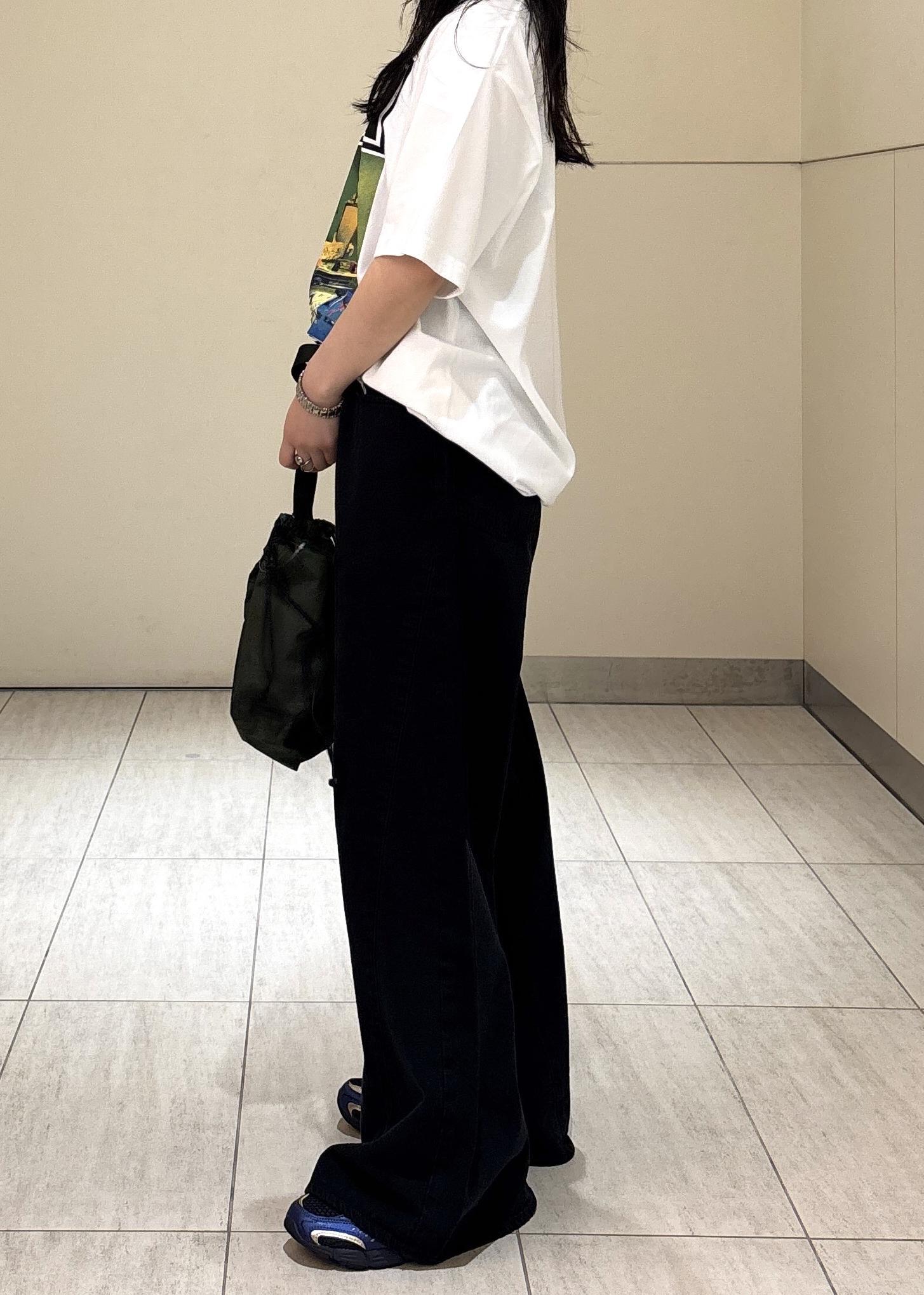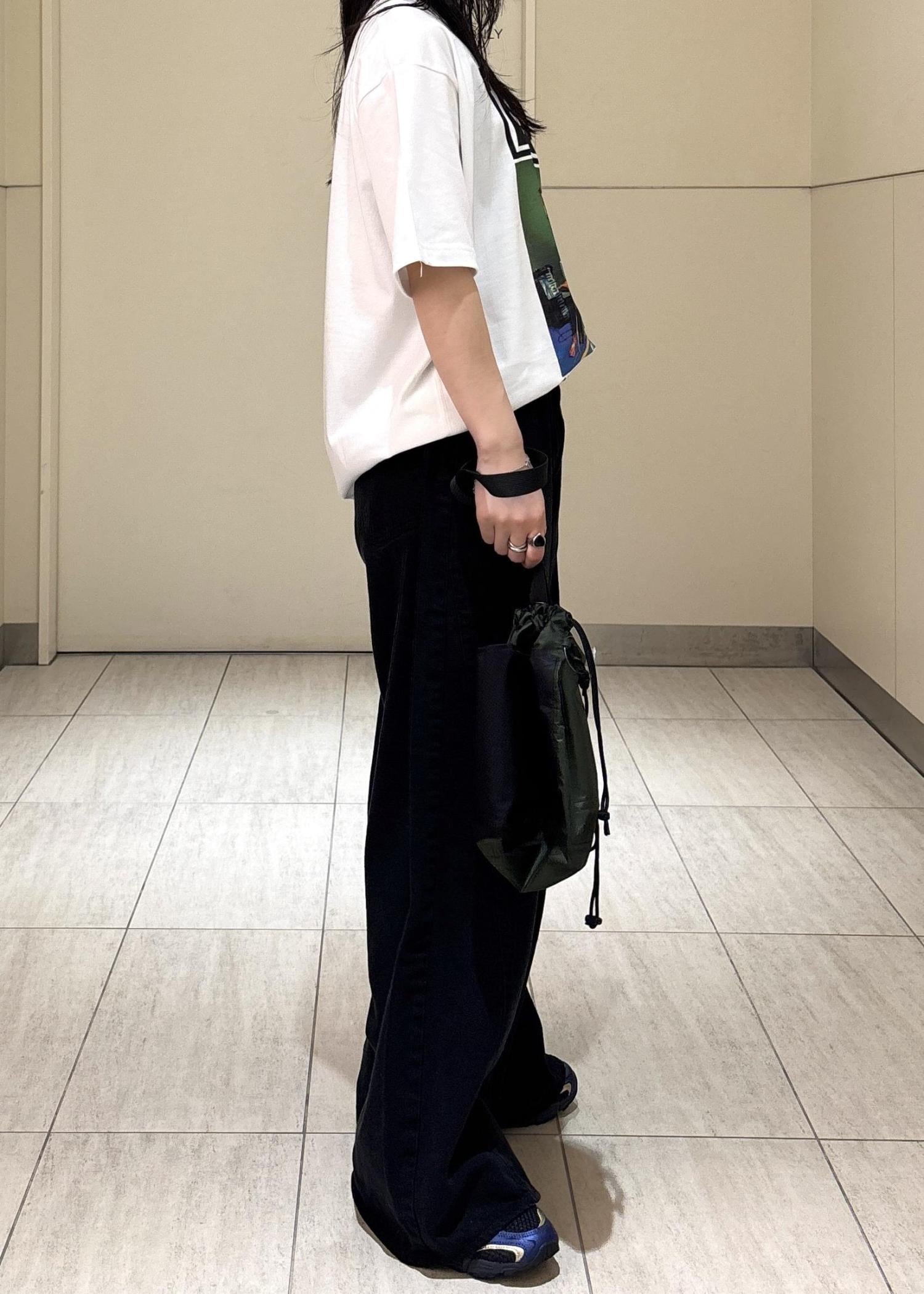 上下ともにオーバーシルエットですが、遊び心のあるデザインかつ白Tなので重たくなりすぎないです。
