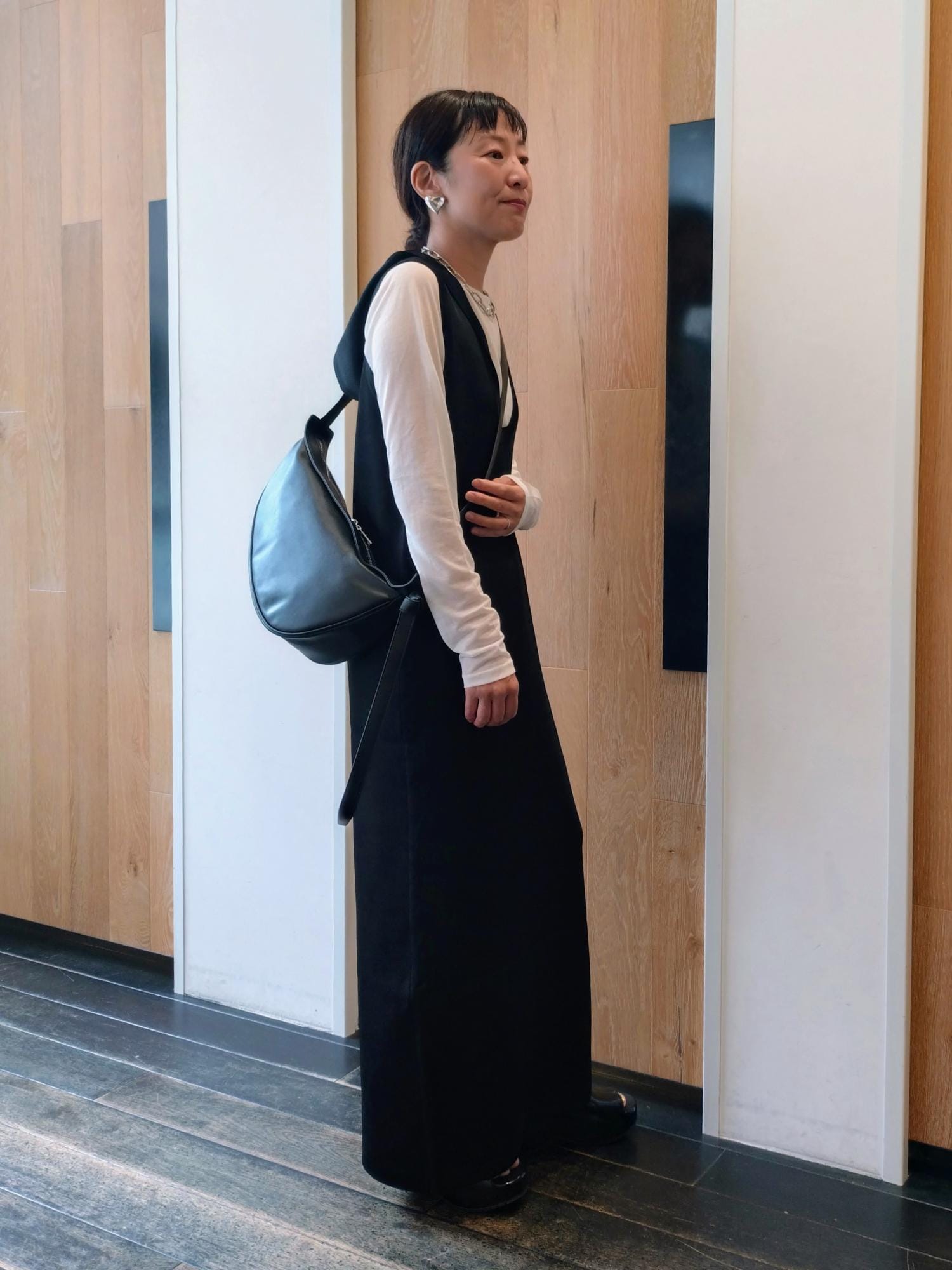 斜め掛けもでき、マットな素材感がカジュアルになりすぎず使えます。