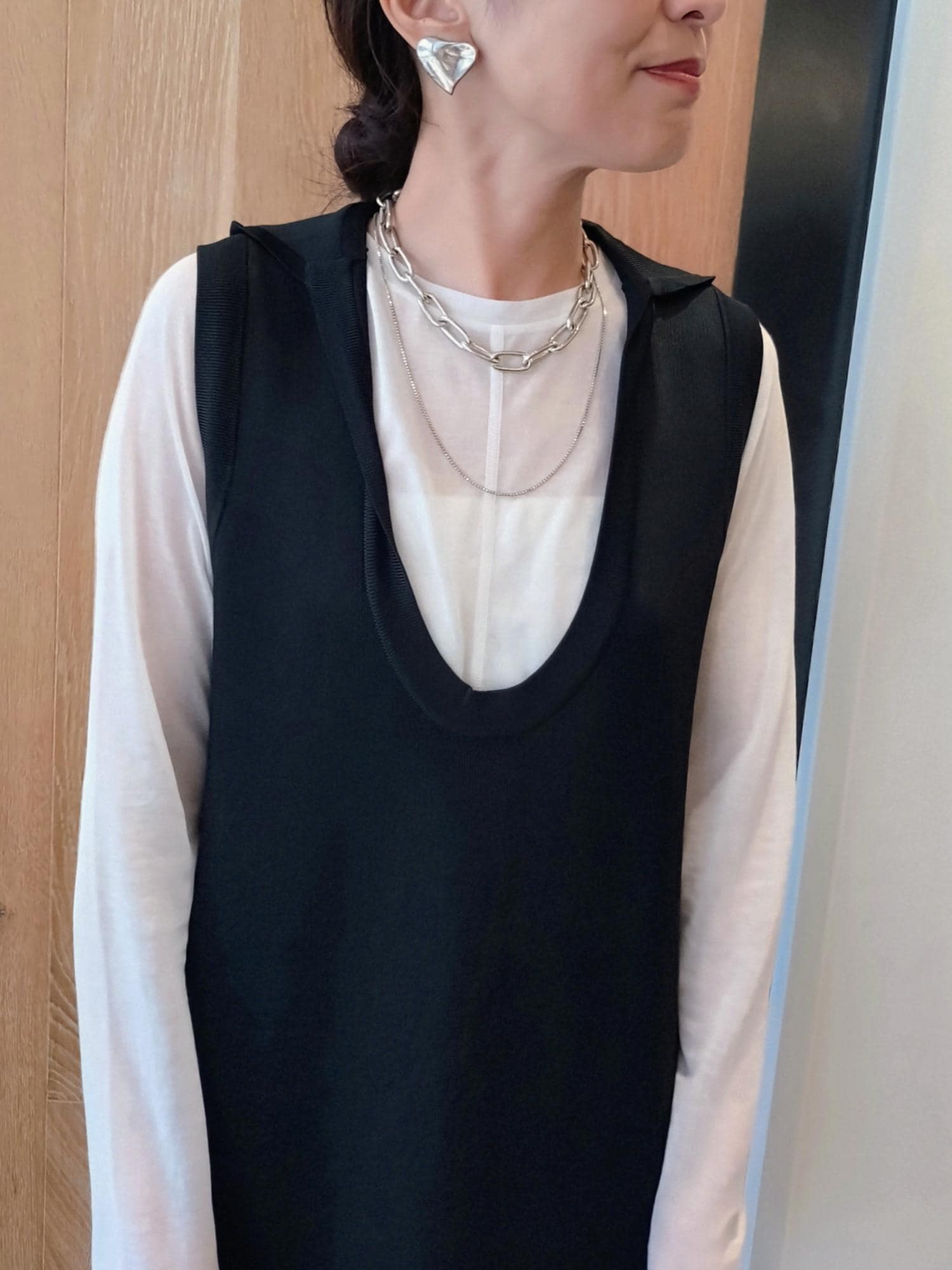 深めに開いたUネックのデザインは女性らしく上品に着ていただけます。