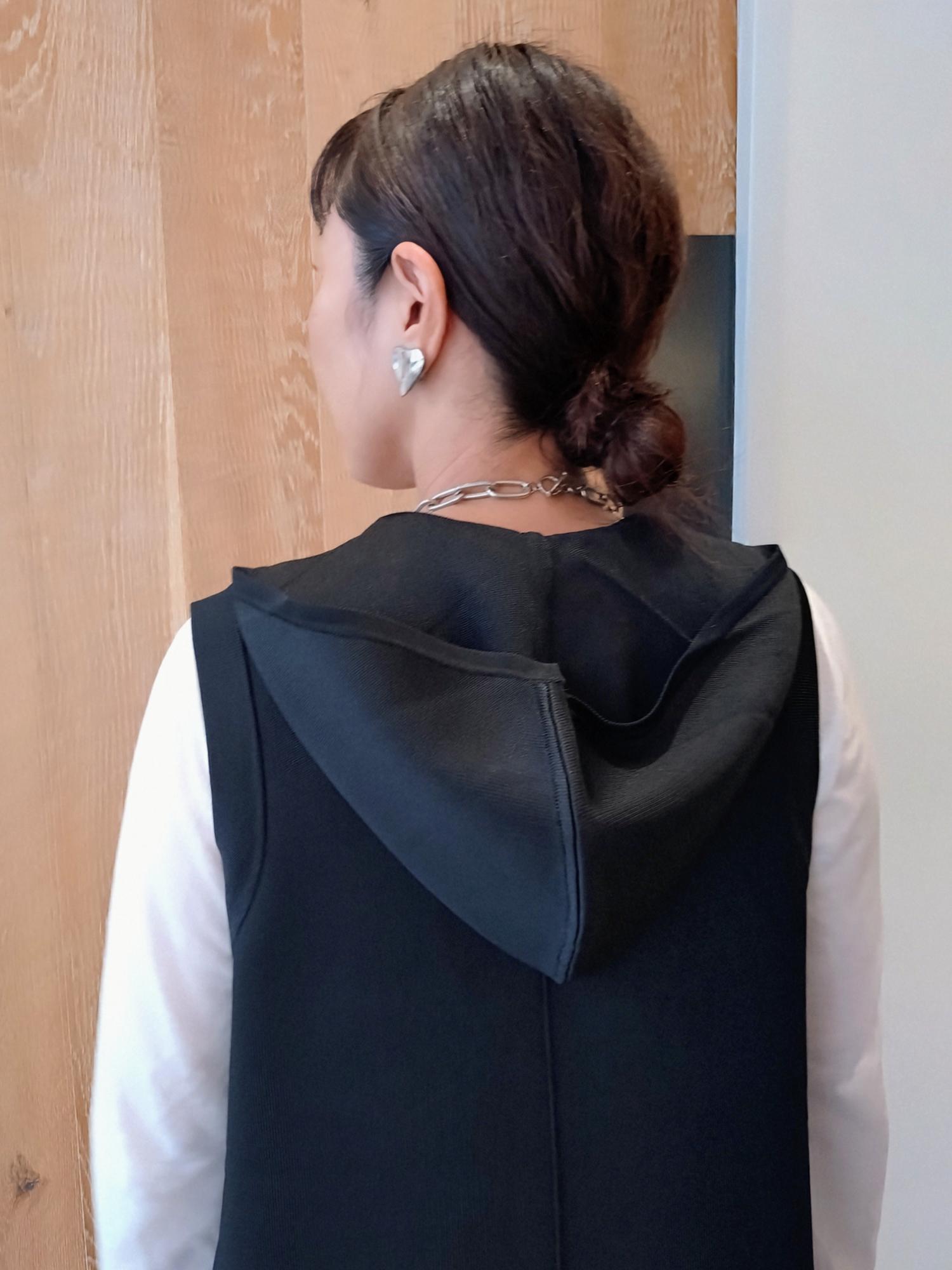 フードのデザインでリラックス感がありながら、エレガントな雰囲気を持ち合わせたフーディニットワンピース。