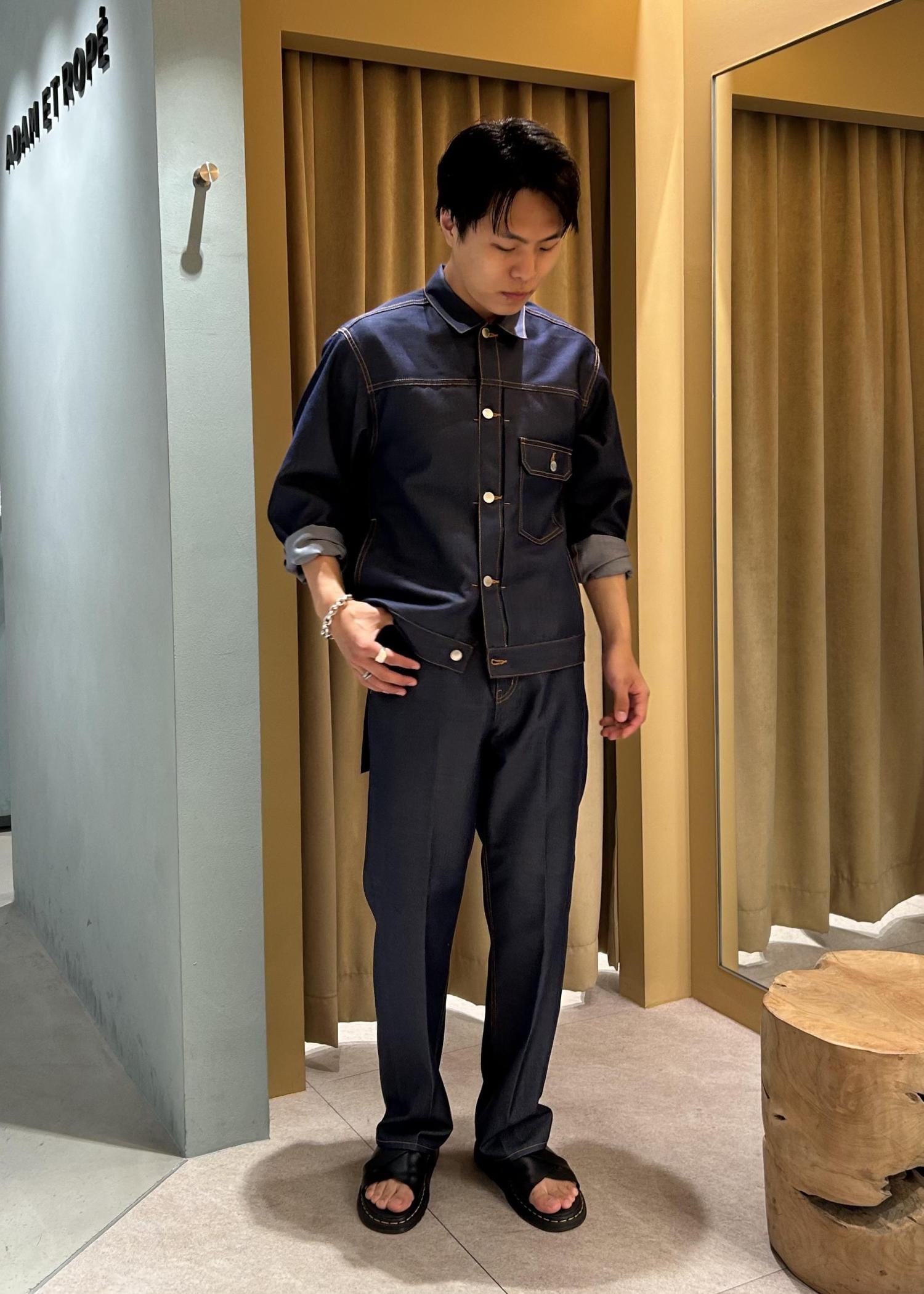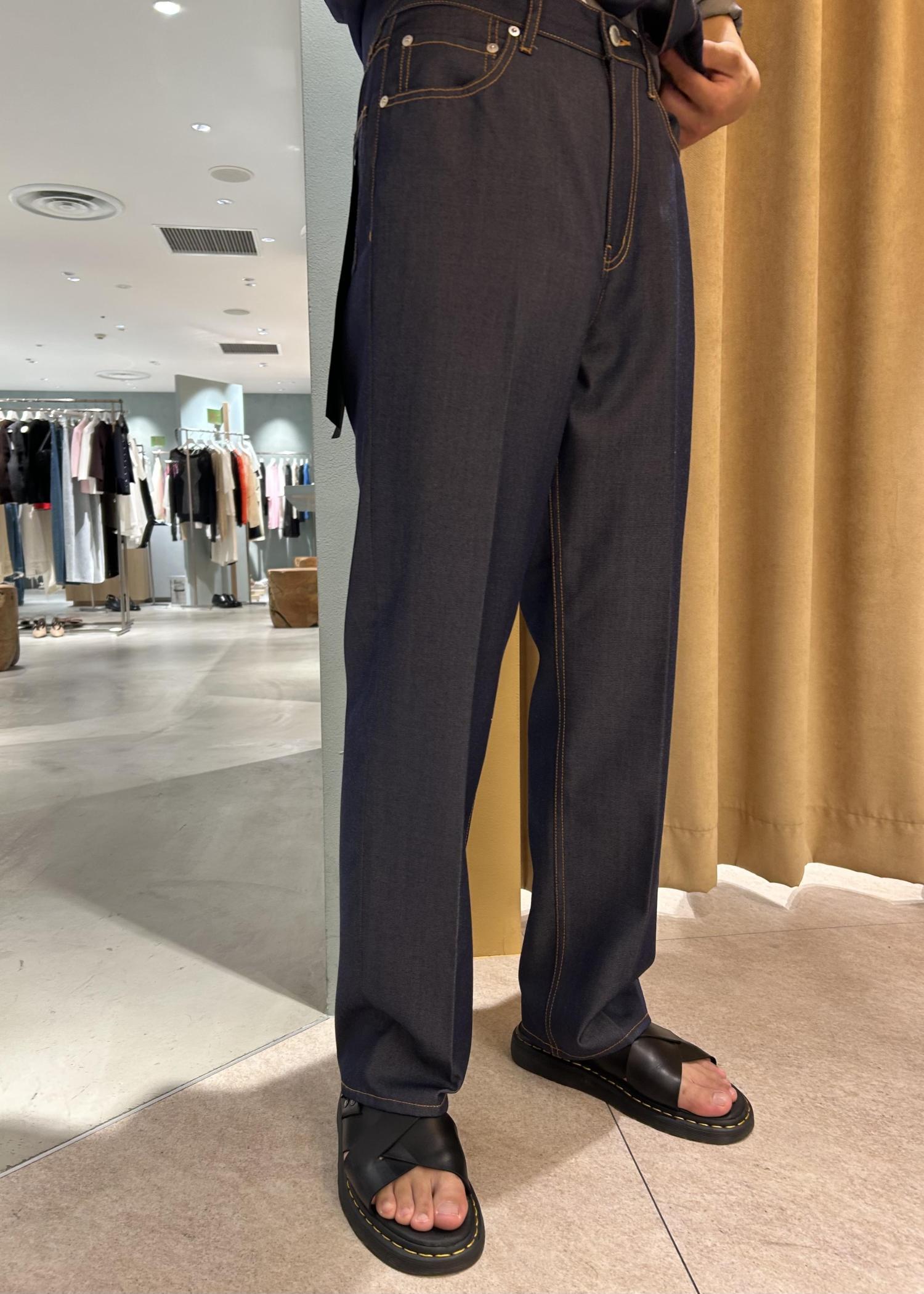 デニムの雰囲気ながらも、素材やセンタープレス、ドレープ感でキレイめで着こなせるのが特徴です。