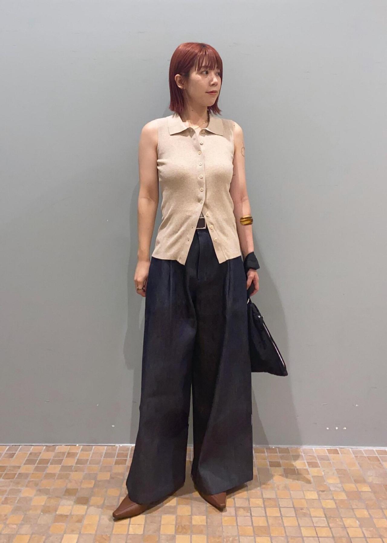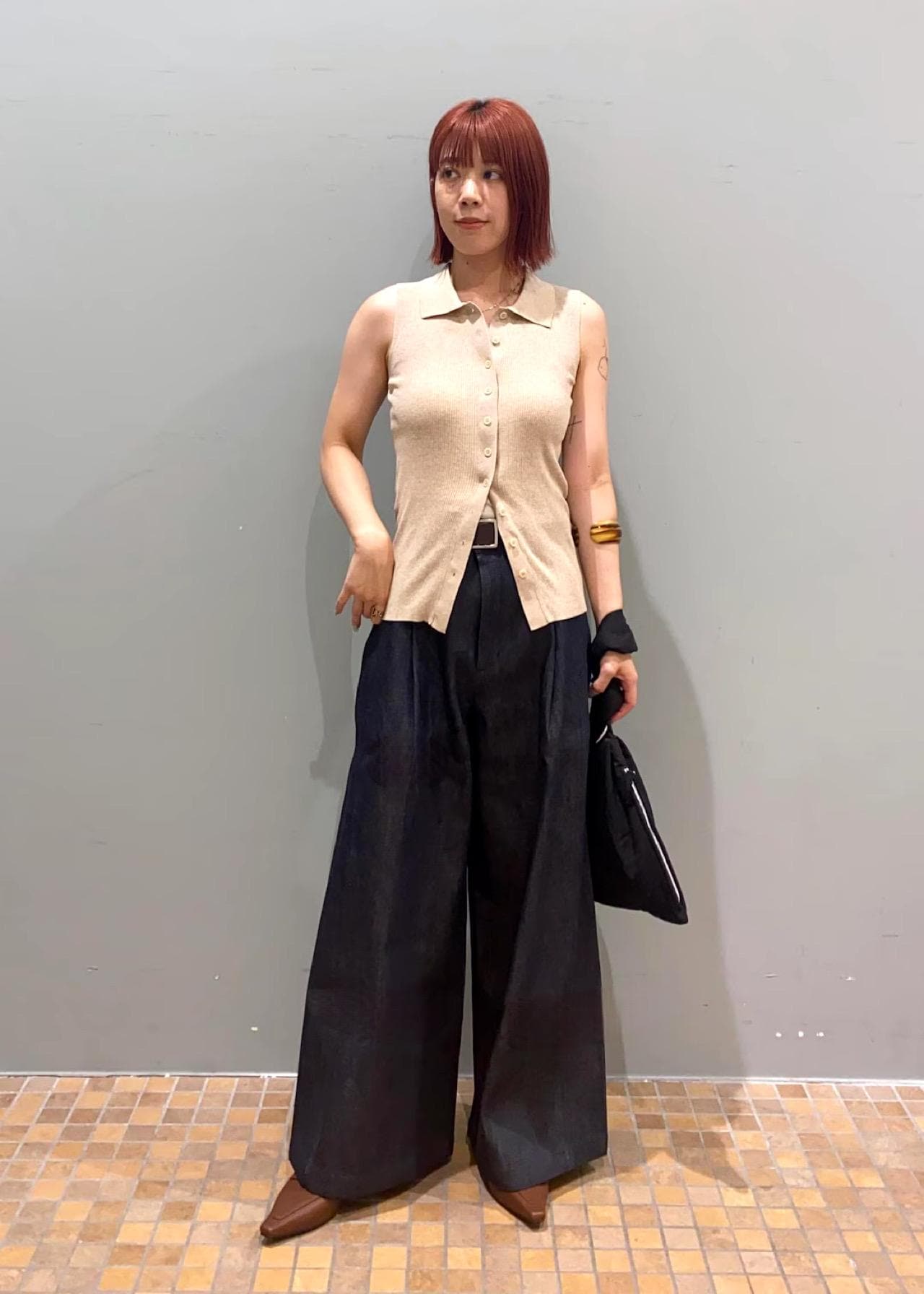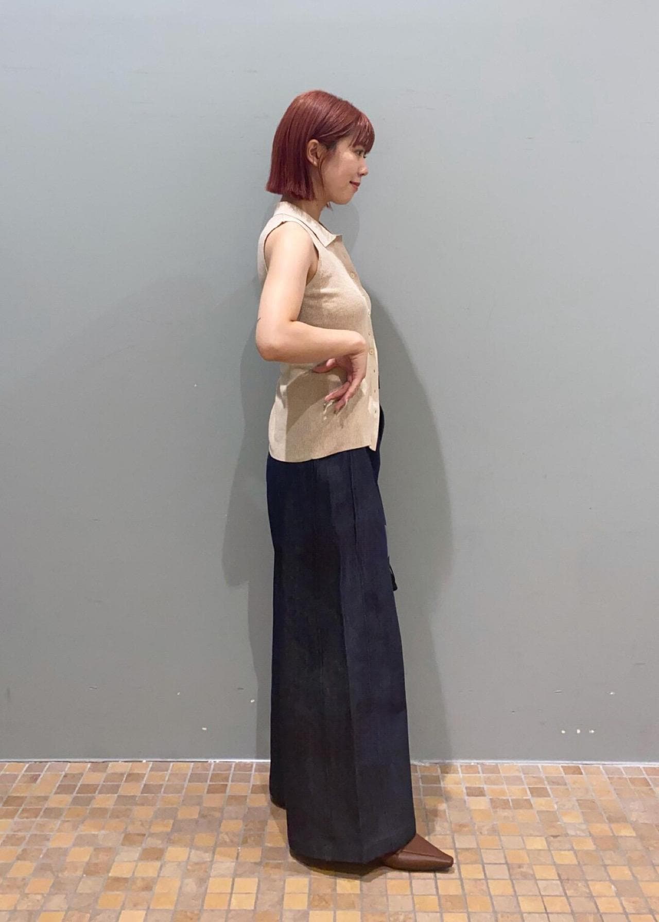 足先が少ーしだけ覗くくらいの絶妙なワイドシルエットで、腰回りも前面にはタック、背面はシンプルなので、ヒップもキュッと上がって見えます...!