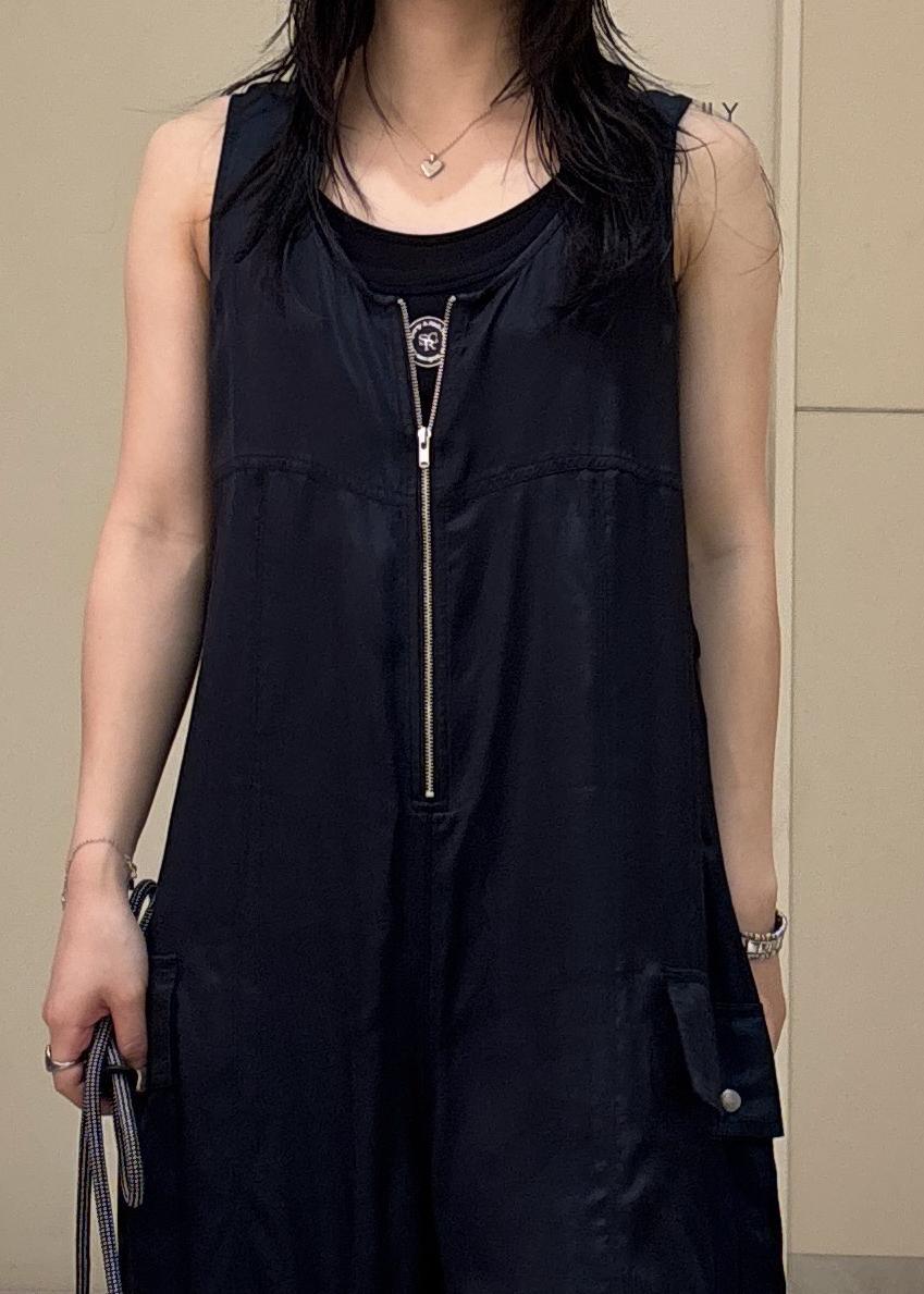 ノースリーブでの肌見せと、ミニサイズのホワイトバッグで抜け感を出したのでブラックコーデですが重たくなりすぎないです◎