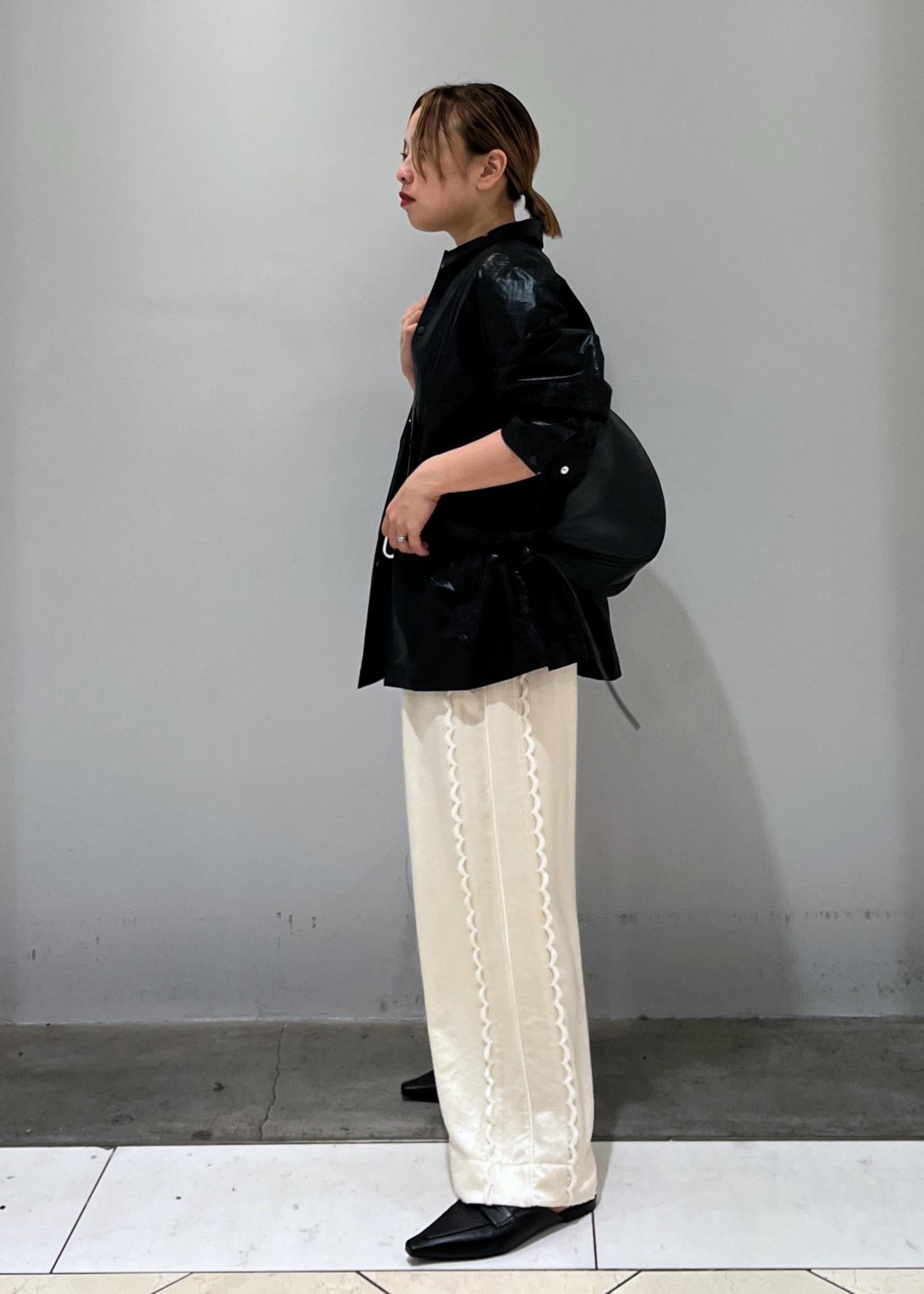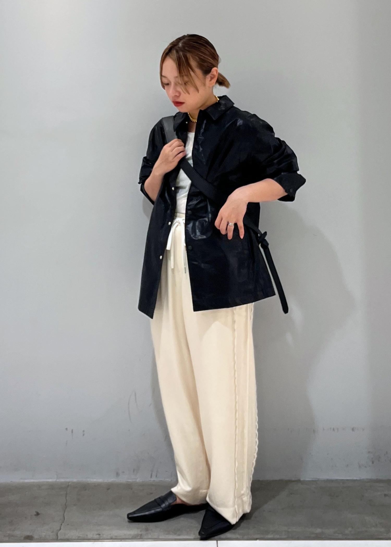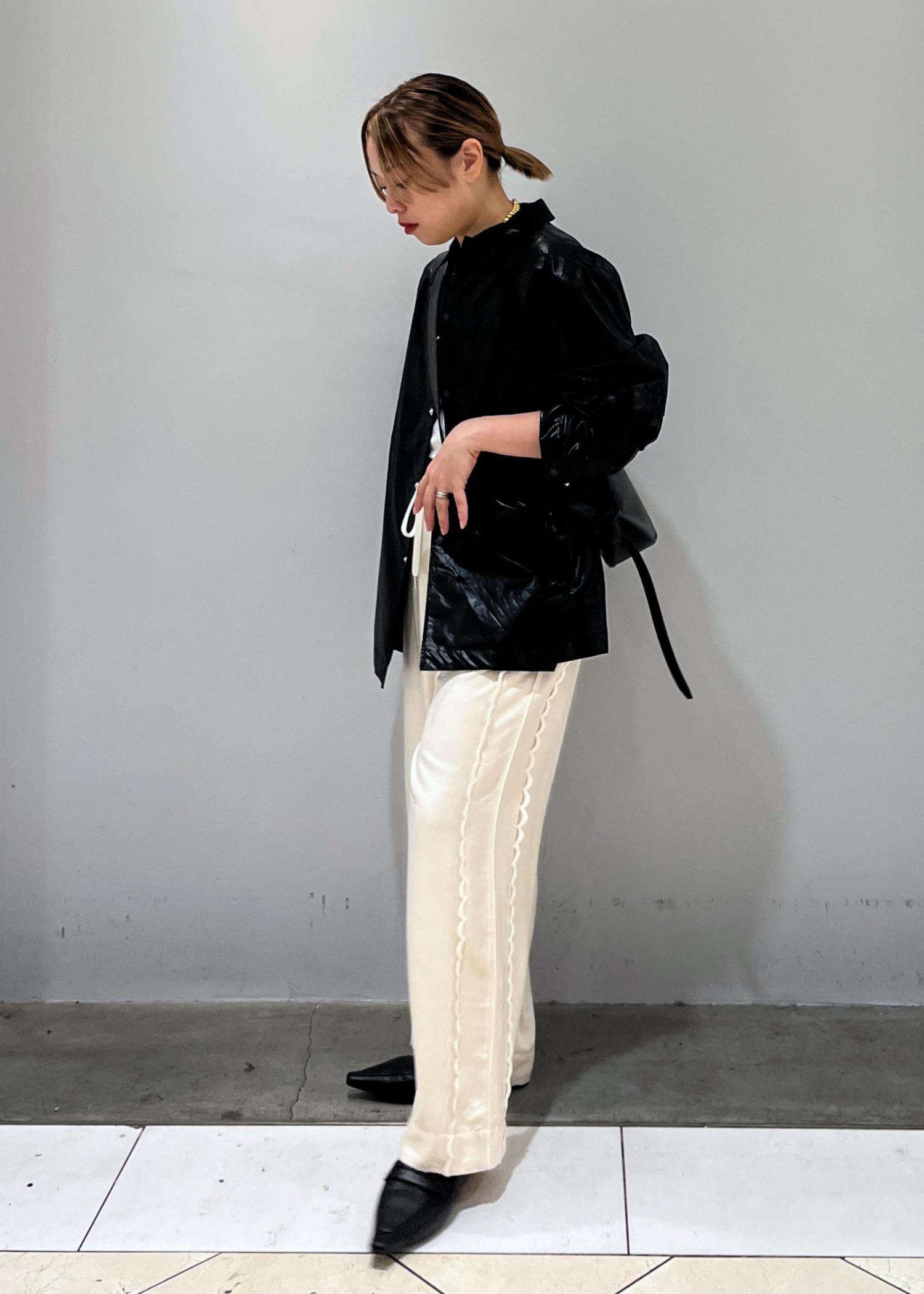 ADAM ET ROPÉ FEMMEサイドレーストラックパンツオフホワイト / 38¥22,000レビュー光沢感のあるリラックスパンツで、サイドのレースが可愛いアイテムです。少しレザーライクにも感じる不思議な素材です。
