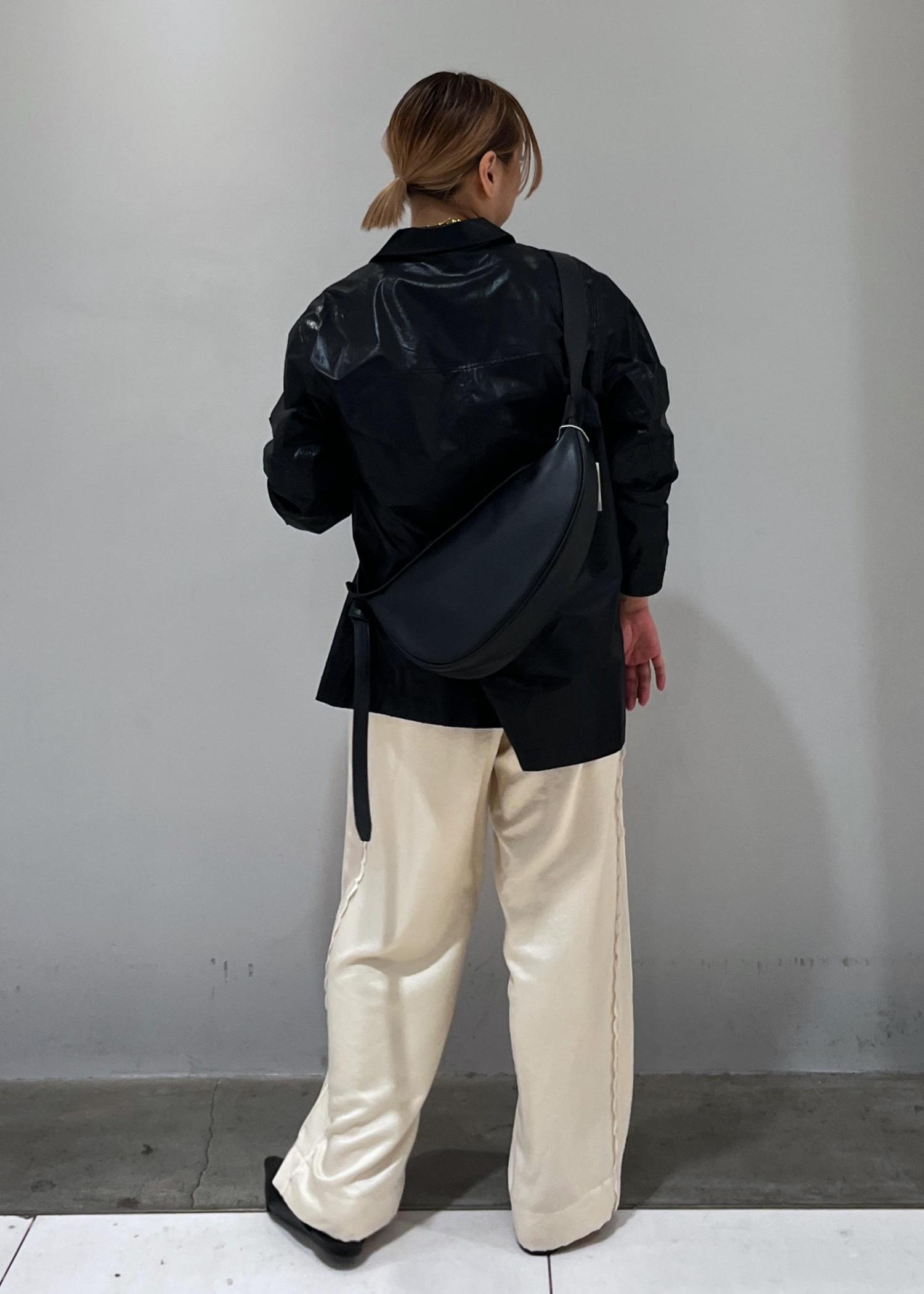 レザーとコーデュロイの異素材合わせに、とろんとしたパンツが我ながらぐっとくる組み合わせです♡
