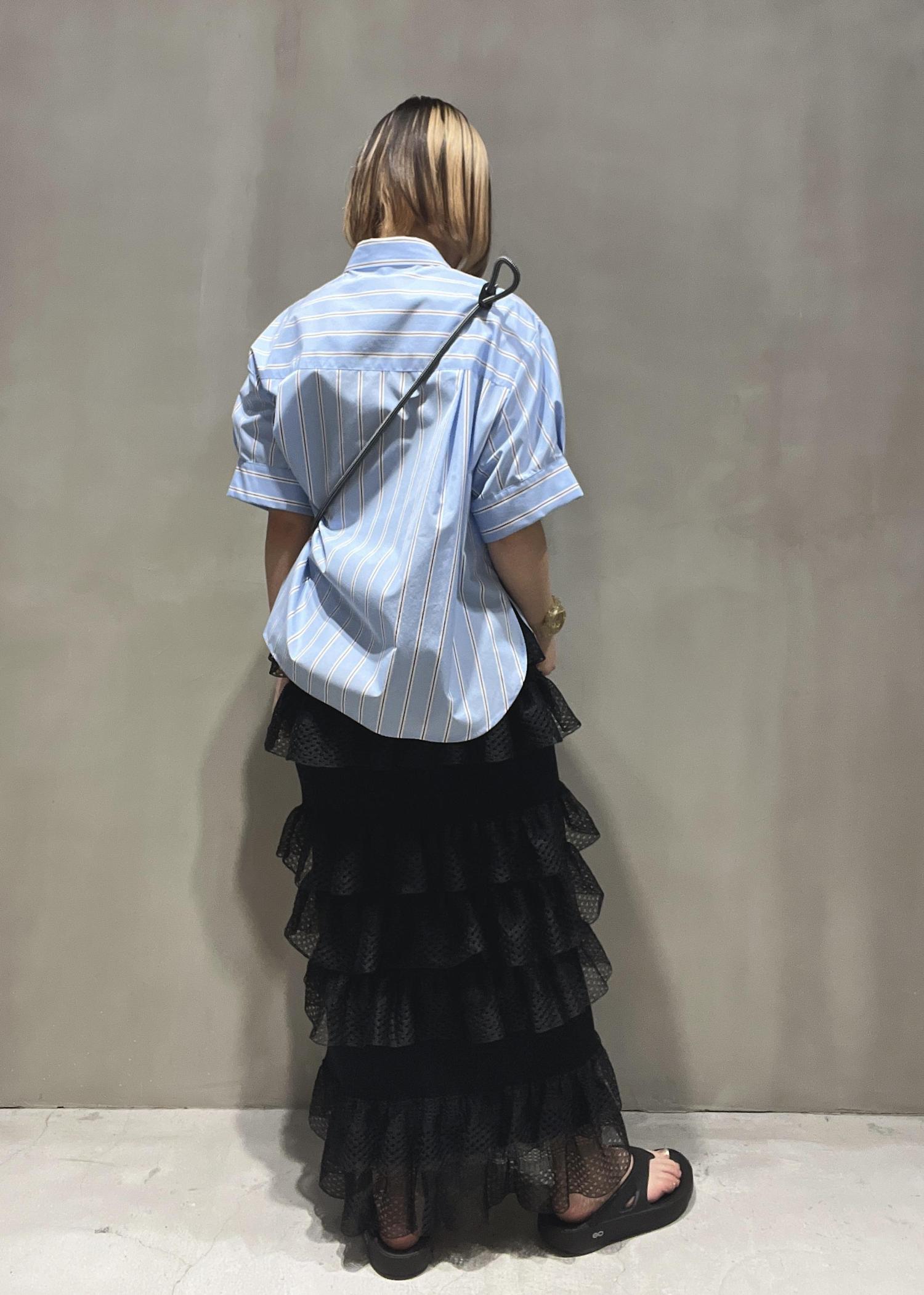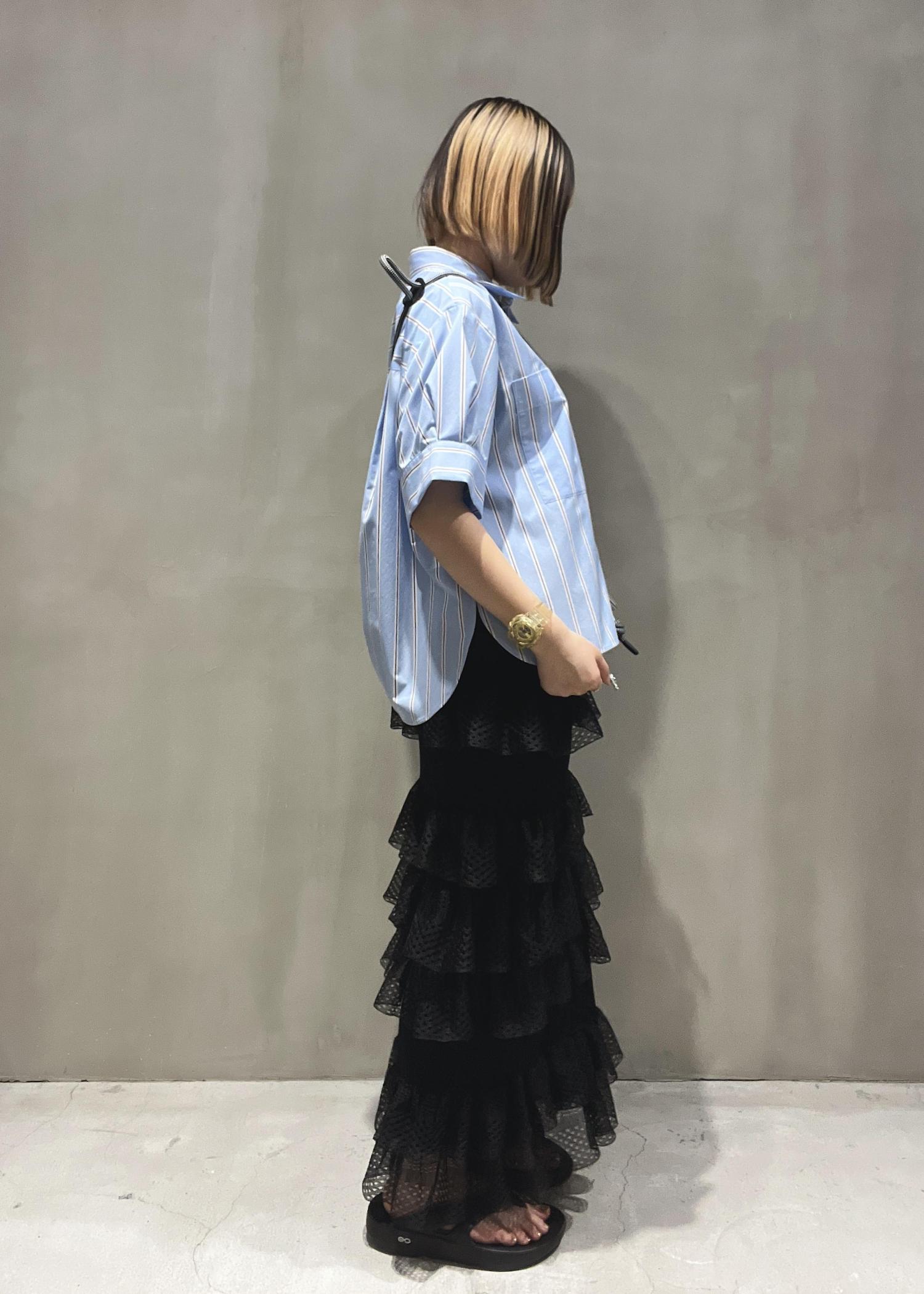 ADAM ET ROPÉ FEMMEシアーフリルスカートブラック / F¥19,800レビュー足元が透けるので、ネイルやサンダルをさりげなく見せたい方におすすめです!
