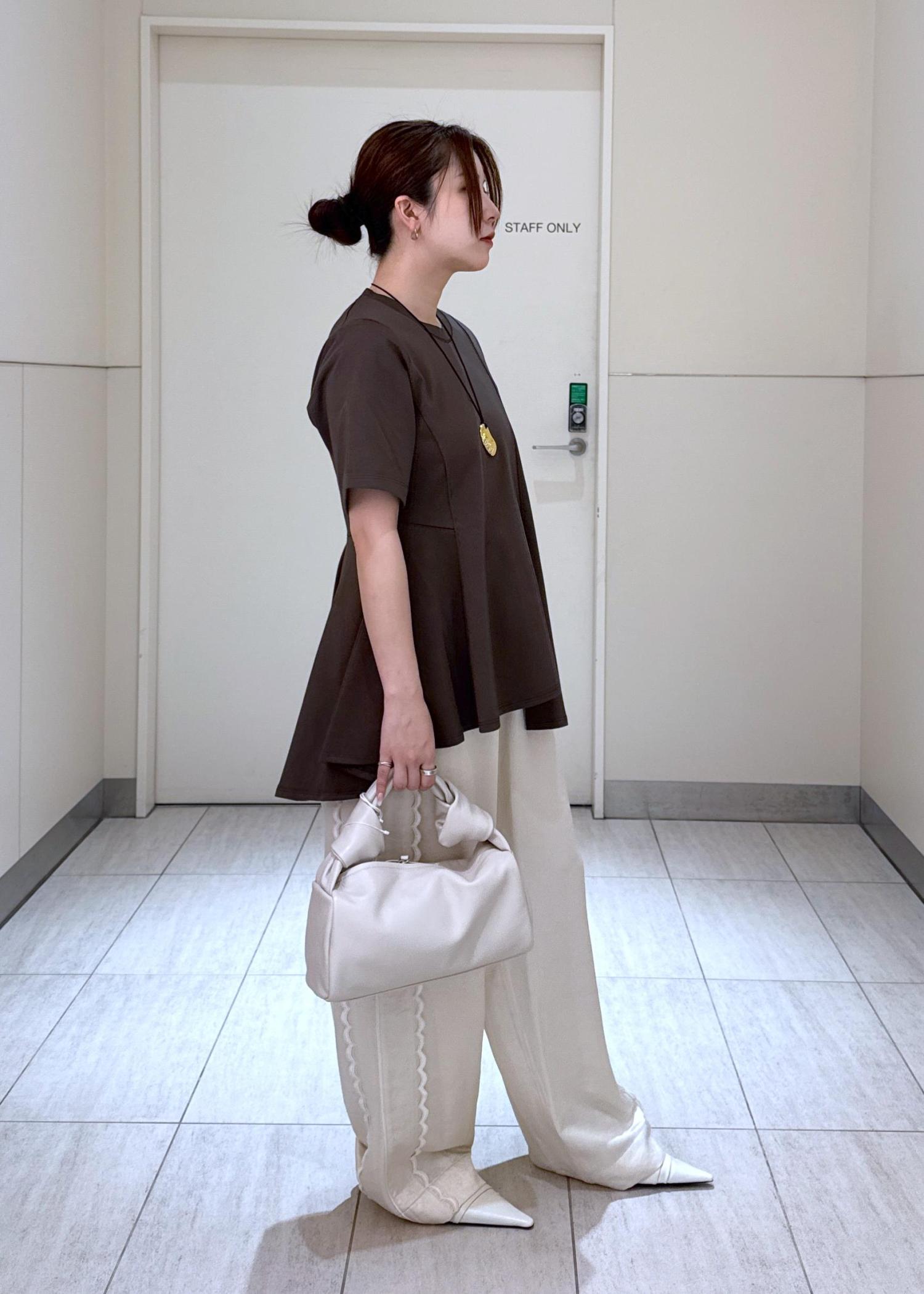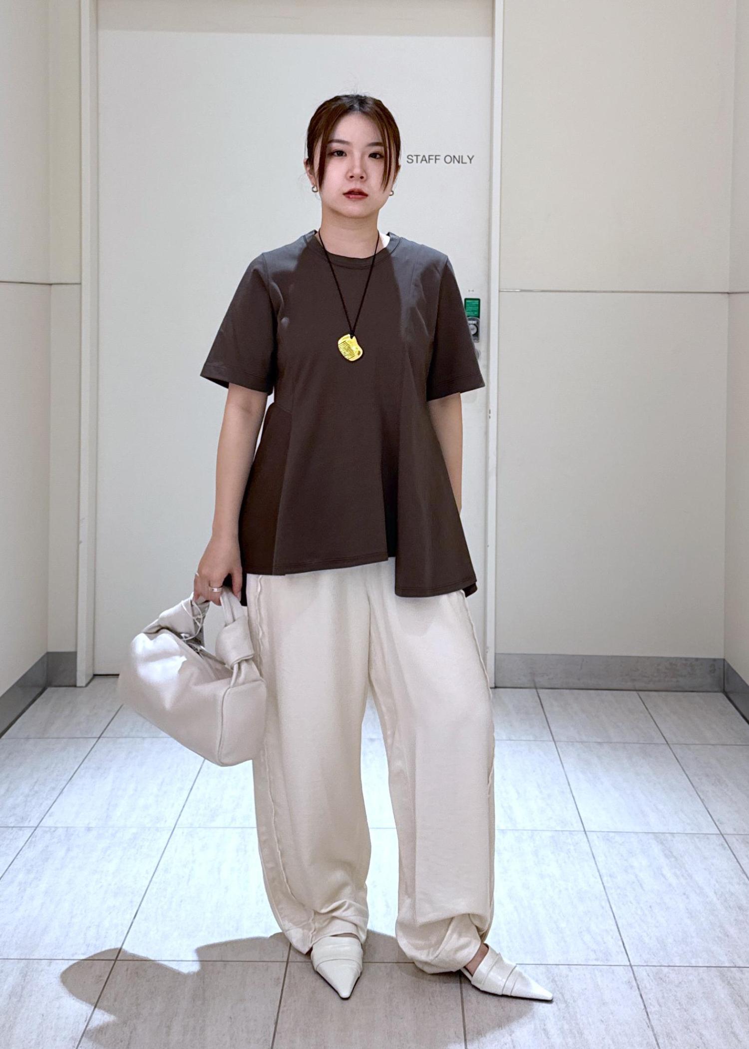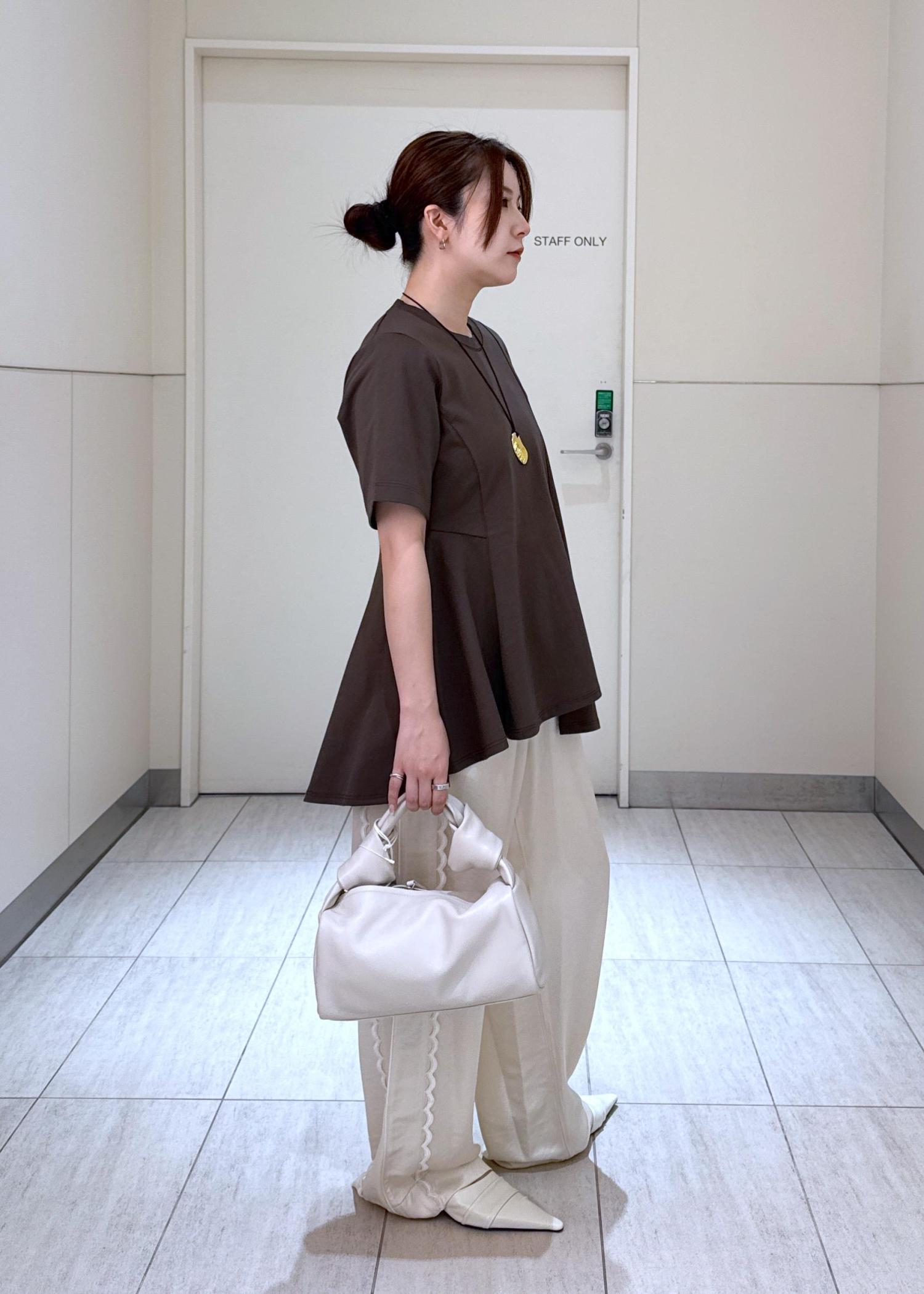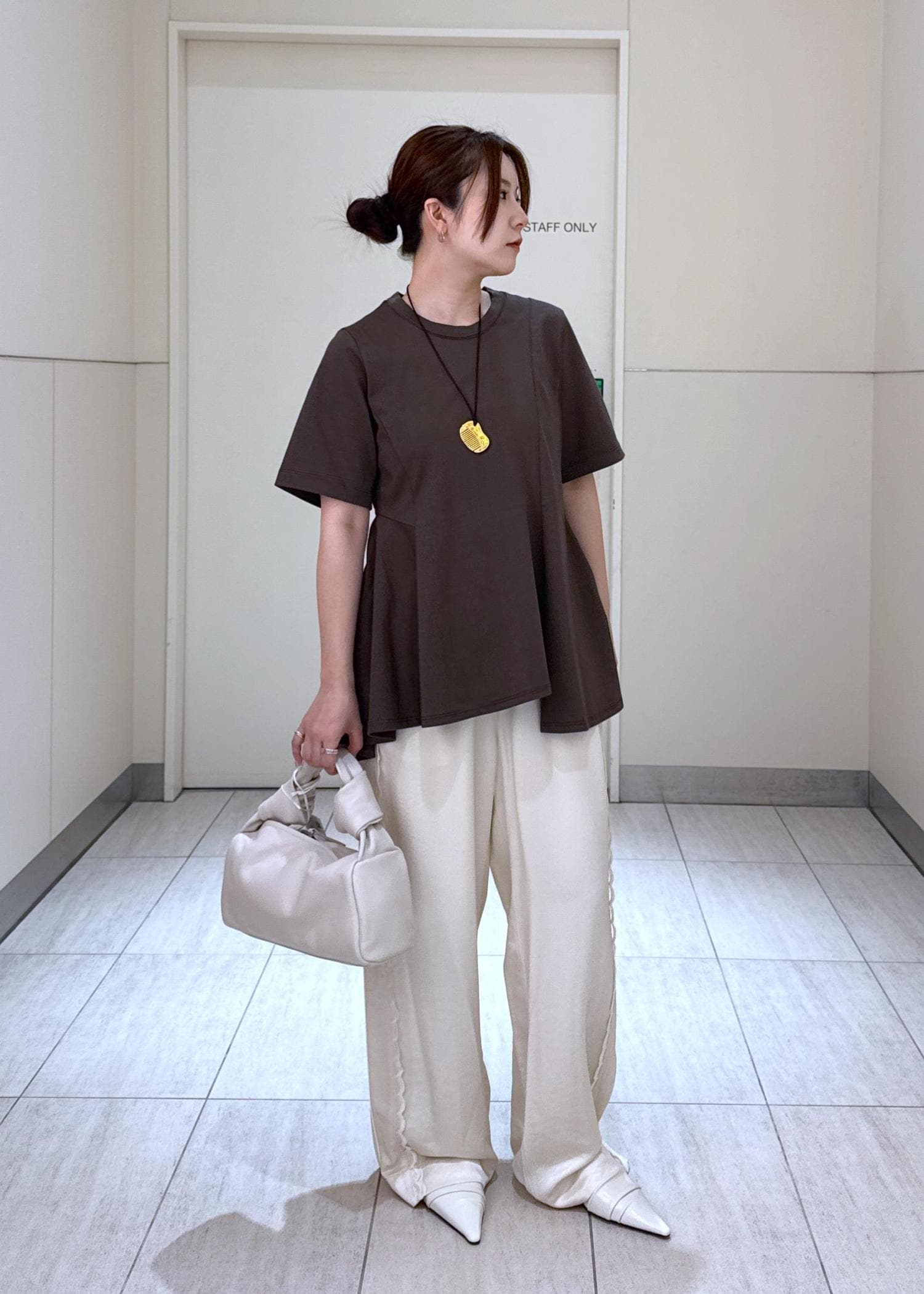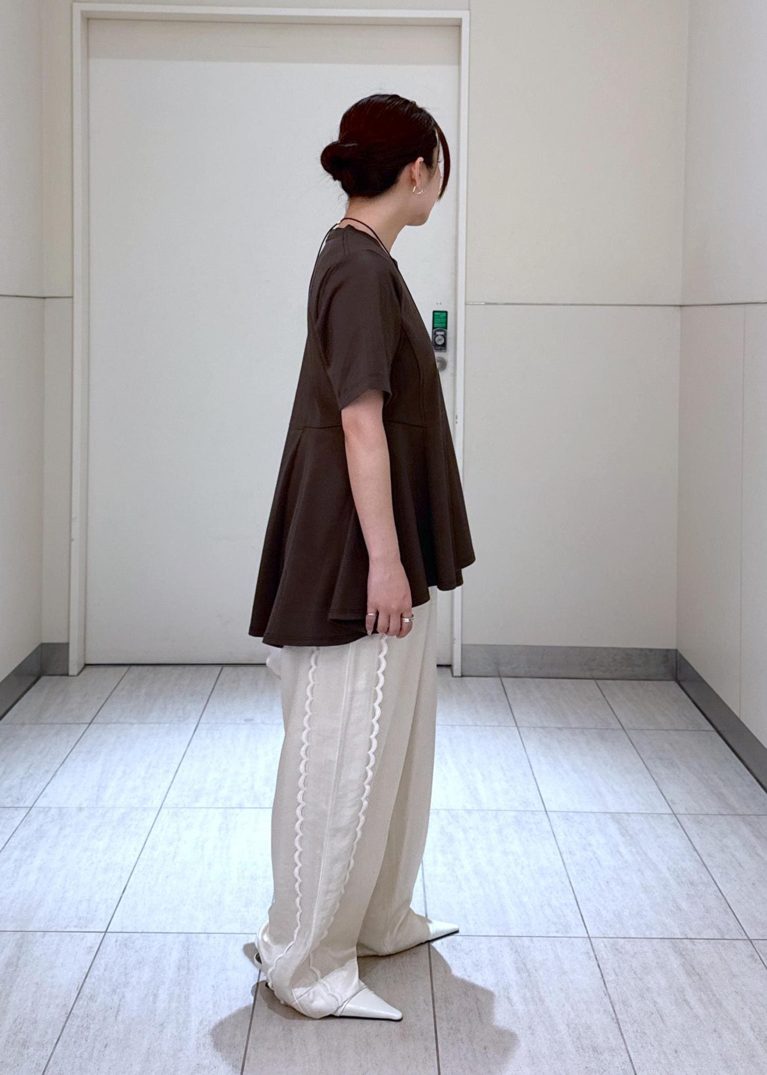 ADAM ET ROPÉ FEMME【サステナブル】アシメフレアプルオーバーダークブラウン / F¥13,200レビュー少し厚みがあるので透け感は気にならないです。ふわっとしたシルエットが動きも出せてシルエットも綺麗です。
