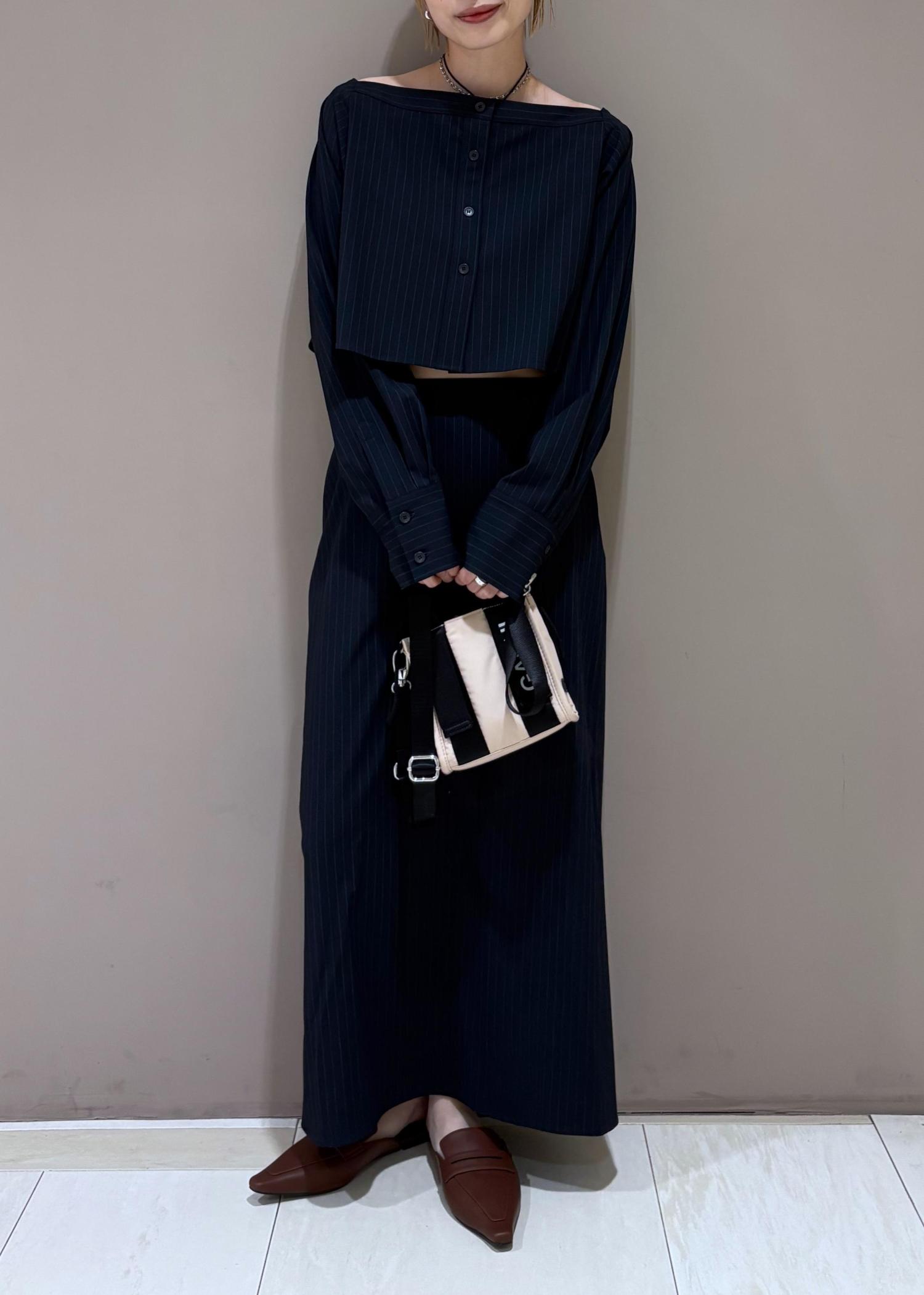 ADAM ET ROPÉ FEMME【一部WEB限定カラー】・【接触冷感】マルチWAYレイヤードシャツスカートネイビー系 / 36¥23,100レビュー162cm、36サイズ着用
