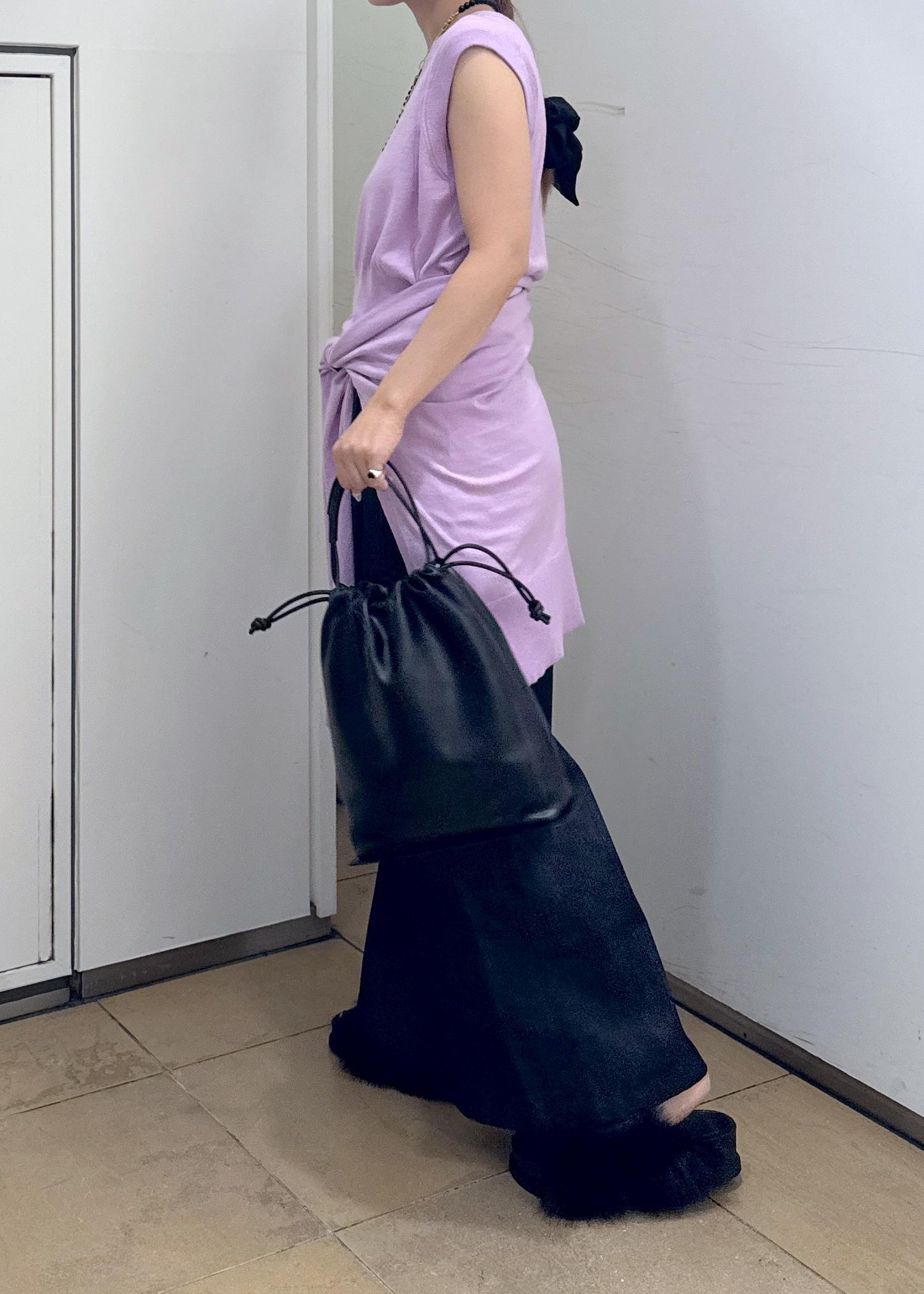 ADAM ET ROPÉ FEMME【サステナブル】アーティフシャルレザー巾着バッグブラック / F¥13,860レビュー長財布も入る縦型です!