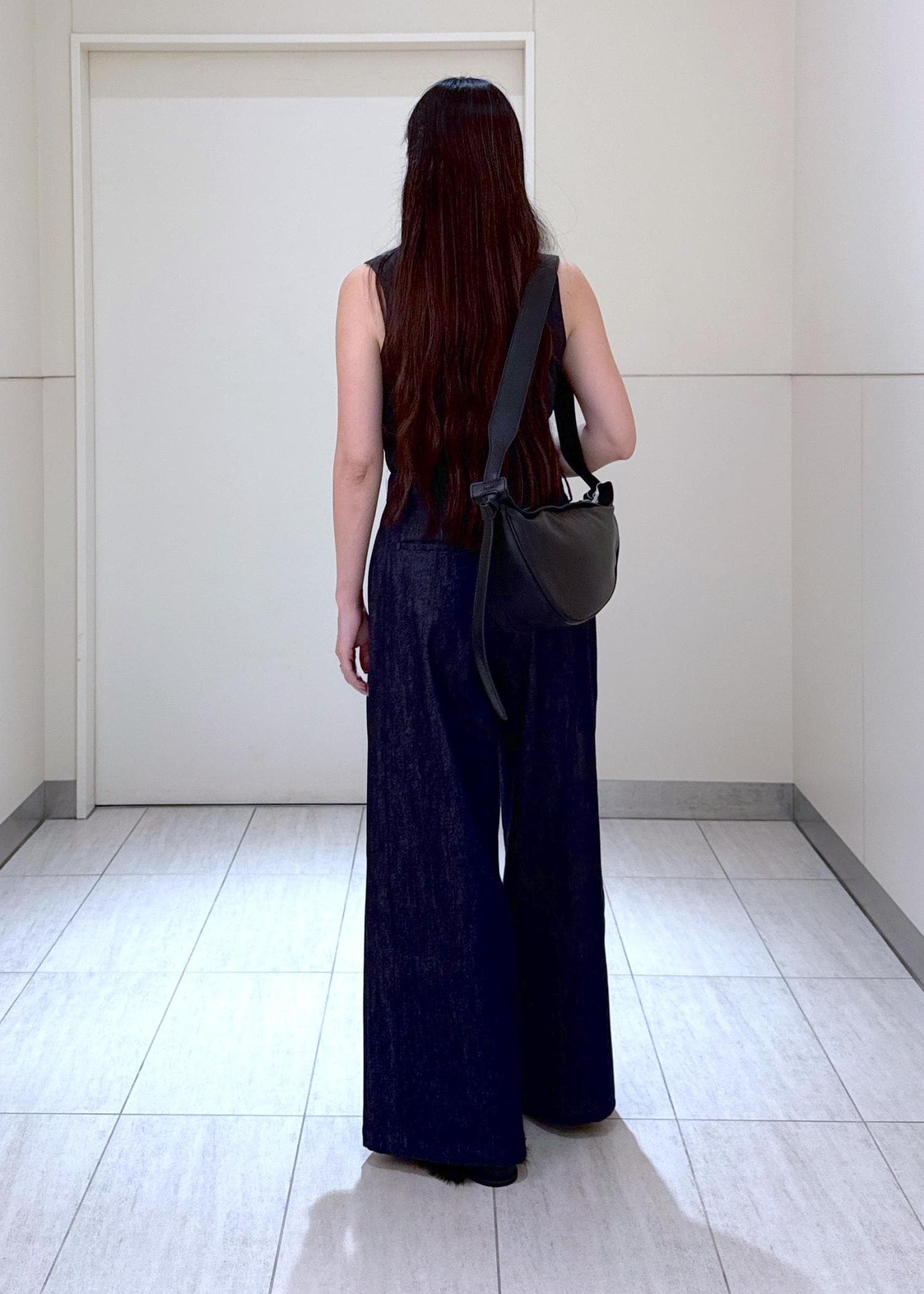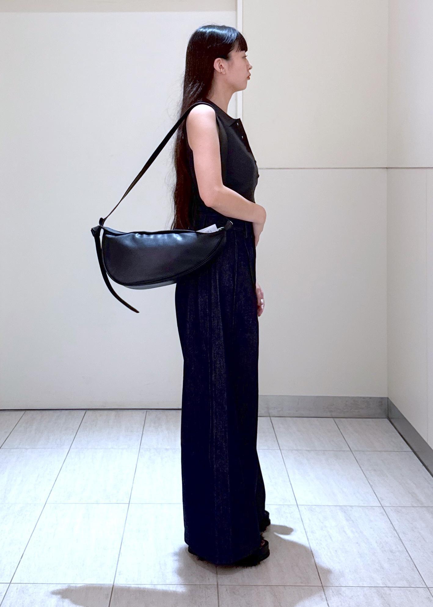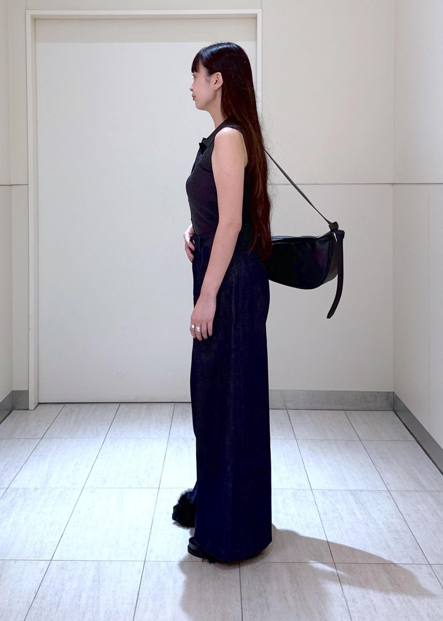 トップスがコンパクトなのでボトムは少しワイドな張りのあるデザインのアイテムを選びメリハリつけました!