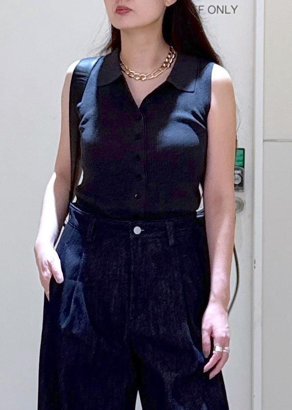 アウトレットADAM ET ROPÉ FEMMEリブノースリーブニットチャコール / F¥9,570レビュー素材が少しシャリっとしていて肌離れしやすい素材なので今からの季節でもすぐに使える秋アイテムです。