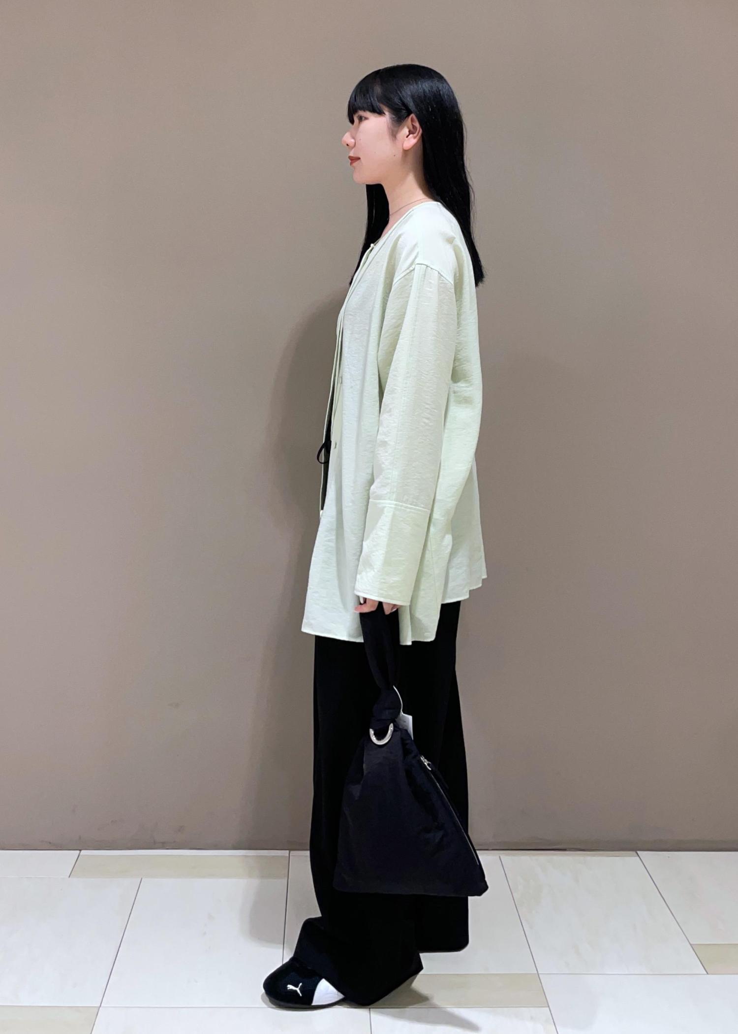 入荷前から気になっていたリネン2WAYブラウスのライトグリーンを着用しました❤︎
