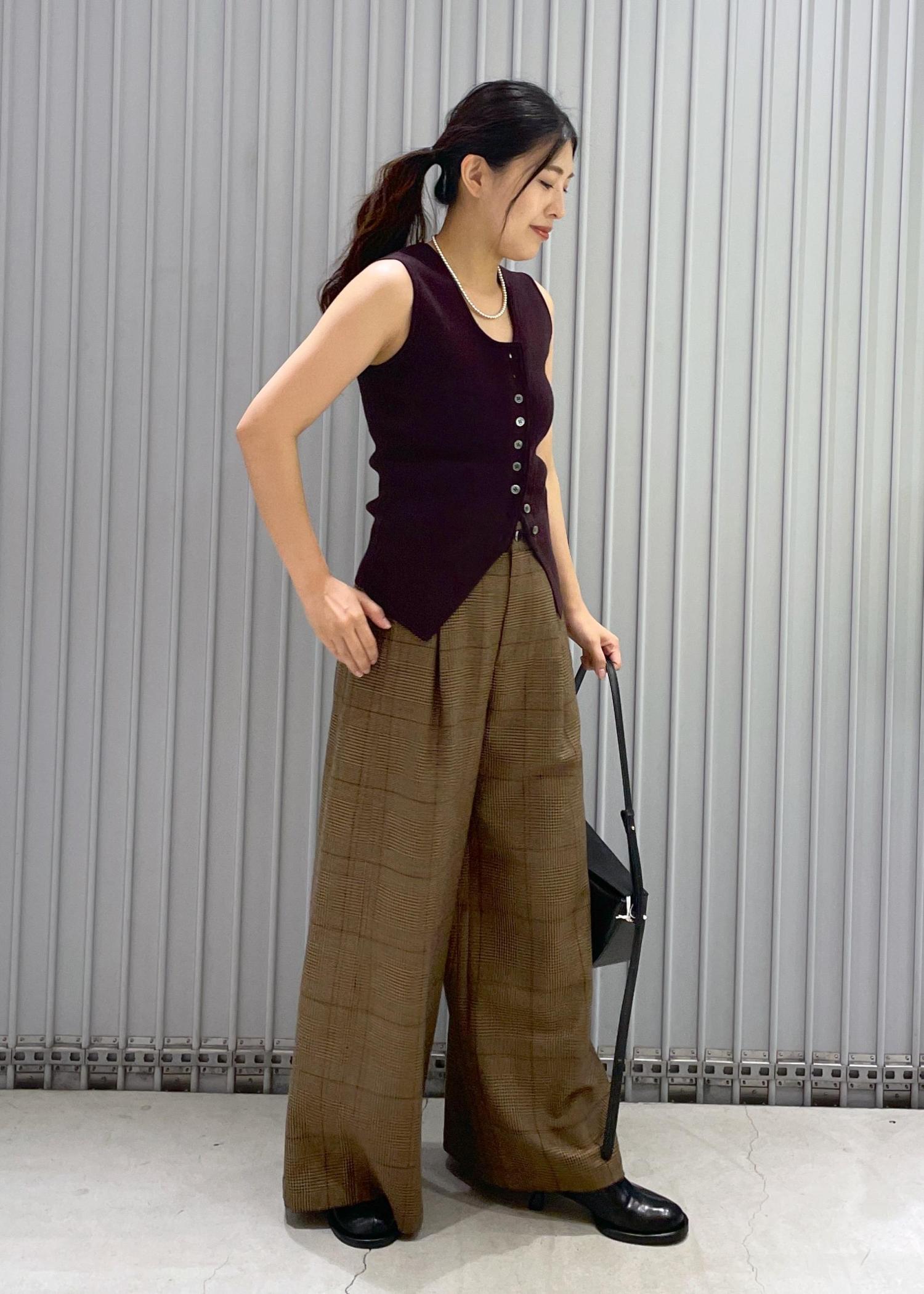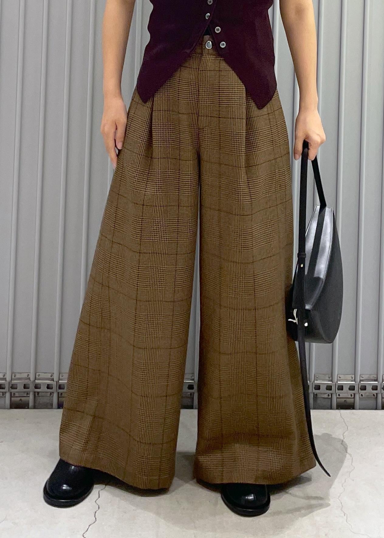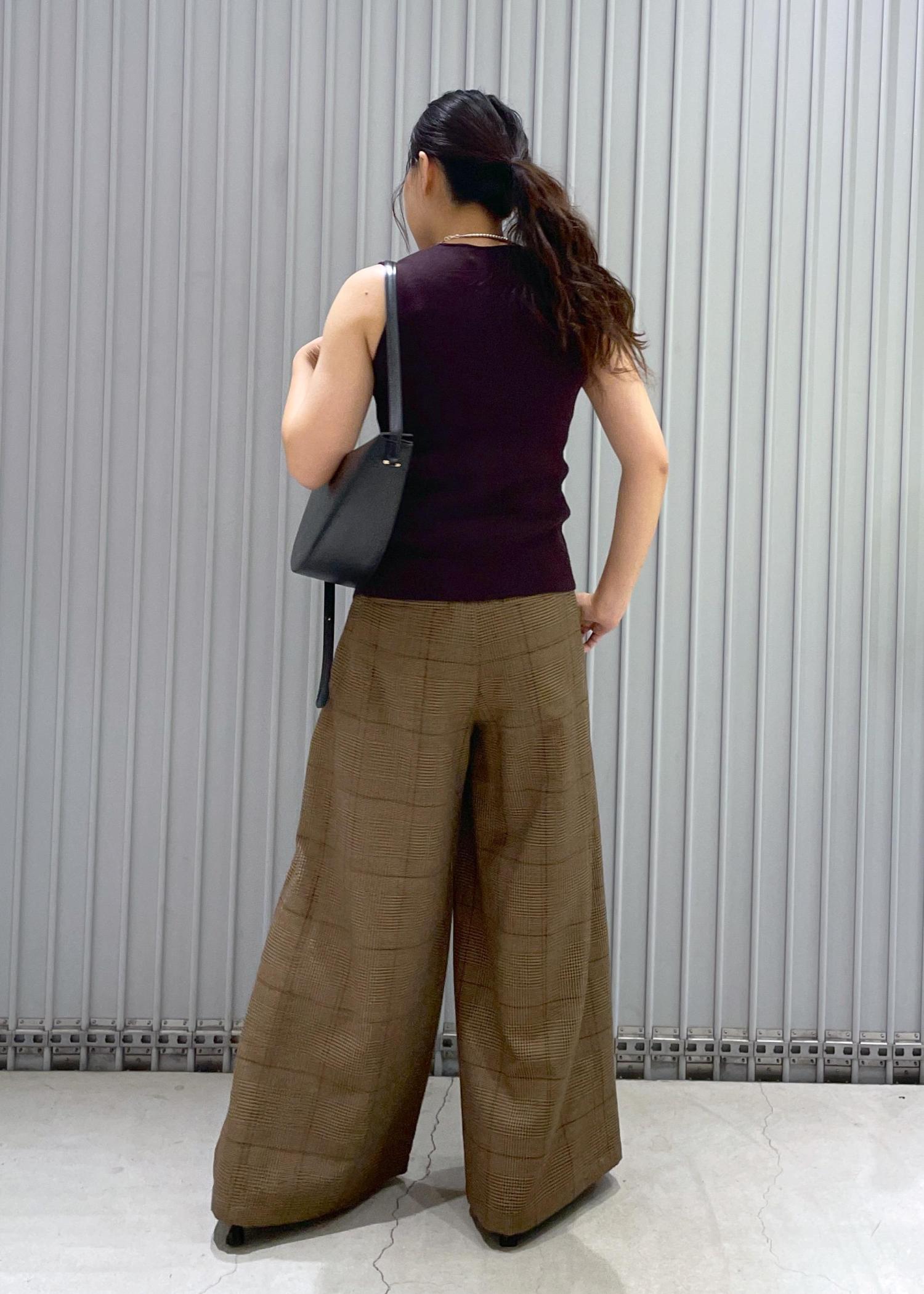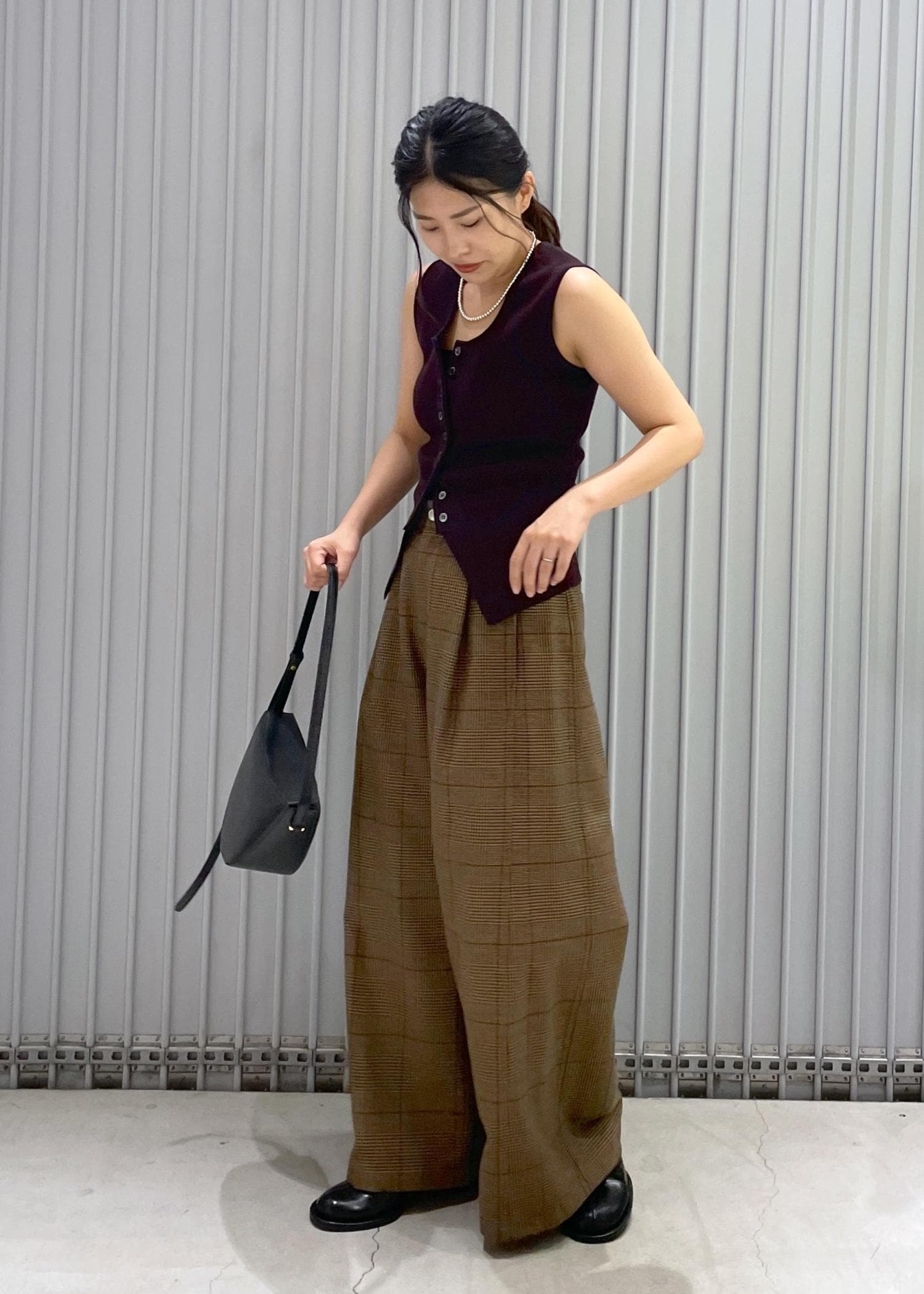 アウトレットADAM ET ROPÉ FEMMEツイストシームチェックワイドパンツブラウン系 / 36¥13,860レビュー36サイズ着用です。