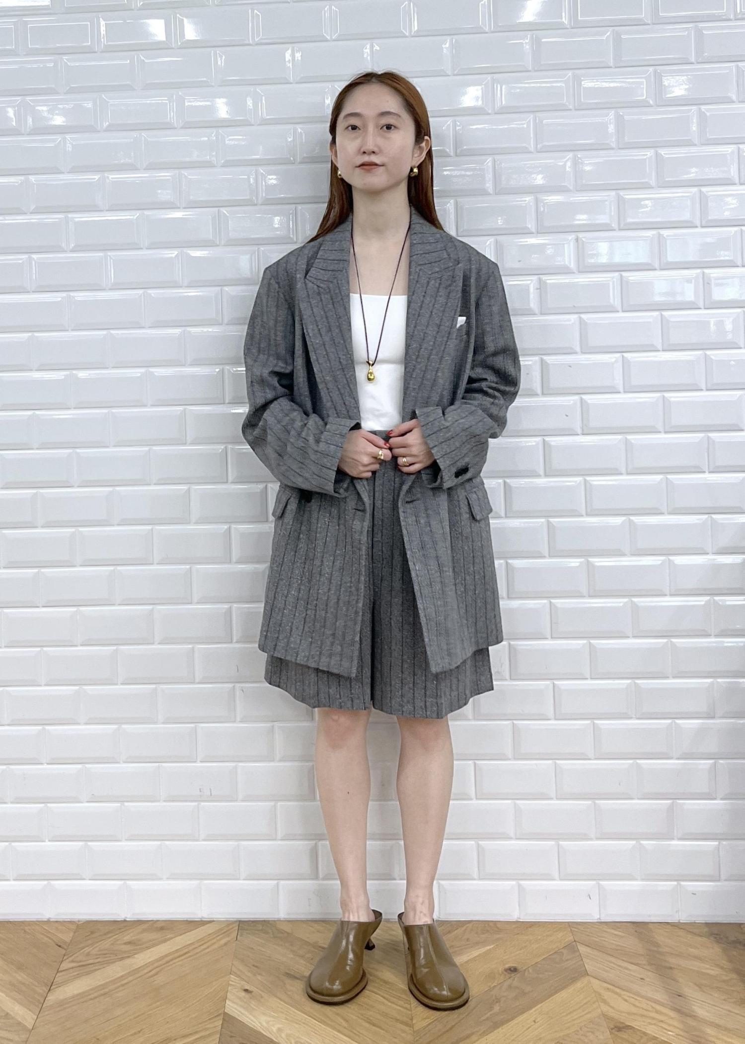 起毛感は少なくサラッとした素材感。オーバーサイズですが見た目以上に軽い着心地です。38サイズですと、メンズのものを着ているくらいゆったりでハンサムに着ることが出来ました◎