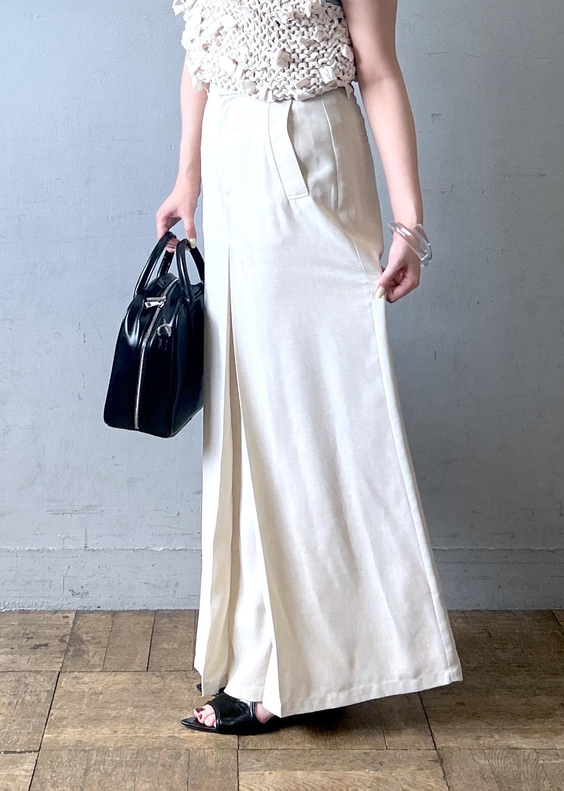 スカートは下にストンと落ちてくれるシルエットで、センター部分にプリーツのデザインが施されています。