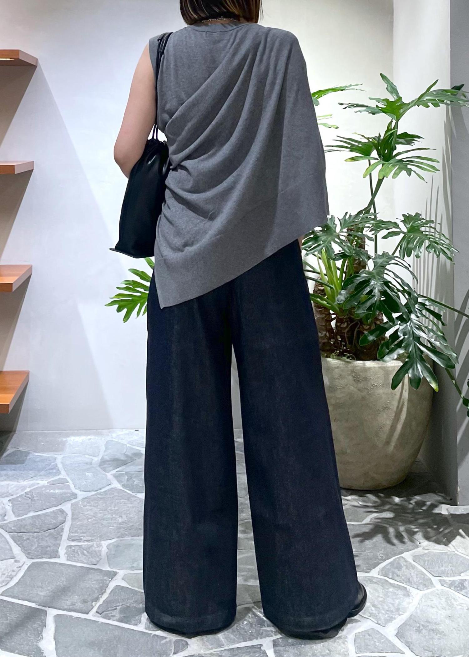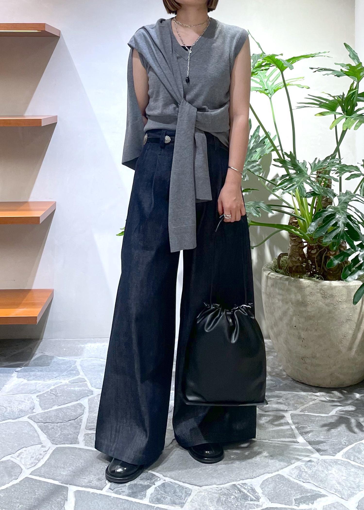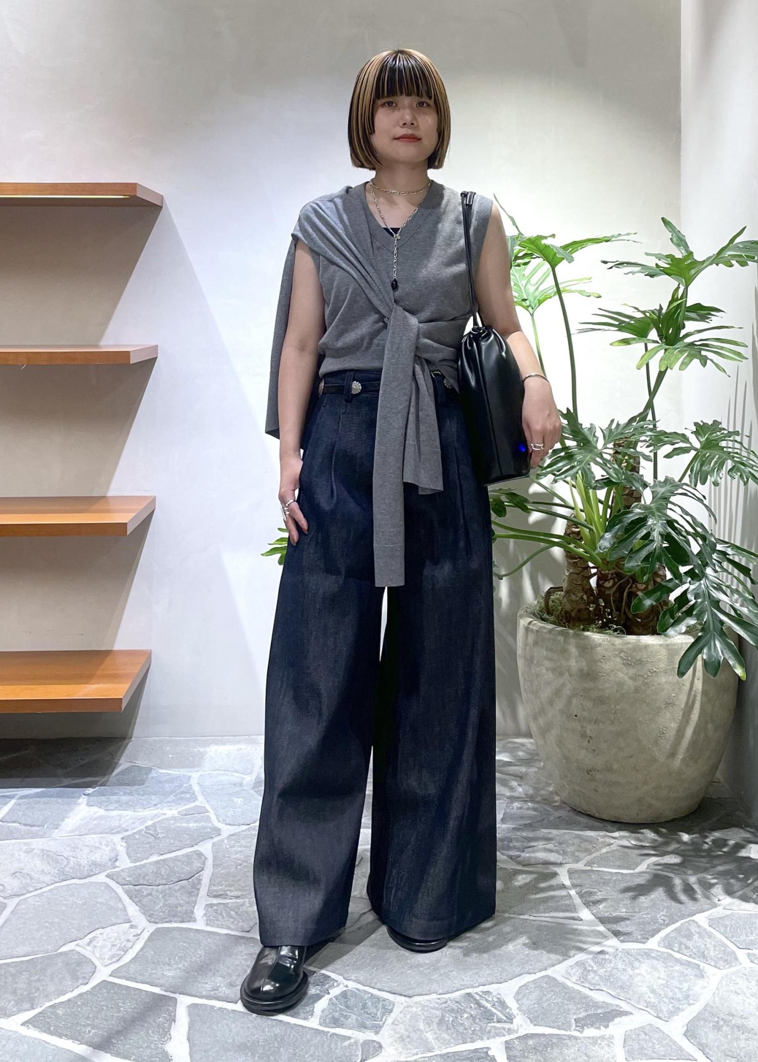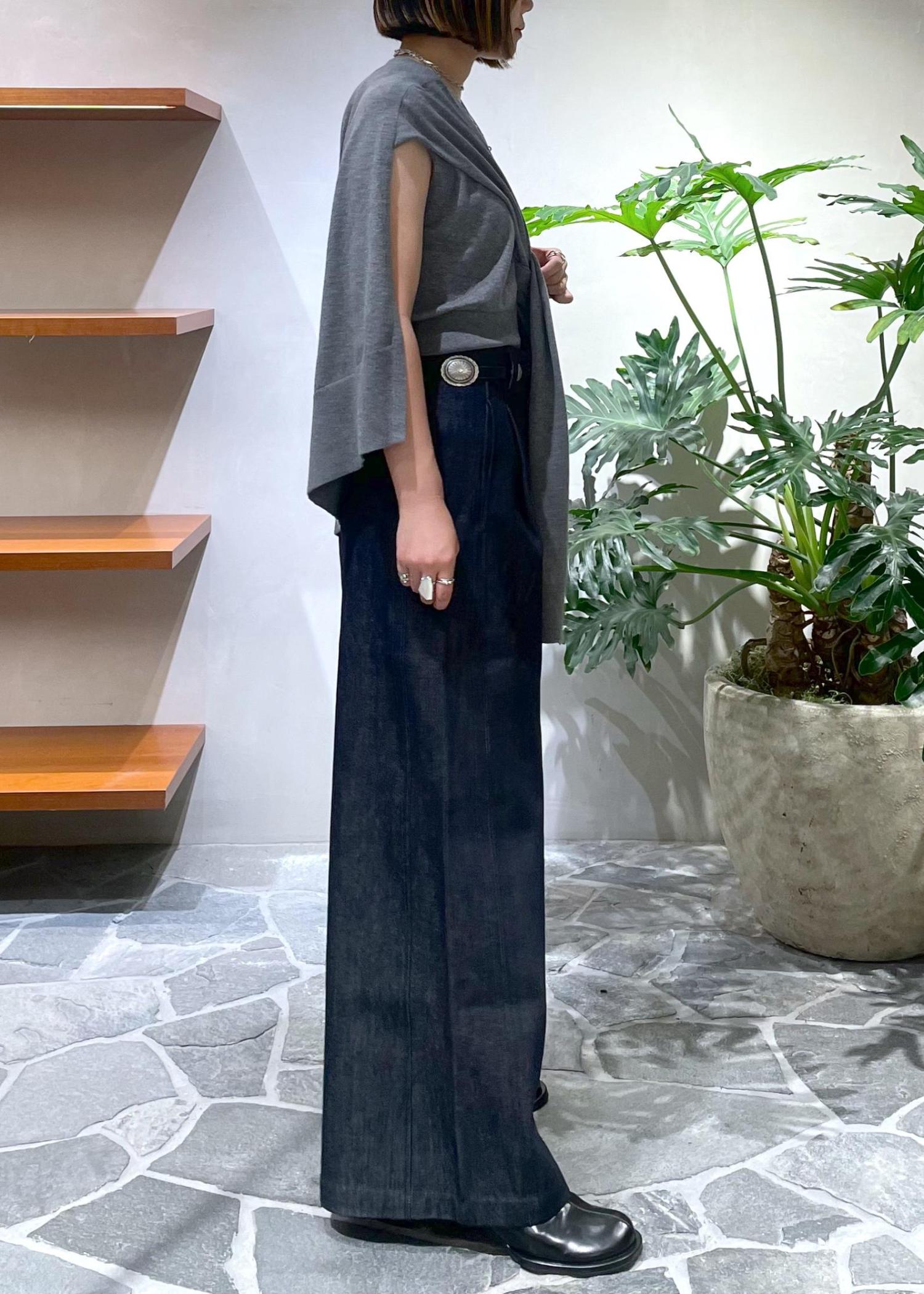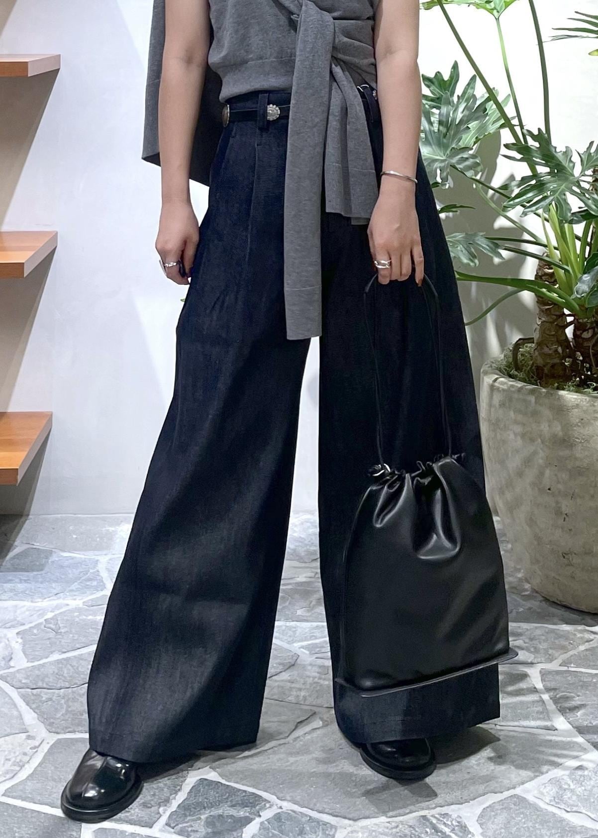 かなりワイドなシルエットなのでシルエットを活かしたコンパクトなトップスとのスタイリングがおすすめ。 -